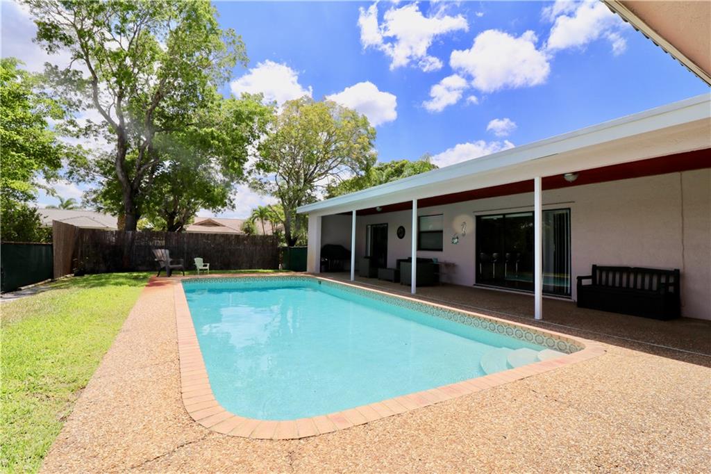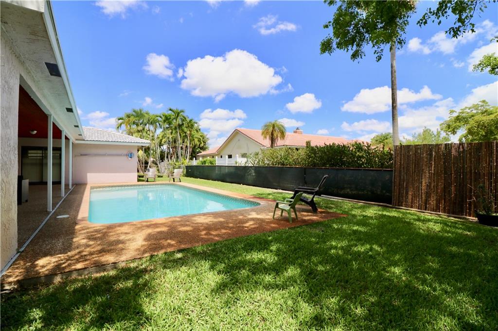 Brand NEW floors and scraped popcorn ceilings! This corner, 1-story home is tucked away in the desirous Cypress Glen neighborhood in west Coral Springs with no HOA fees. A long hallway lined with closets for ample storage lines the hallway of this 4 bedrooms (stacked) and updated 2 bathrooms. A covered outdoor patio lined with tongue & groove wood planks, large, long pool, fenced in yard, plus an open floor plan inside making this a great entertainment home. Roof replaced in 2016. Extra Folding space in the indoor laundry room. Dark wood floors in all bedrooms. Amazing schools, easy access to Sawgrass Expressway, malls & restaurants.