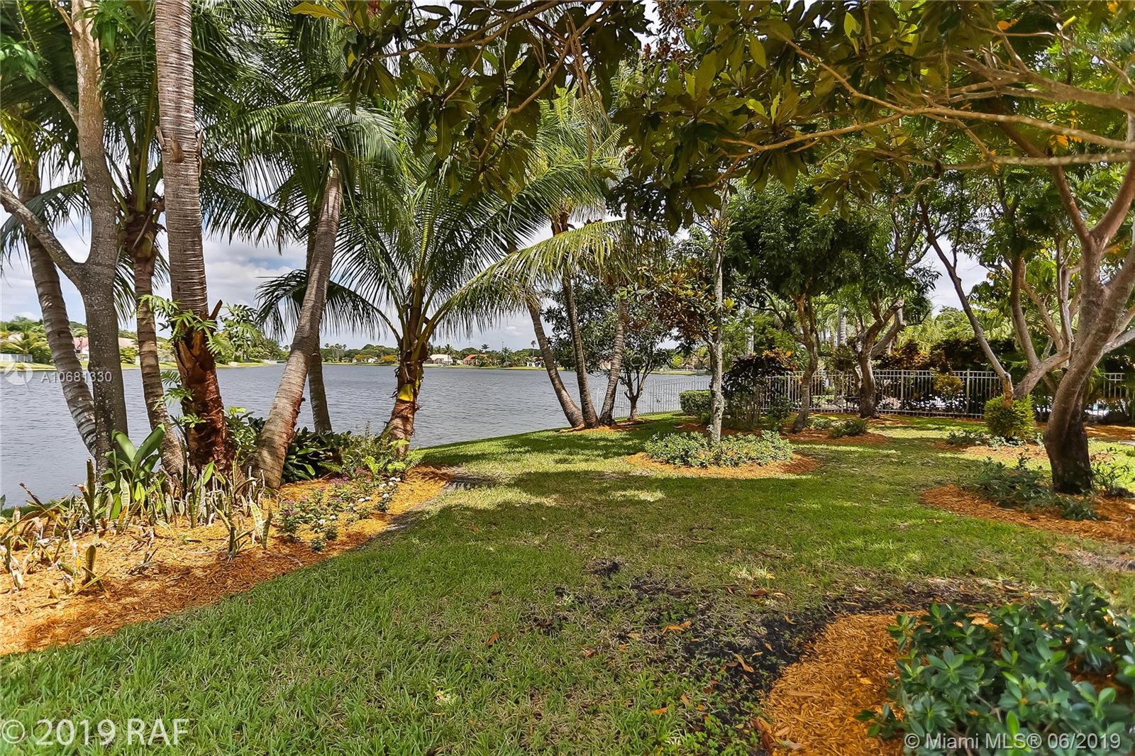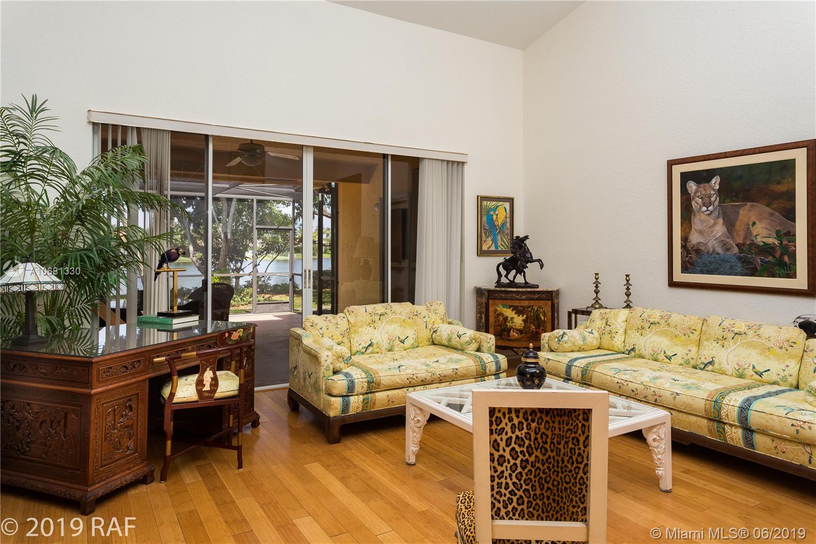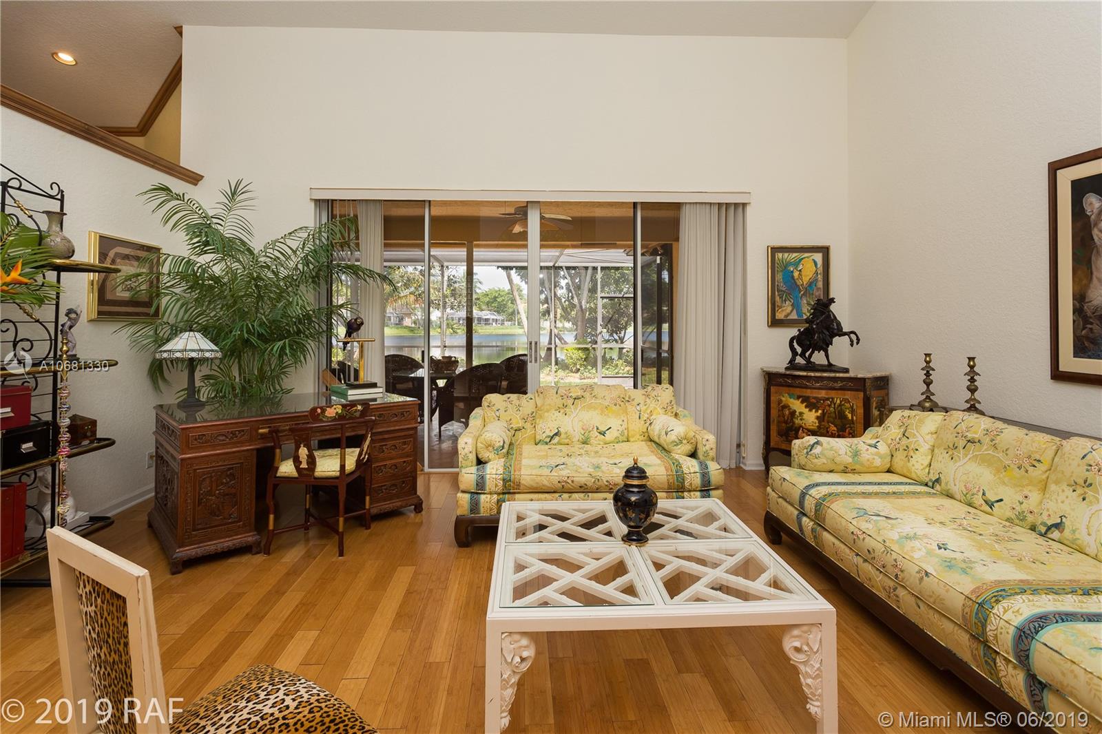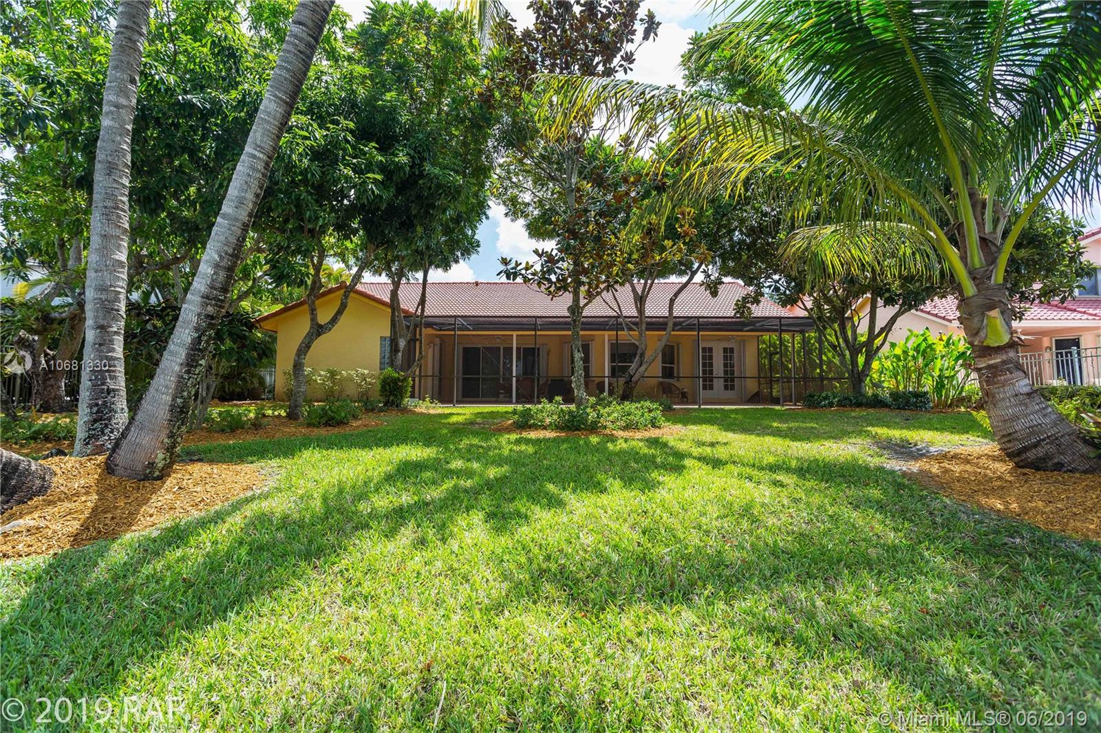 Beautiful 4 bedroom Monaco model set on a fabulous 12000+ SQ FT lakefront lot with 80' on the lake; and located in the prestigious Estates section of guard gated Embassy Lakes. You'll love the completely remodeled island kitchen with custom built wood cabinets, granite counter tops and back splash; and all stainless steel appliances. You'll find top of the line solid bamboo flooring in all the common areas and carpet in the bedrooms. Soaring vaulted ceilings add to the spaciousness you'll feel throughout the house. Step through the French doors from the family room onto the large, covered and screened patio shaded by lush tropical landscaping and fruit trees. The S-tile roof was replaced in 2007. **LISTING PHOTOS ARE COPYRIGHT PROTECTED. UNAUTHORIZED USE IS PROHIBITED**