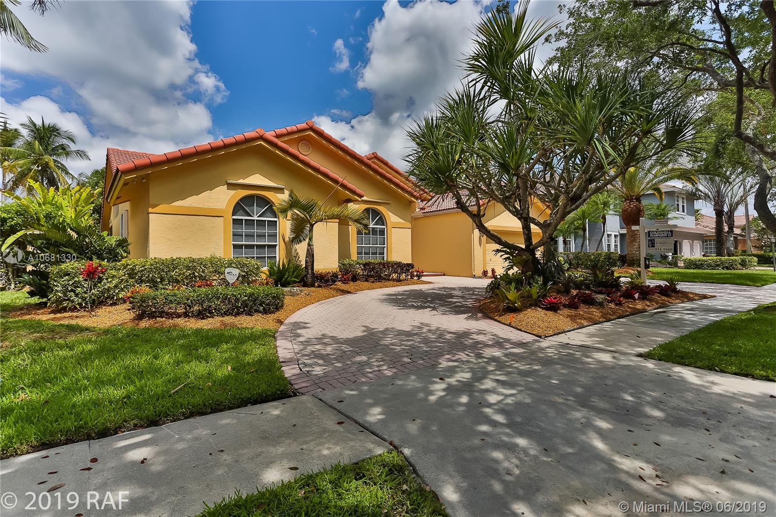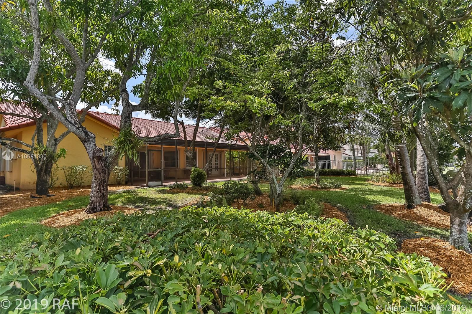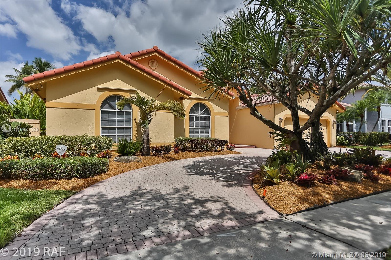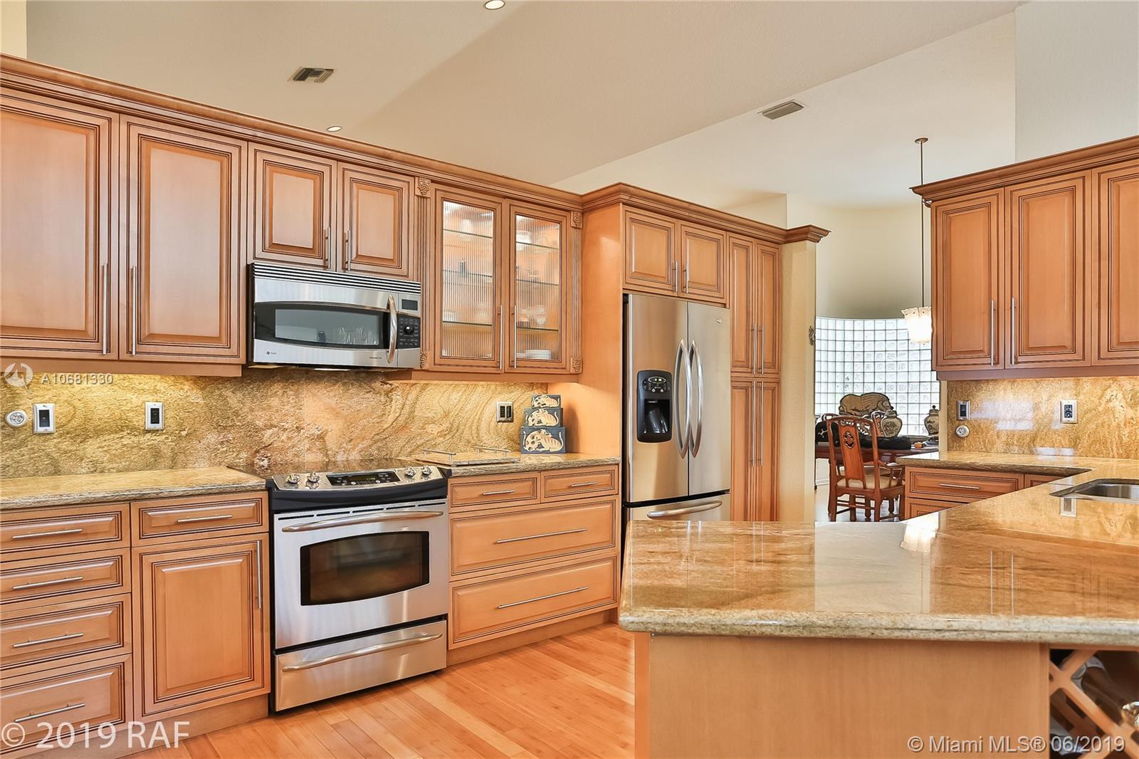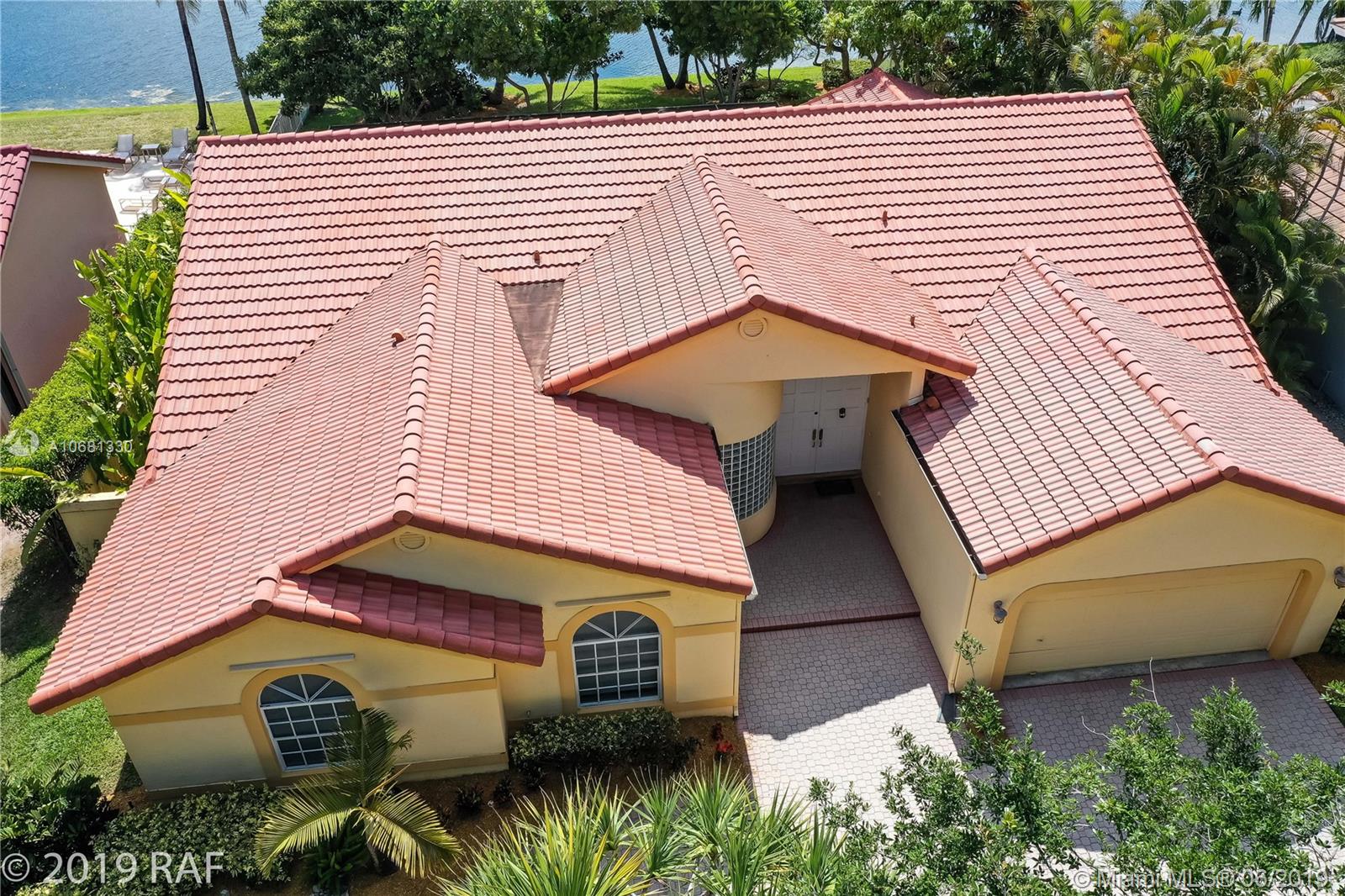 Beautiful 4 bedroom Monaco model set on a fabulous 12000+ SQ FT lakefront lot with 80' on the lake; and located in the prestigious Estates section of guard gated Embassy Lakes. You'll love the completely remodeled island kitchen with custom built wood cabinets, granite counter tops and back splash; and all stainless steel appliances. You'll find top of the line solid bamboo flooring in all the common areas and carpet in the bedrooms. Soaring vaulted ceilings add to the spaciousness you'll feel throughout the house. Step through the French doors from the family room onto the large, covered and screened patio shaded by lush tropical landscaping and fruit trees. The S-tile roof was replaced in 2007. **LISTING PHOTOS ARE COPYRIGHT PROTECTED. UNAUTHORIZED USE IS PROHIBITED**