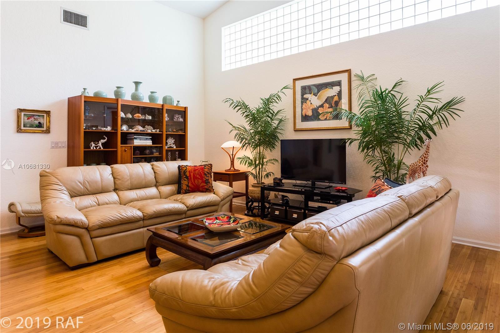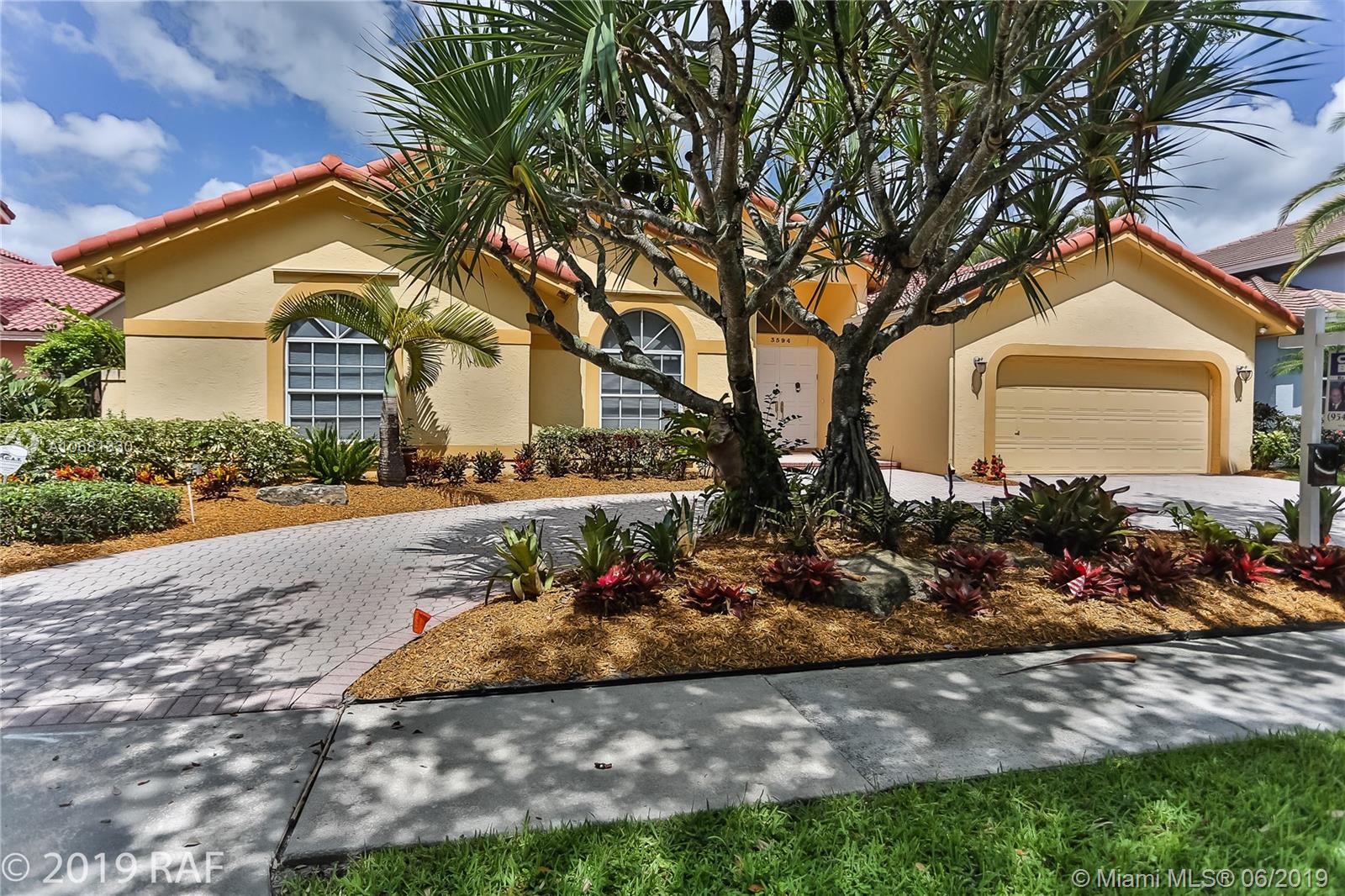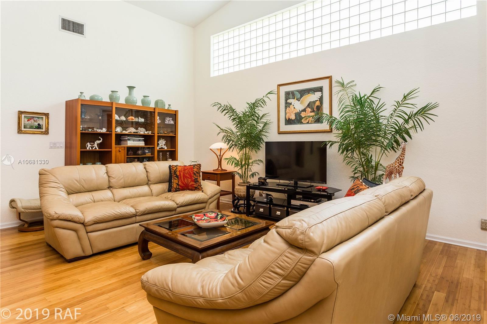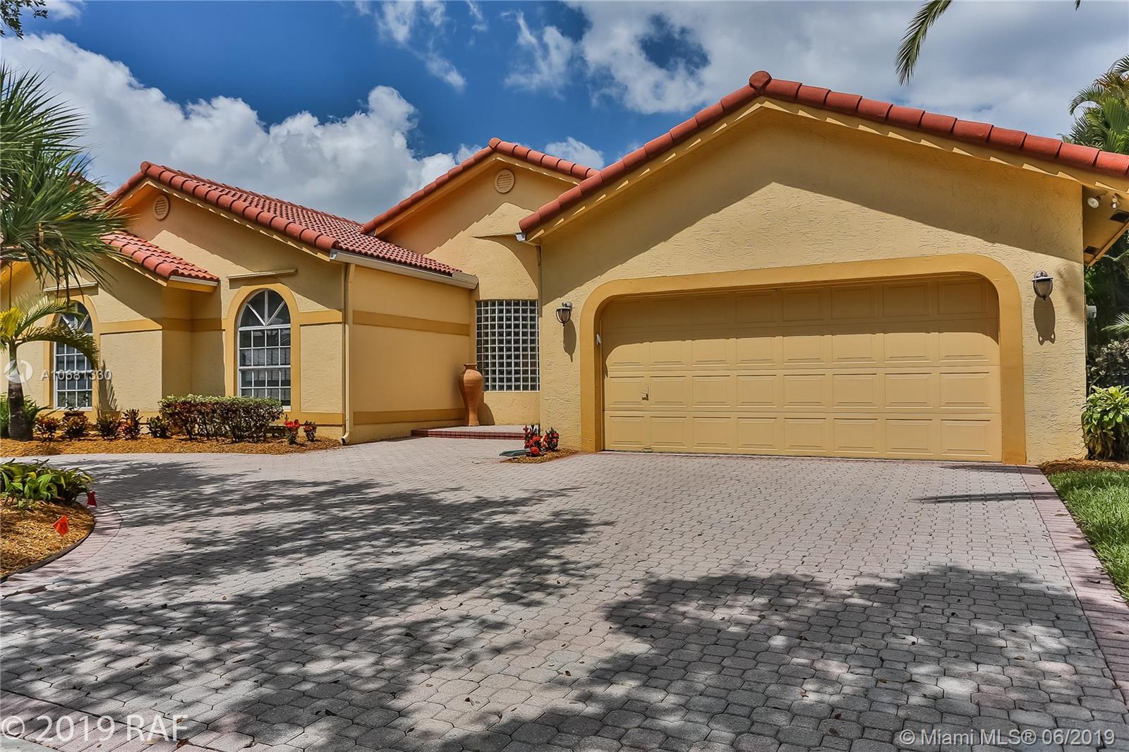 Beautiful 4 bedroom Monaco model set on a fabulous 12000+ SQ FT lakefront lot with 80' on the lake; and located in the prestigious Estates section of guard gated Embassy Lakes. You'll love the completely remodeled island kitchen with custom built wood cabinets, granite counter tops and back splash; and all stainless steel appliances. You'll find top of the line solid bamboo flooring in all the common areas and carpet in the bedrooms. Soaring vaulted ceilings add to the spaciousness you'll feel throughout the house. Step through the French doors from the family room onto the large, covered and screened patio shaded by lush tropical landscaping and fruit trees. The S-tile roof was replaced in 2007. **LISTING PHOTOS ARE COPYRIGHT PROTECTED. UNAUTHORIZED USE IS PROHIBITED**