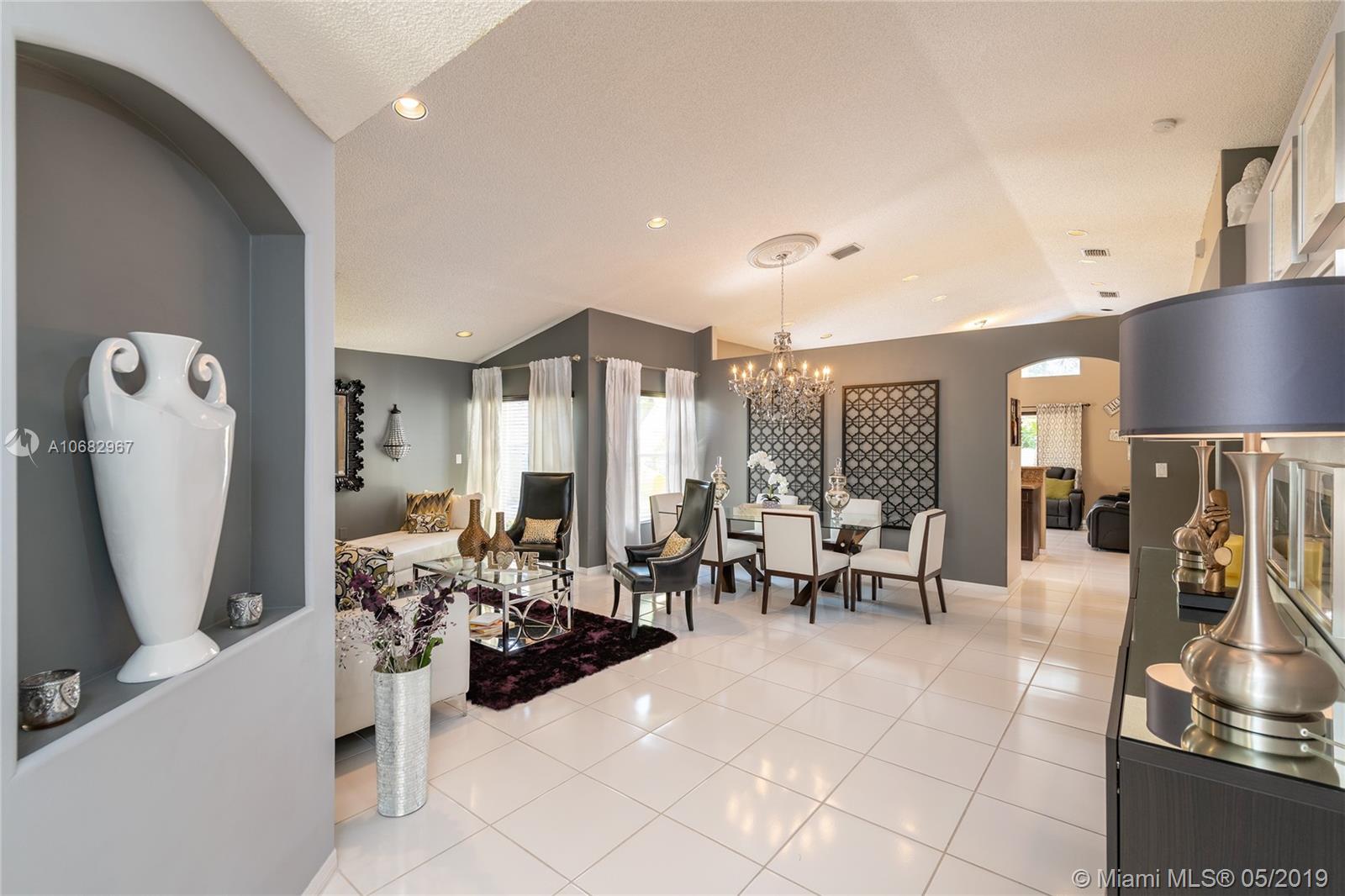 Keystone Lakes Charmer. Gorgeous immaculate home features a great split bedroom floor plan. It has a lovely upgraded kitchen the is open to the family room. Family room leads to a serene and cozy pavered backyard with solid roof covered awning. Room for kids playground or entertaining. Master bathroom has been tastefully upgraded and closet has custom cabinetry. Sought after neighborhood with great schools, Close to highway 27 and Sheridan Street.