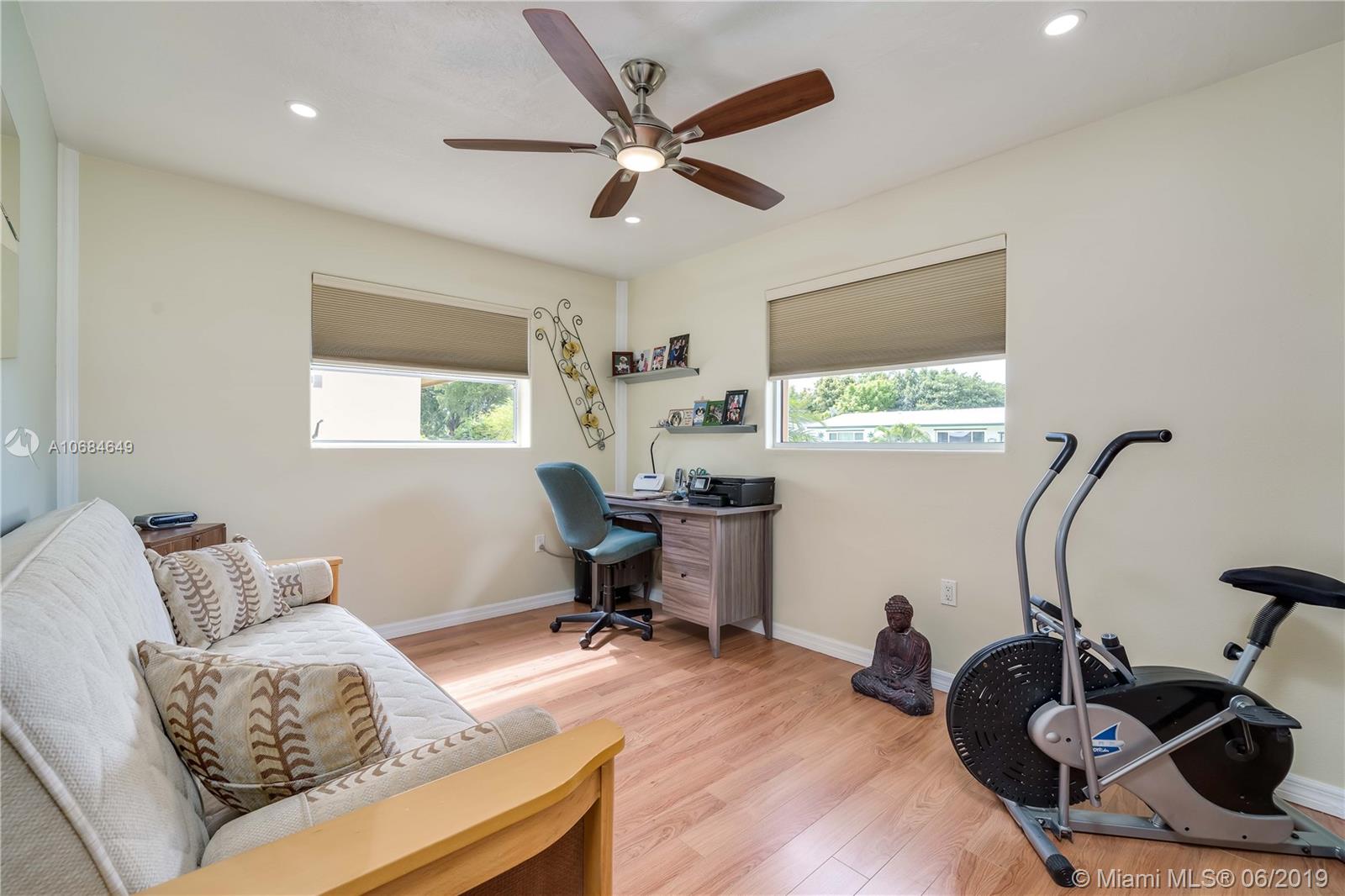 You will love this beautifully upgraded 2-bedroom, 1-bath, 1-car garage home in the community of Sunrise Golf Village. Enjoy the great South Florida weather in an outdoor oasis with inground, saltwater pool, putting green, and plenty of space for entertaining. Primary features include: remodeled kitchen w/quartz countertops, SS appliances, gas stove, crown molding in bedrooms, built-in closets, updated bathroom with deep-set jetted tub, enclosed Florida room, new metal roof (2017), impact glass windows and shutters, newer AC (2014), upgraded electrical panel, automatic garage door, ADT alarm with video monitored system. Don’t hesitate – call now to be the first in line for this incredible home.