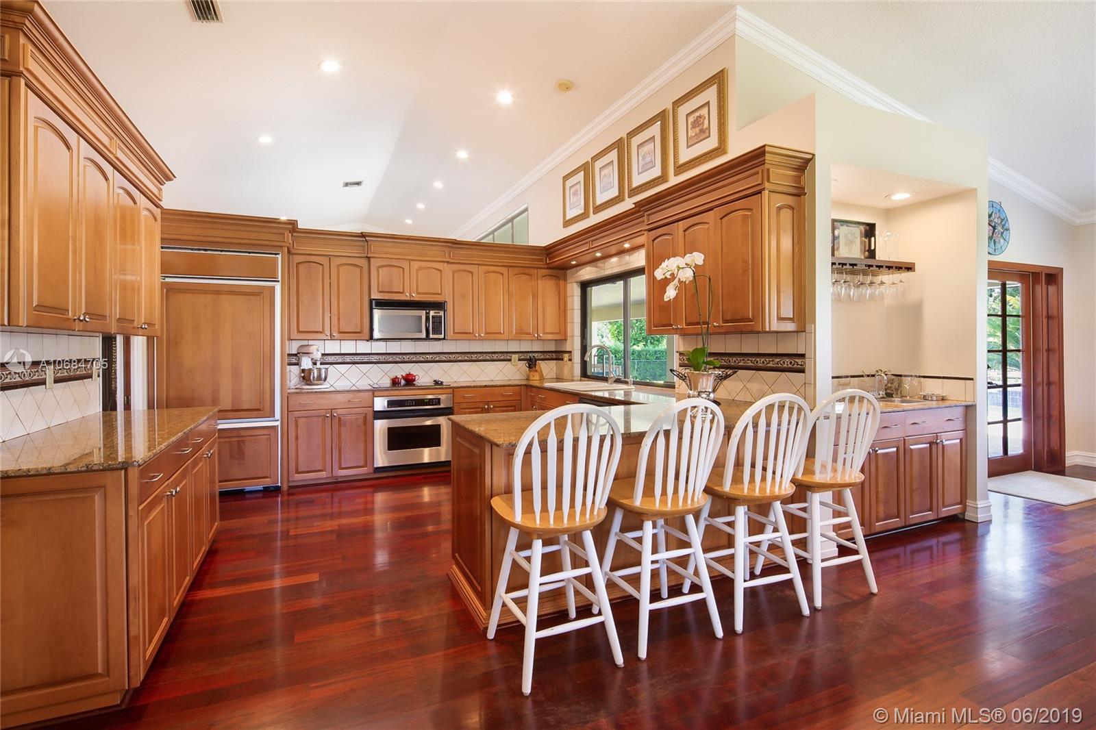 Elegance at its finest! This immaculate 7 bedroom/4 bath estate has it all. Pride of ownership is evident from the solid Mahogany wood double entry doors to the Brazilian cherry wood floors throughout. The home features an updated gourmet kitchen with cherry wood cabinets, granite counters and stainless steel appliances. All four baths have been tastefully updated with gorgeous travertine marble in the expansive master bath. Family room has a wet bar and a true wood burning fireplace. Wood French doors lead to a large brick paver covered patio and pool w jacuzzi, perfect for entertaining. This home sits on an acre homesite completely fenced and professionally landscaped on one of the best streets in Plantation Acres. Triple zone a/c and two hot water heaters. Close to Sawgrass Mall.