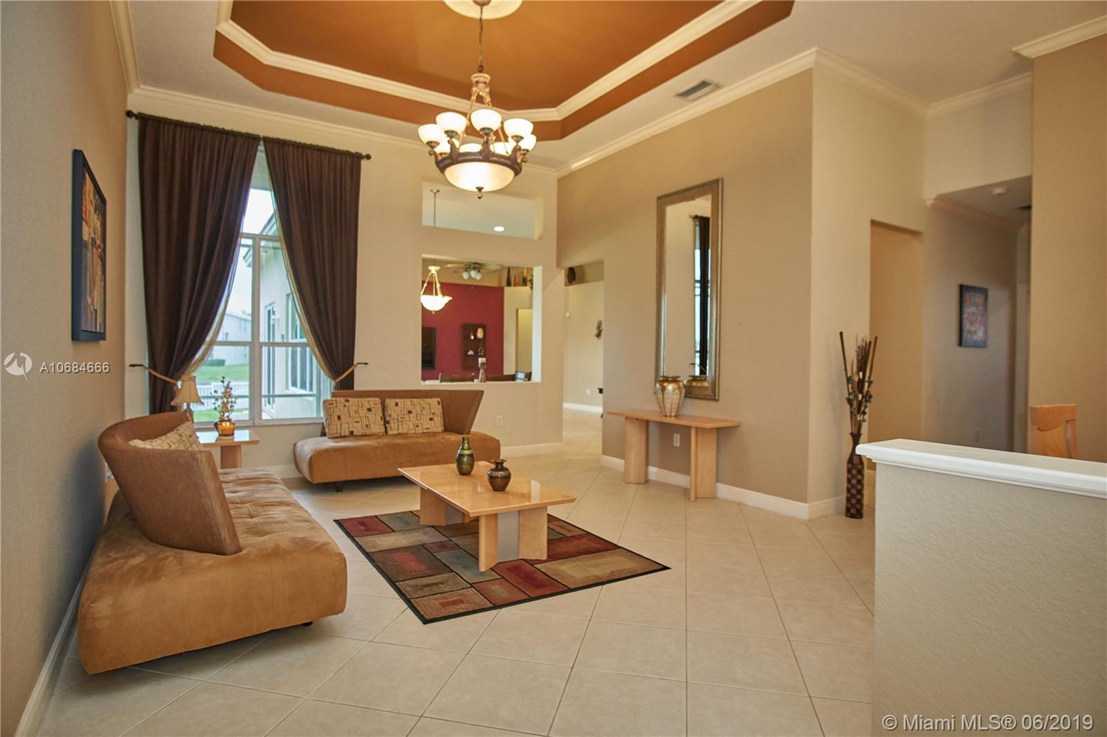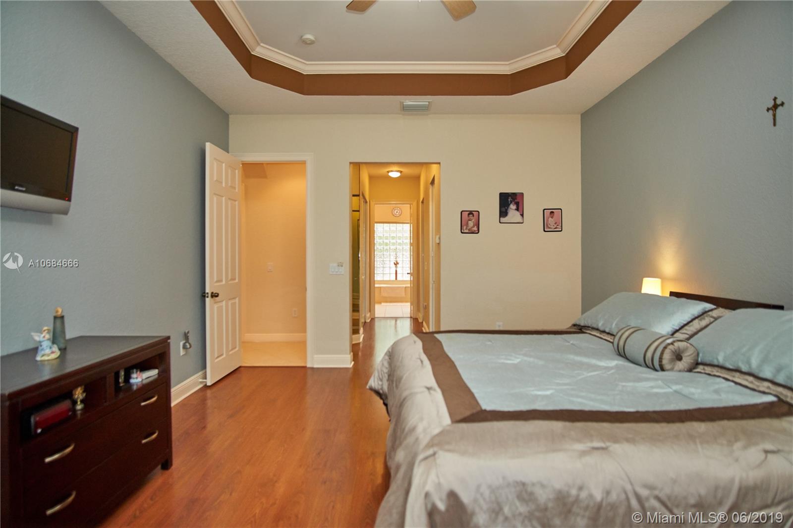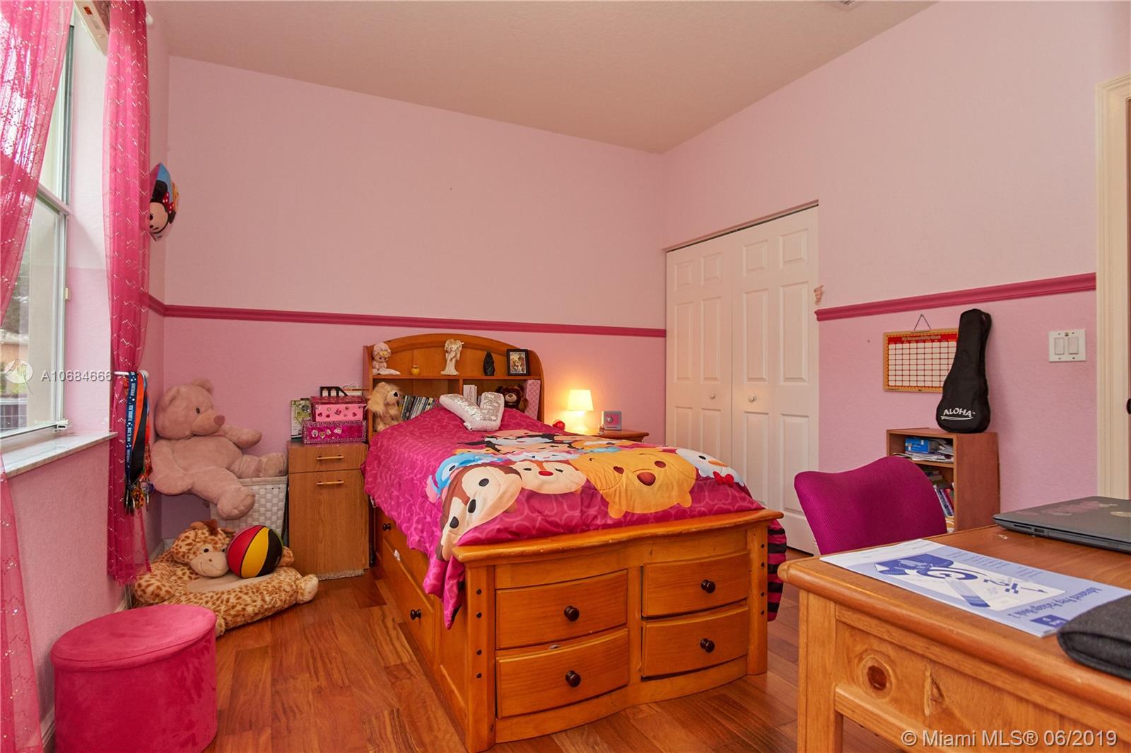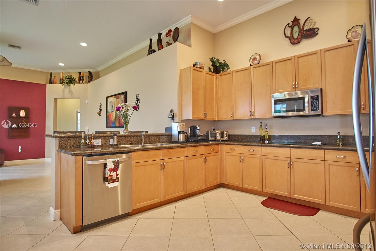 Beautiful lake front one story house in the prestigious community of Sunset Lakes. Over size lot. Open plan, high ceilings, large windows with plenty of natural light. 5 bedrooms with hard wood floors, 3 bathrooms. 2 bedrooms share a Jack-Jill bathroom. Large master bedroom with 2 walking closets. Master bathroom has his and hers sinks, jacuzzi tub. Formal dining room and living room, spacious kitchen with stainless steel appliances and granite counter tops. Big family room with a gorgeous sunset view over the lake, impact windows facing the lake, screened terrace, fence. Laundry room with sink and cabinets. 3 car garage. The Association fee includes basic cable, alarm and access to the club house that includes resort style pool, complete gym/sauna, tennis, basketball, and playground.