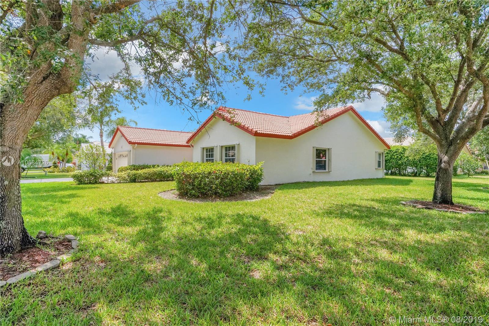 Absolute Bargain for this rarely available large 4 bed 2 bath on corner lot in sought after Addison Estates. This home is extremely light, bright and airy and offers an open floor plan with volume ceilings, spacious kitchen with corian counter tops, tons of cabinet space, built ins, trash compactor, pantry and large family room off the kitchen. Home also features a huge master bedroom with giant walk in closet, covered screened patio, large laundry room, high efficiency water heater, accordion hurricane shutters all around, automatic sprinklers, security system and a water softener system. Addison Estates is a prime Coral Springs neighborhood with extremely low HOA dues. Show this home today before it's gone.