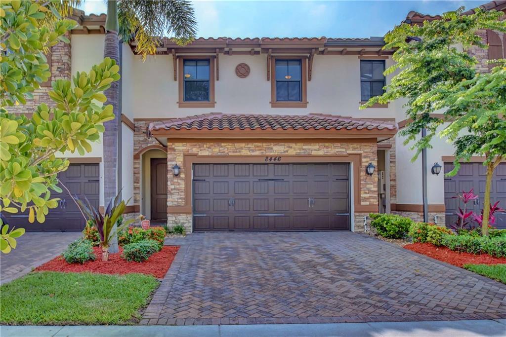 Immaculate 3 bedroom, 2.5 bath townhome in Town Parc at Mira Lago! Updated kitchen with granite countertops, new backsplash, recessed lighting and stainless steel appliances. Tile on the first floor and carpet upstairs. Huge master bedroom with custom closet. Freshly painted interior. Two car garage, Impact windows & doors, and paver driveway. Guard gated community with resort style amenities with include beautiful community pool, gym, basketball, tennis, and much more.