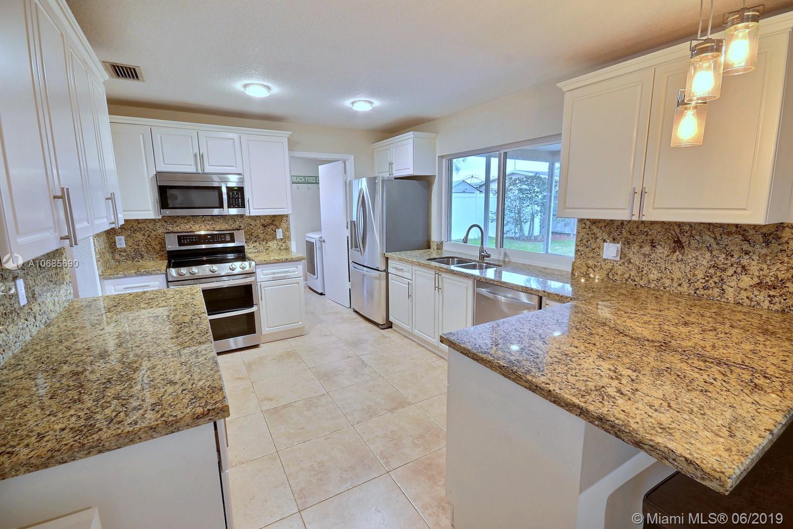 REALLY BEAUTIFUL HOME IN RAINBOW LAKES, PEMBROKE PINES FEATURES OPEN FLOOR PLAN, UPDATED KITCHEN W STAINLESS APPLIANCES, GRANITE TOPS, GORGEOUS FLOORS (NO CARPET ANYWHERE!!) NEW IMPACT WINDOWS & DOORS INSTALLED IN 2016 INCLUDING BIG FRONT PICTURE WINDOW. ELEGANT PAINT & FIXTURES. EXQUISITE MASTER SUITE W 2 WALK-IN CLOSETS & AMAZING NEW BATHROOM W DOUBLE SINKS & FRAME-LESS SHOWER. LOVELY CURB APPEAL W NEW PAVERS, ROCK PORCH & STONE FRONT; LARGE SCREENED-IN & COVERED PATIO ON FENCED BACKYARD W FRESH SOD; SPRINKLER SYSTEM & 2 CAR GARAGE. GREAT LOCATION NEAR SHOPS, RESTAURANTS & A FEW MINS FROM PASADENA LAKES ELEMENTARY.