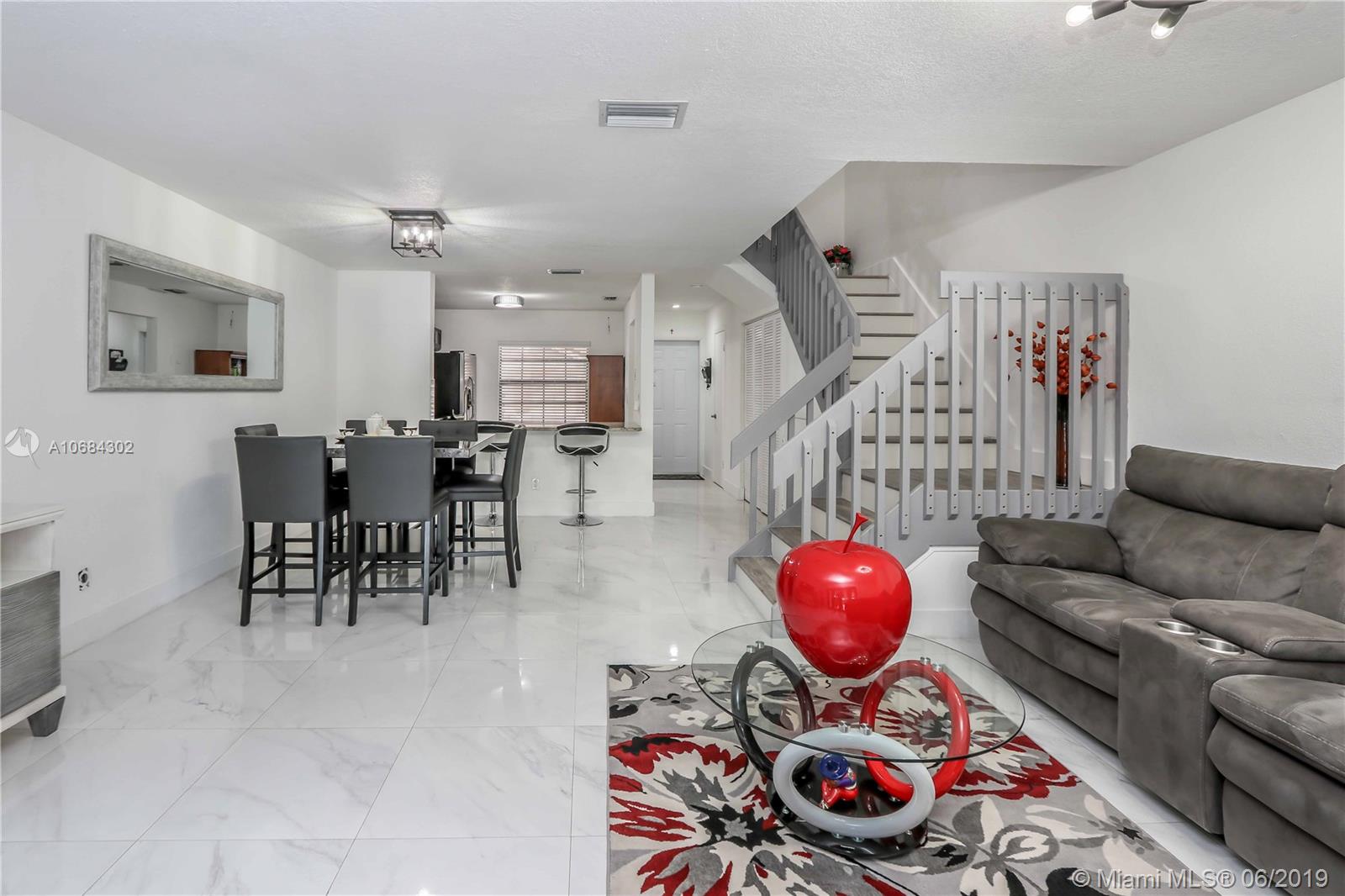 Stunning Modern Townhouse Featuring an Open Floorplan with gorgeous porcelain tile throughout the Fist floor. IMPACT resistant French doors open up to the Newly fenced (2018) in Huge patio that’s perfect for entertaining, half of the patio has tile and a roof, installed in (2019) the other half has pavers and green areas . The beautiful open kitchen is decorated with newer cabinets, accented with granite countertops & stainless steel appliances (2016) and warm natural light through the kitchen window. New Full Size Washer and Dryer (2018). The stairs and upstairs features Waterproof Parkay Floors with lifetime WARRANTY. New central a/c (2018) with 10 year warranty ! Remodeled Bathroom, Spacious bedrooms, Walk in Closet and so much more !!! Home has Aluminum Shutters, will not last!