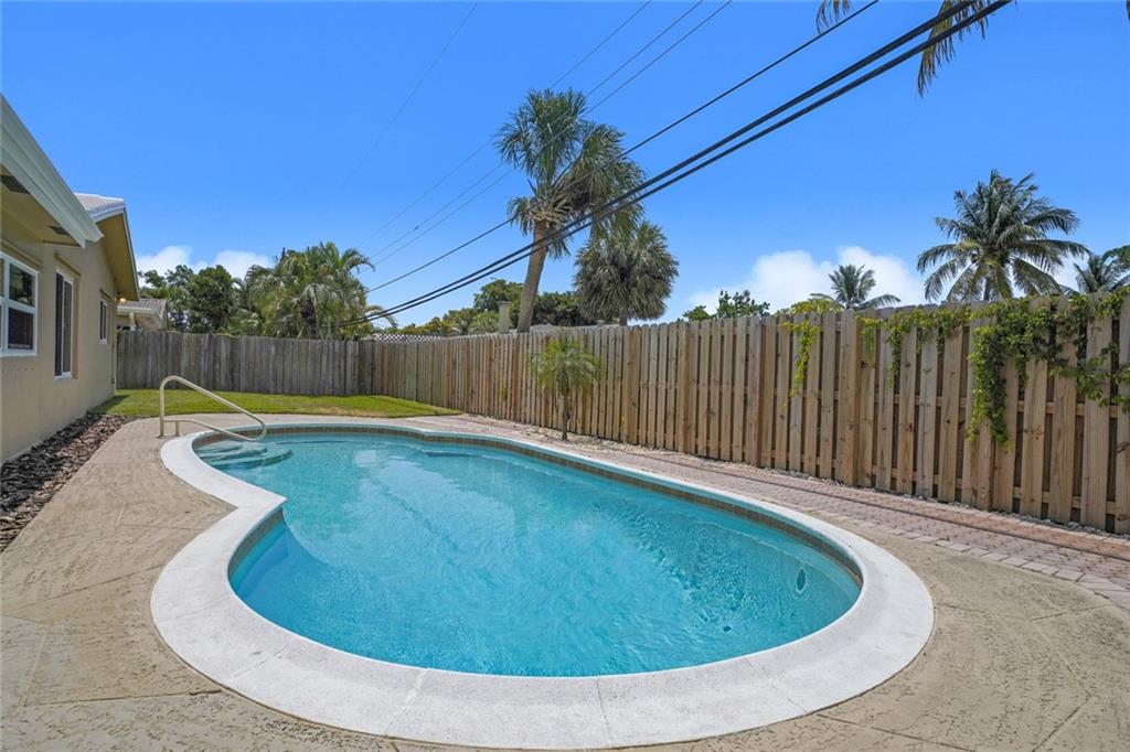 You have found your next home! This 4 bedroom, 2 bath property has impact windows and doors, and the kitchen, baths and floors have been redone. Bright and open with granite counters and stainless steel appliance in the kitchen. A fully fenced, large back yard with a beautiful pool and southern exposure for plenty of sun and breezes. Beautiful landscaping with circular drive in a great neighborhood, close to shopping, parks and healthcare etc. An over-sized one car garage. Just bring your toothbrush and clothes!