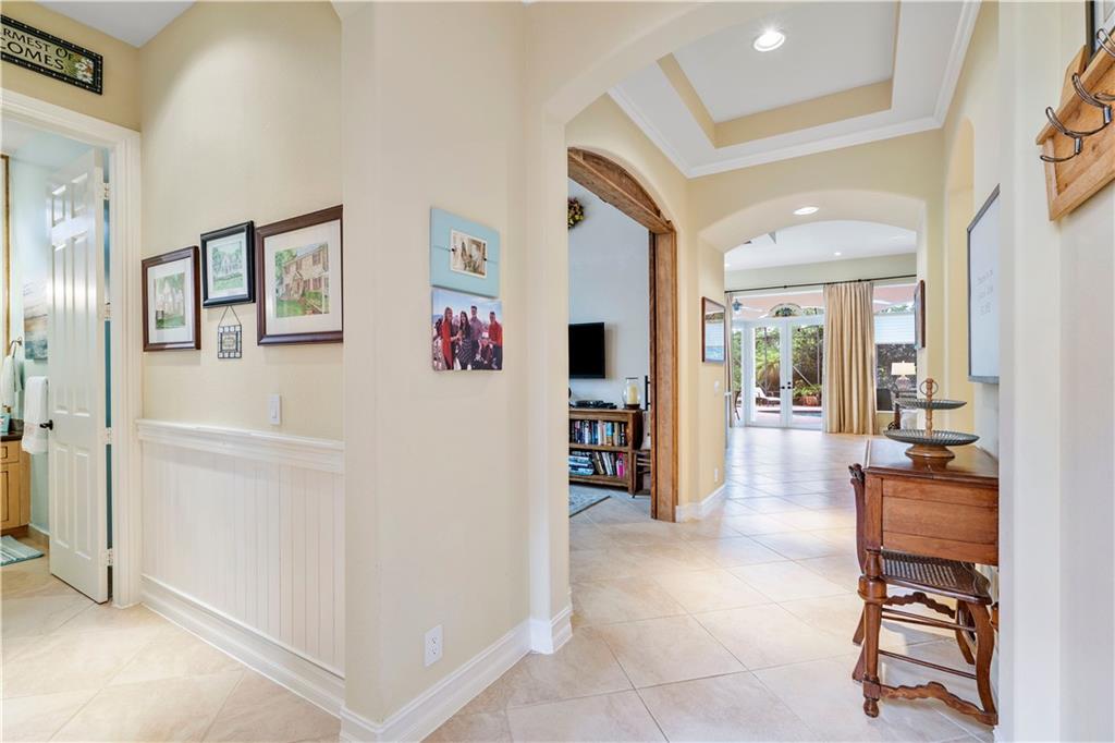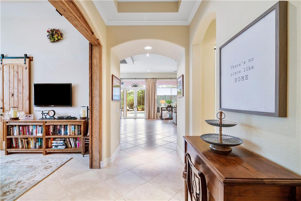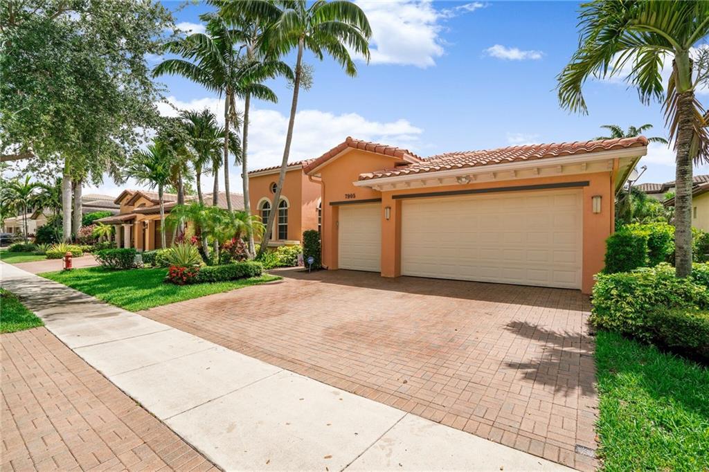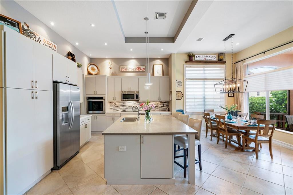 Step into this contemporary spectacular 4 bedroom 2.5 bathroom pool & lake home in the Glen-Heron Bay, Updated throughout with gourmet kitchen with center island & Stainless appliances, induction cooktop, built-in wine cooler, Quartz countertops, Formal dining room has been remodeled into a reading quiet room with fabulous sliding wooden barn doors, Impact windows and accordion shutters, 3 bedroom split, Gorgeous modern bathrooms, 1 extra wide bathroom "handicap accessible" Italian tile flooring, Huge screened "solar heated pool" in paved area with baby fence, brand new A/C, 3 car garage, shows like a model, A+ Schools School bus picks up & drops off at end of the street, 2 x resort sized clubhouses with state of the art gyms, waterpark, Huge heated pool, Close to parks and shopping