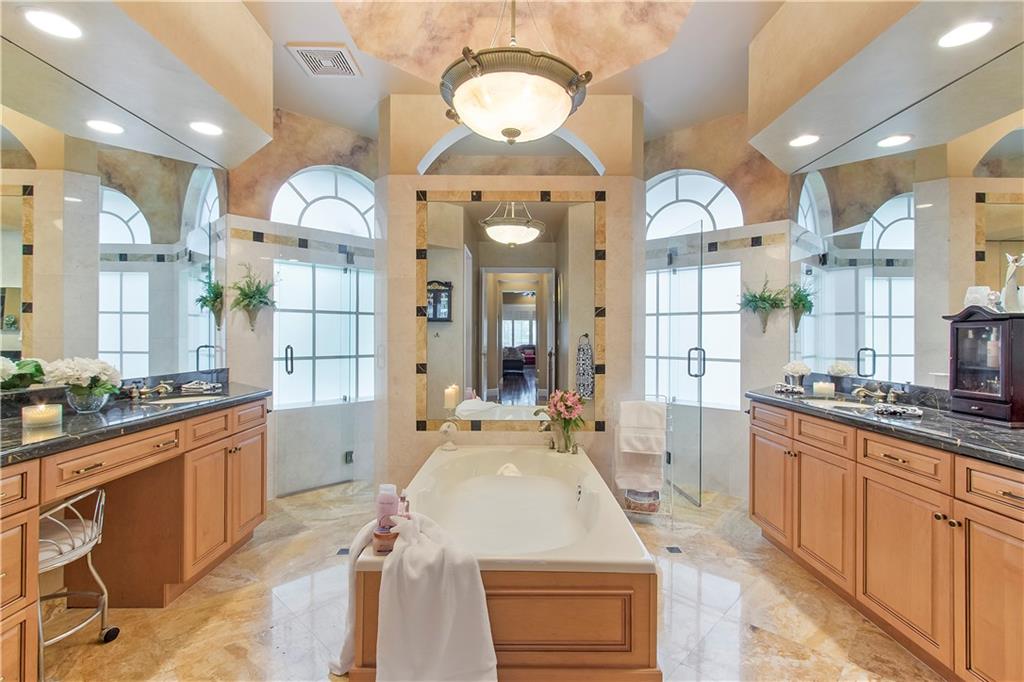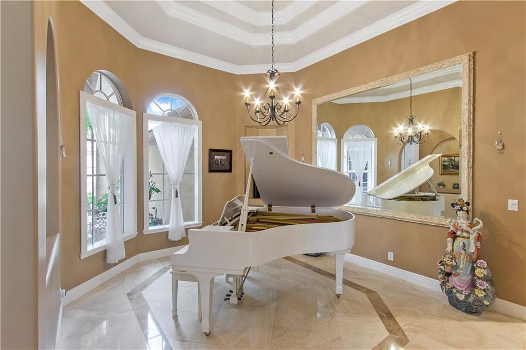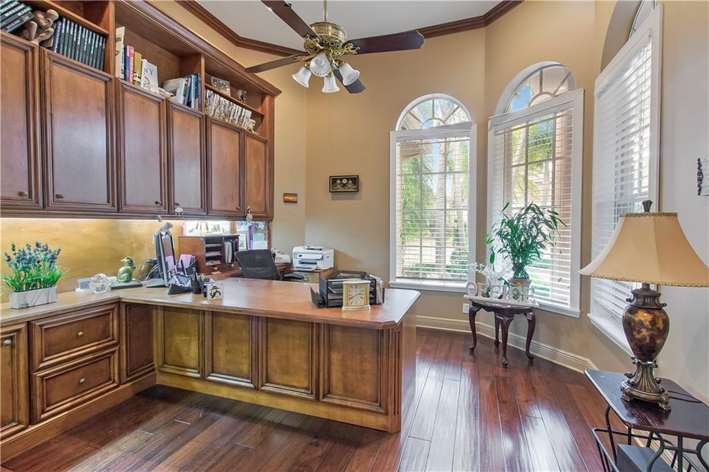 Luxury living in this 5BR 3Bath + sep. office, triple split golf course home boasting the finest finishes-marble, quartz, granite, hardwoods, soaring ceilings, impact doors and windows. The kitchen boasts Subzero frig, double oven, island, granite snack counter. Plenty of open floor plan for entertaining both inside and out. Huge 13,000+ lot gives lots of room with huge heated pool/spa and summer kitchen for entertaining. Backyard looks like a park!! AMAZING VIEWS!! This home has been impeccably maintained, and awaits you! Family Rm bar & wine cooler do not convey.