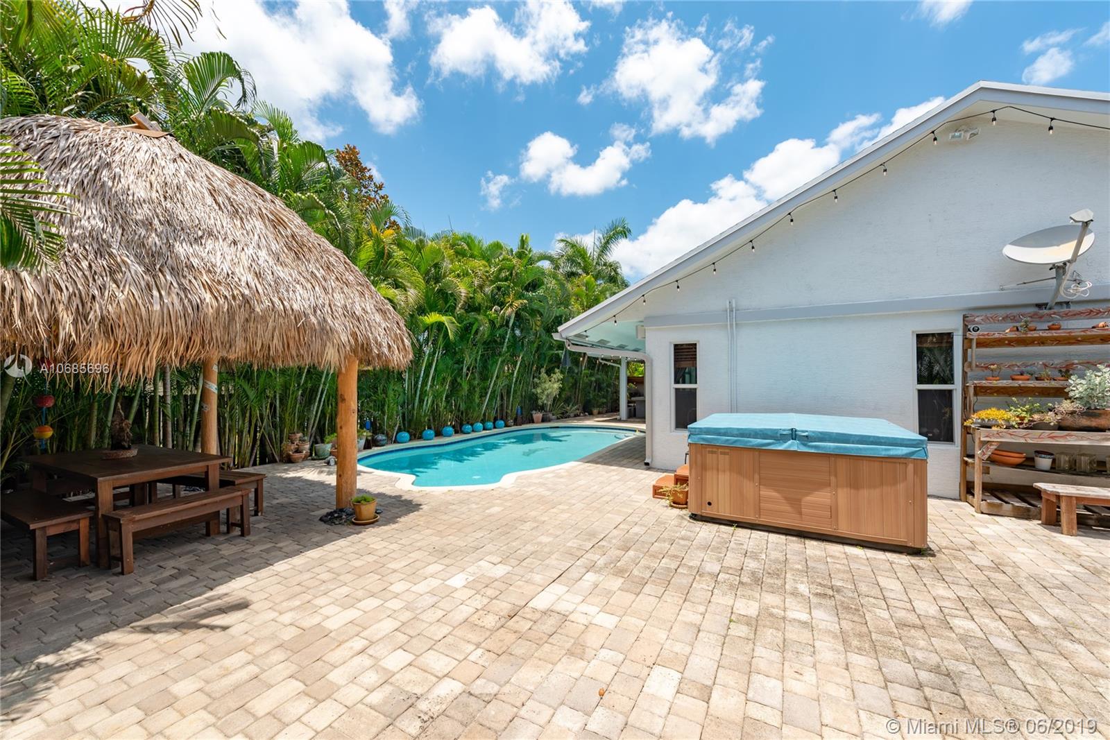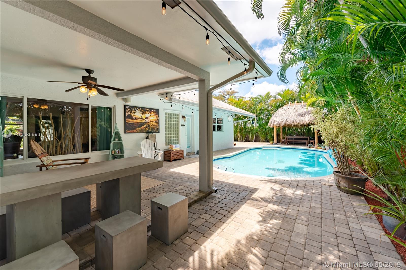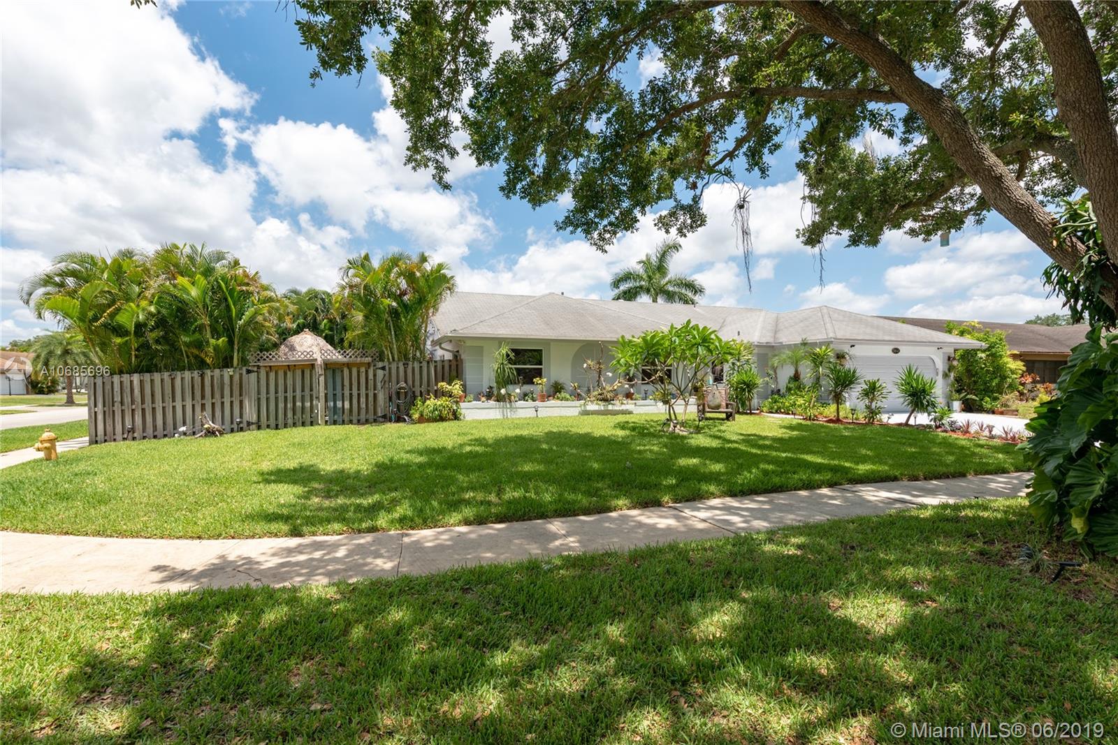 This elegant home is situated in the idyllic surroundings of Flamingo Gardens. The property’s enchantment begins as you approach the home, where a mature oak tree provides a sense of serenity. Lush landscaping provides considerable privacy. The expansive interiors offer an open floor plan w marble floors & impact windows. A focal point is a picturesque large window that looks out into the backyard oasis. The living area is divided over 3 comfortable spaces ideal for relaxing or entertaining. The cozy, French-style dining room leads to the serene backyard, w a covered patio, tiki hut, hot tub & heated pool. Other highlights are remodeled baths, kitchen & large corner lot. This is the ideal home for a family seeking a home in which to enjoy absolute tranquility in the heart of Cooper City.
