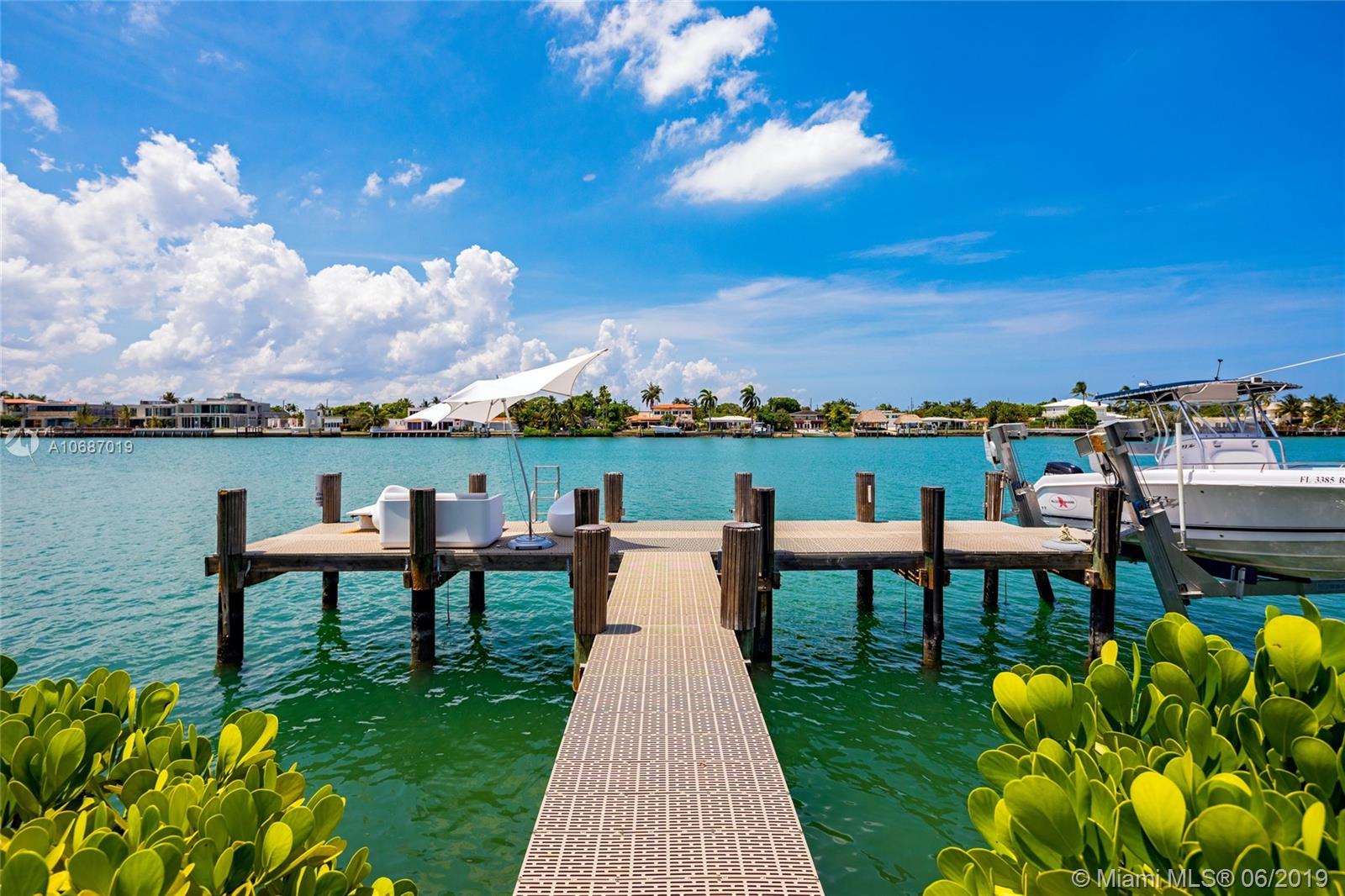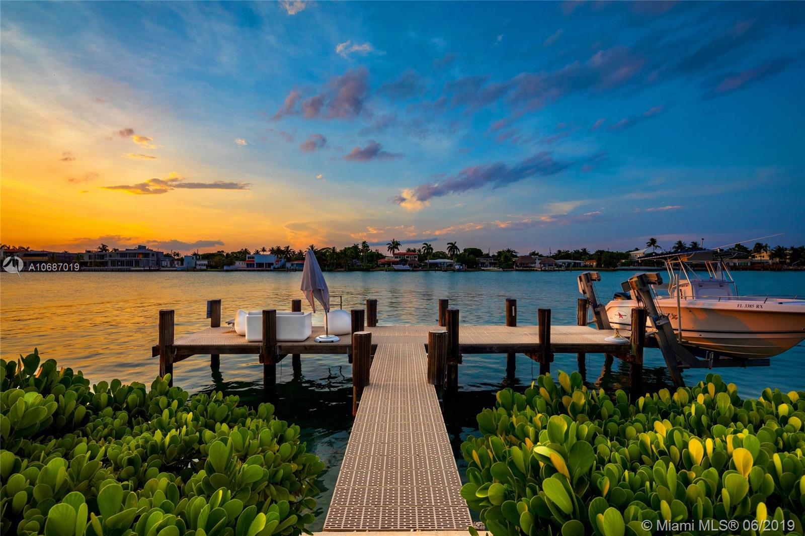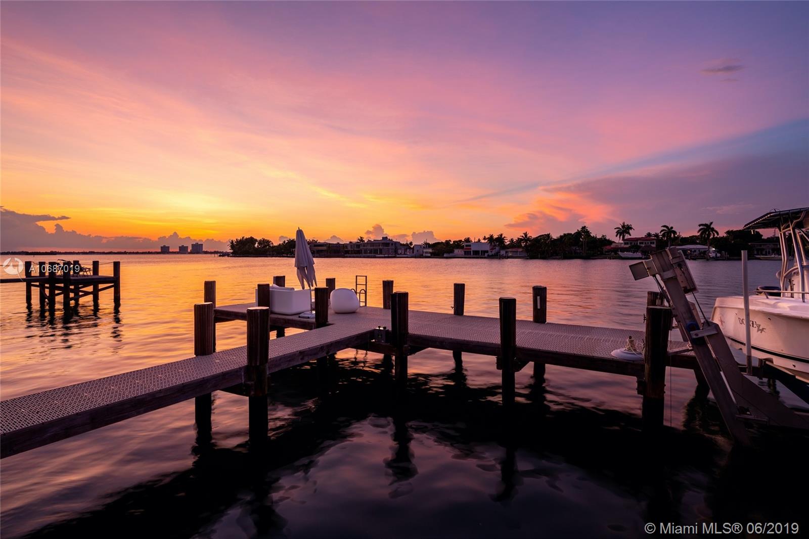 Your modern oasis in the secluded gated island of Normandy Shores awaits you. Contemporary architecture welcomes you to this home offering high ceilings, flow-through design, stunning panoramic views of the bay along with romantic sunsets every evening. 5 bedrooms, 5 bathrooms, and over 4,700 square feet of living space. Recently renovated in 2014, this home offers it all. Featuring top of the line appliances, luxurious finishes for comfort and enjoyment. Ideal for the avid boater who loves to entertain with 94 feet of water frontage, 500 foot deep water dock, and Davit system.