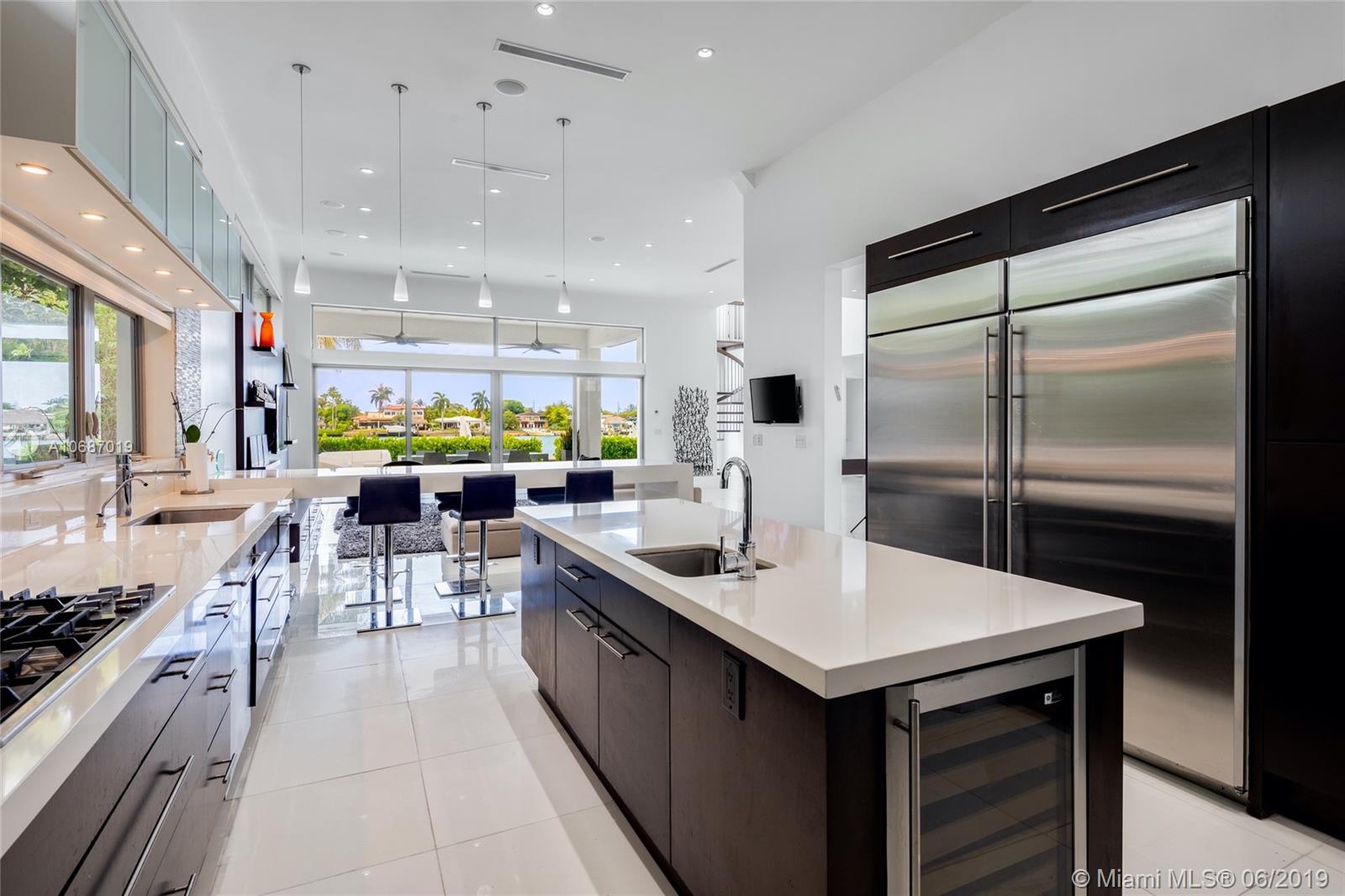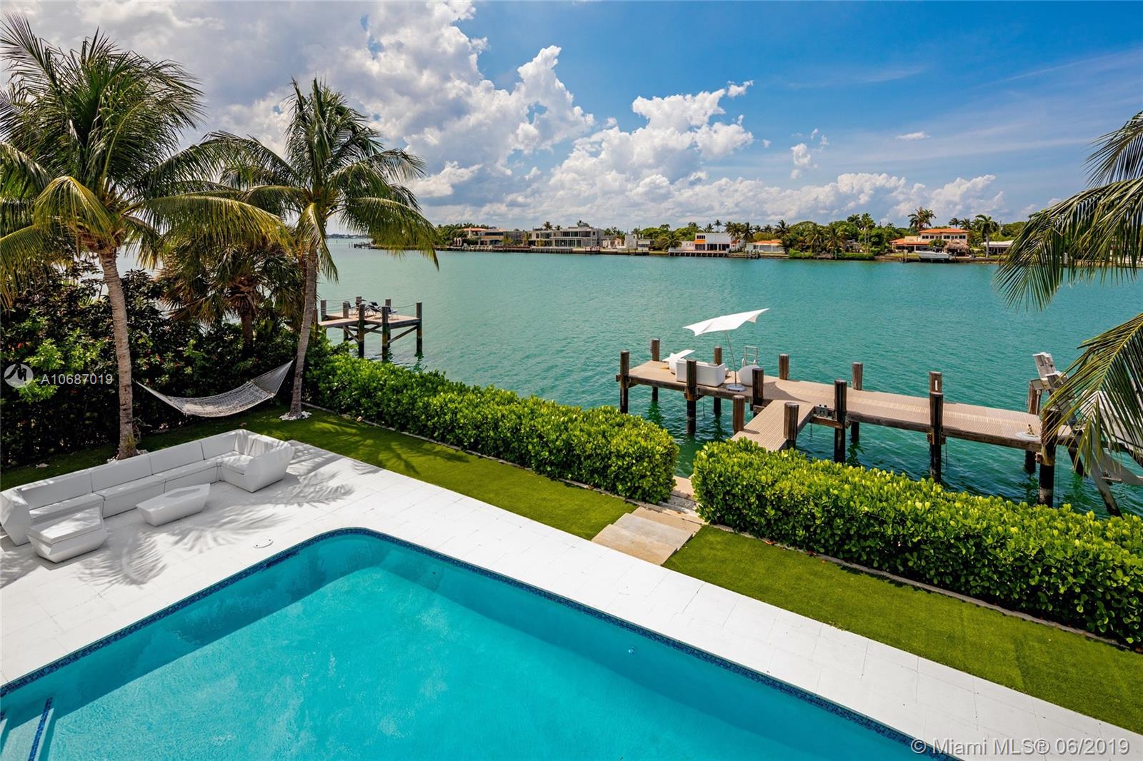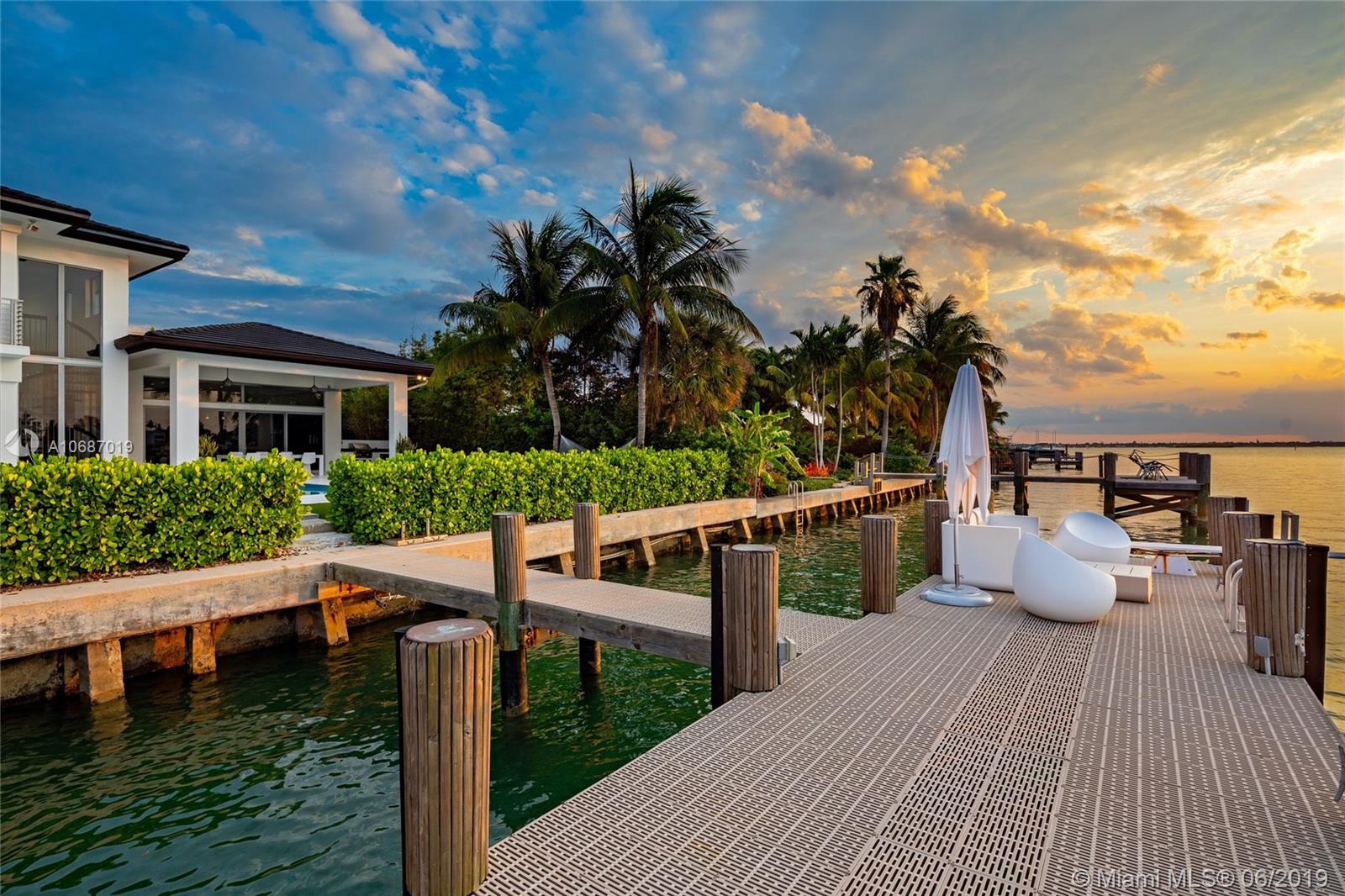 Your modern oasis in the secluded gated island of Normandy Shores awaits you. Contemporary architecture welcomes you to this home offering high ceilings, flow-through design, stunning panoramic views of the bay along with romantic sunsets every evening. 5 bedrooms, 5 bathrooms, and over 4,700 square feet of living space. Recently renovated in 2014, this home offers it all. Featuring top of the line appliances, luxurious finishes for comfort and enjoyment. Ideal for the avid boater who loves to entertain with 94 feet of water frontage, 500 foot deep water dock, and Davit system.