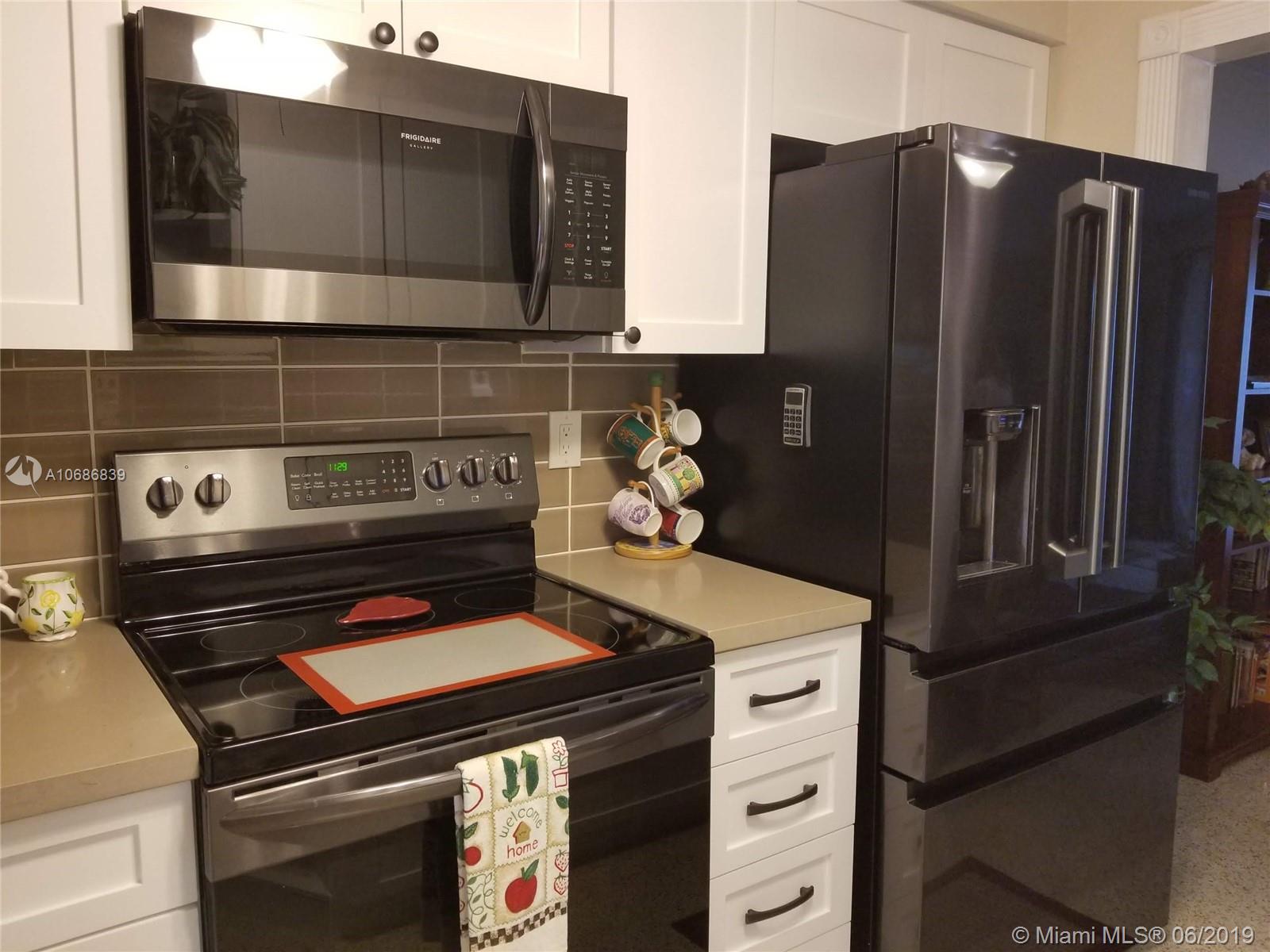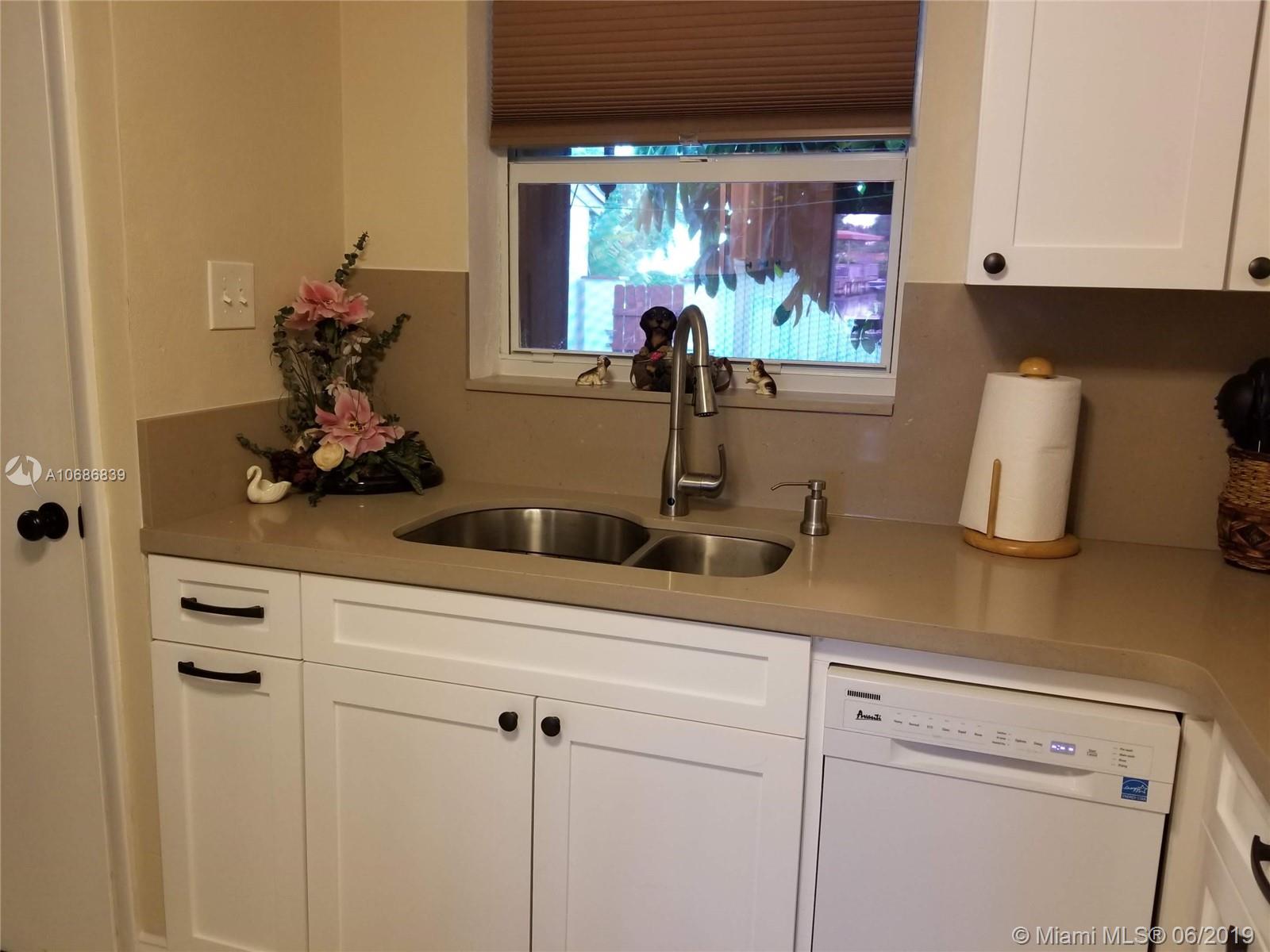 Beautiful home with new kitchen and appliances. All windows are hurricane resistant, including triple sliding glass doors. Front and rear patio roofs are well insulated which helps keep utility bills very low. Walk-in closets with mirrored doors. Original terrazzo floors shine like new. Only 1 owner has ever lived in this home! Upstairs laminate floors in the bedrooms and tile in the bathroom, freshly painted in/out. Washer and dryer are outside, under roof. Shown by appointment.