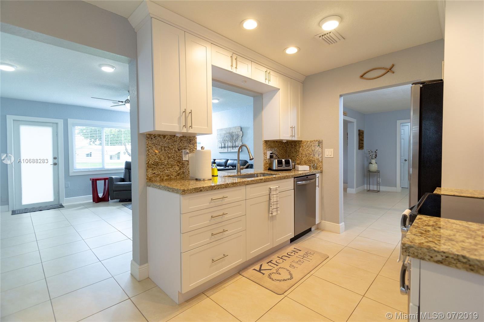 Beautiful and Immaculate completely Turnkey, this unique 2/2 home is state of the art in every way. Entirely remodeled featuring Impact Windows, doors including garage door, granite countertops, SS appliances, totally remodeled bathroom, tile floors throughout. New roof, New A/C including new ducts. Minutes from the pool, this Admiral model is one of the kind enlarged and extended to create formal dining room and huge family-third bedroom possible. Low Taxes, Low Maintenance. HOA covers the roof, exterior paint, pest control, lawn, many amenities such as heated pools, tennis, cable (AT U-Verse), Library, Fitness Center & other activities such as shuffle board, other games, stained glass classes & more. A haven to call home. Come see for yourself.