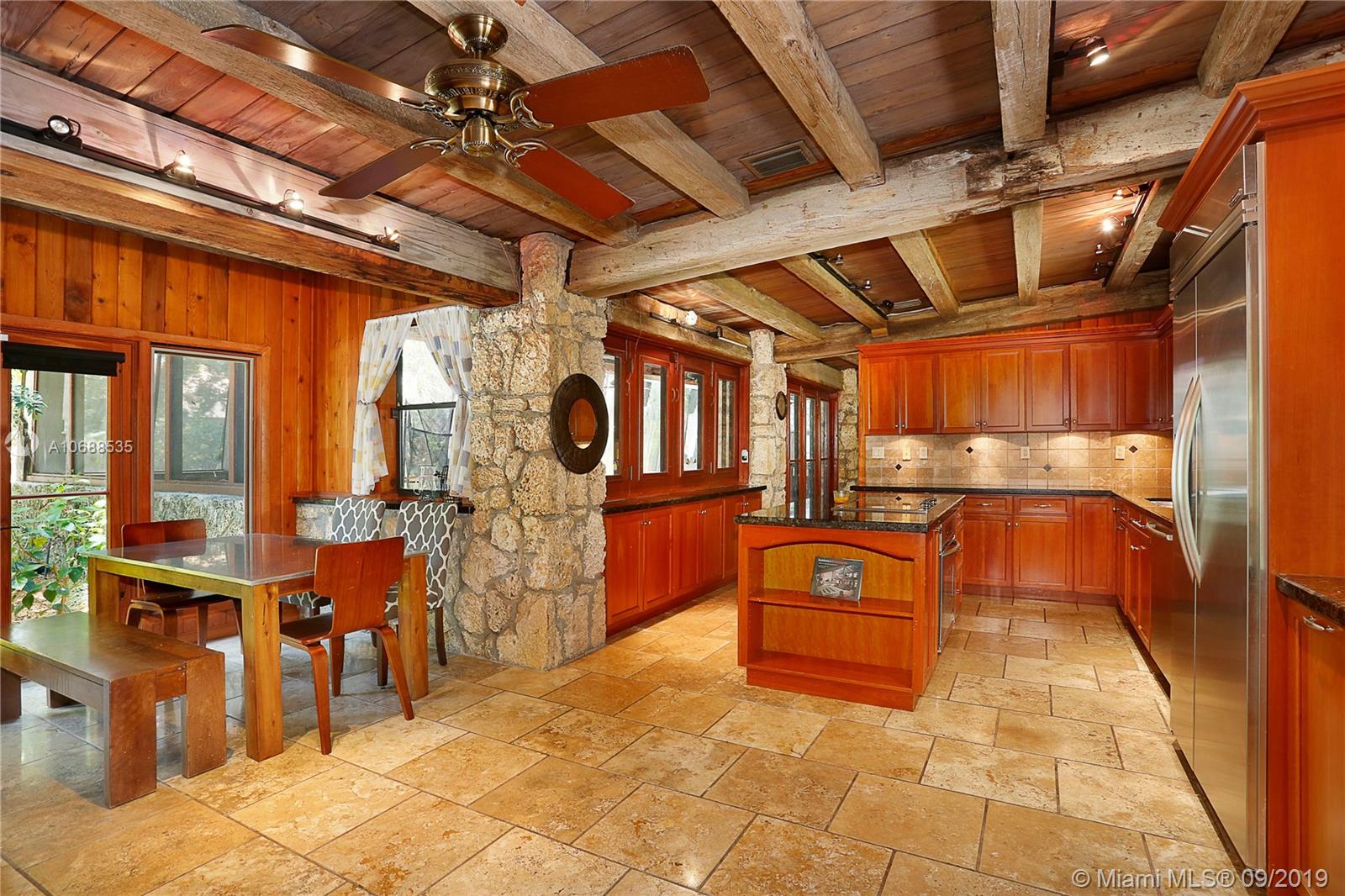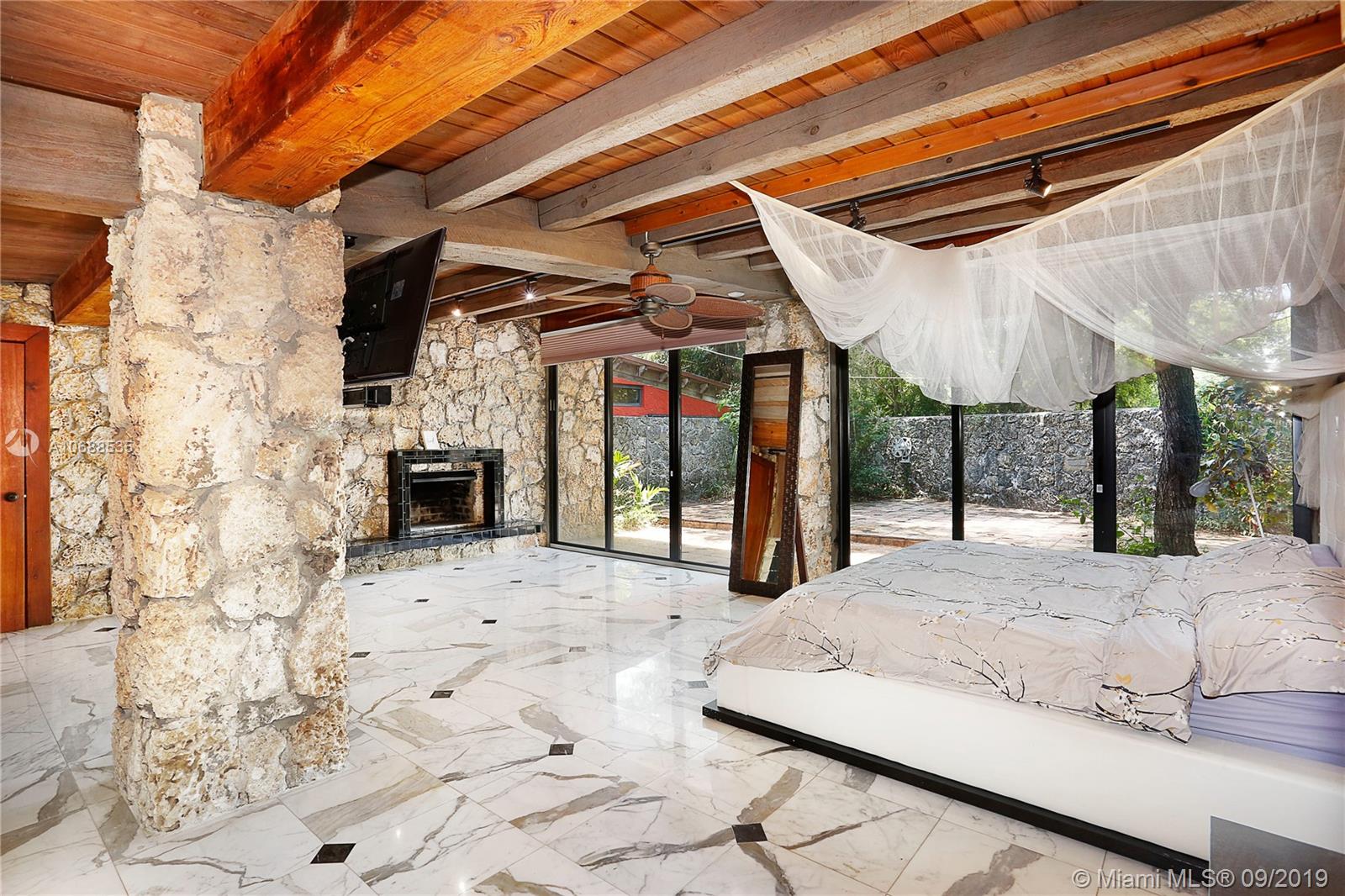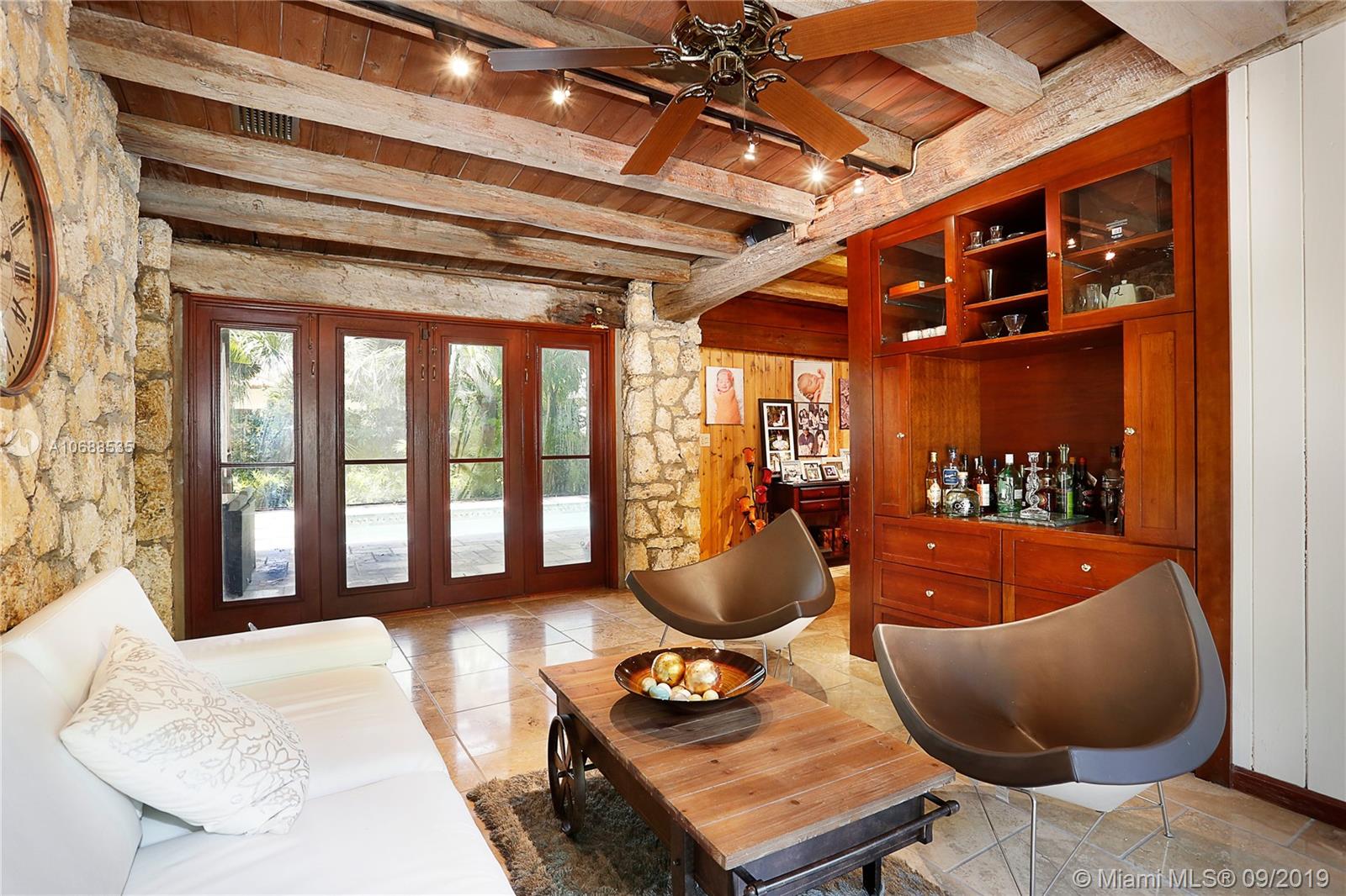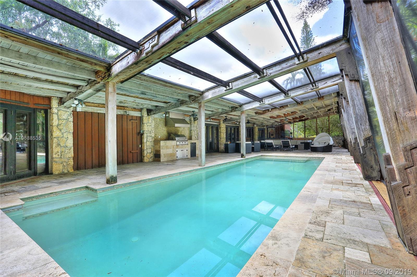 One Acre on excellent block of North Pinecrest near Gulliver!!Walled-in & gated 42,906 SQ FT LOT this 5/4 home offers seclusion & privacy like no other.Features beautiful & comforting wood beam ceilings,coral rock details,travertine marble flooring,impact windows,office/den,2 new A/C's,updated eat-in kitchen w/wood cabinets & s/s appliances, LARGE & oversized screened-in pool & patio w/built in grill that opens up to formal family & dining rooms, excellent for entertaining! Master bedroom offers beautifully & naturally lit up room & bathroom w/own private patio surrounded by coral rock & landscaping, private morning/evening oasis.House was recently tented! Built by world famous architect Alfred Browning Parker this home offers one of a kind features & personalized finishes.Truly a classic!