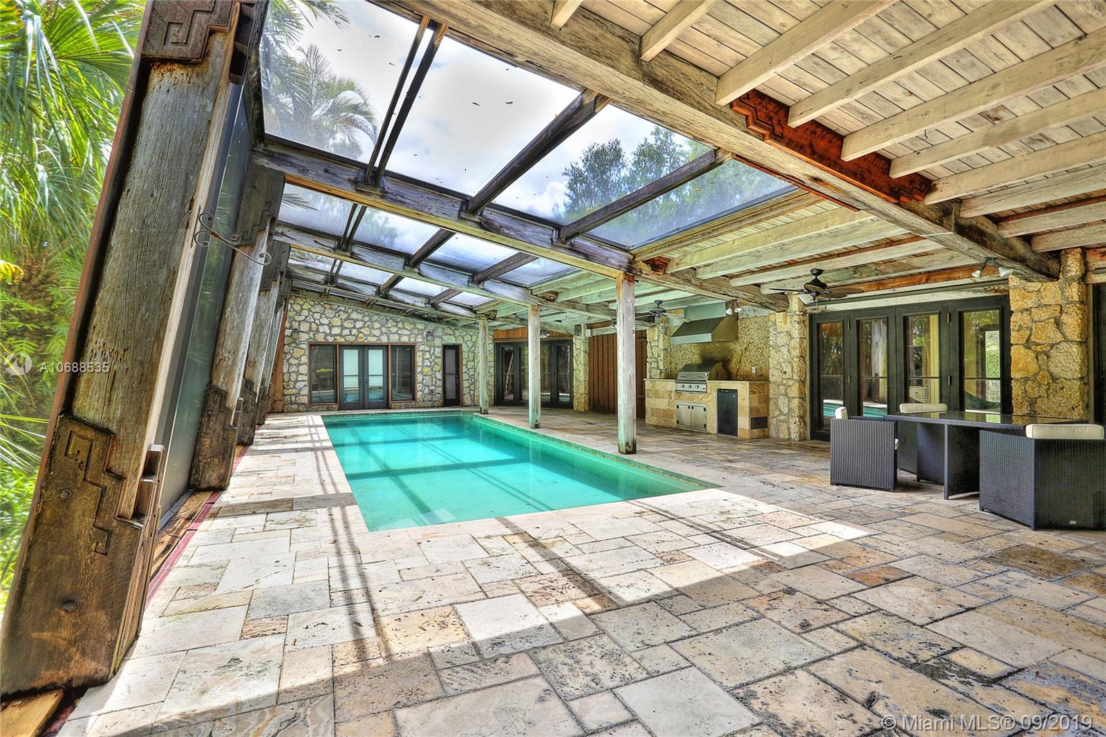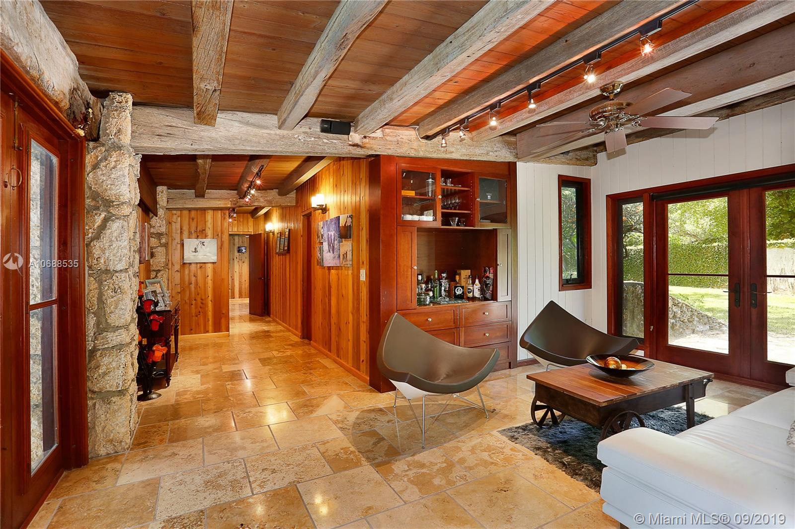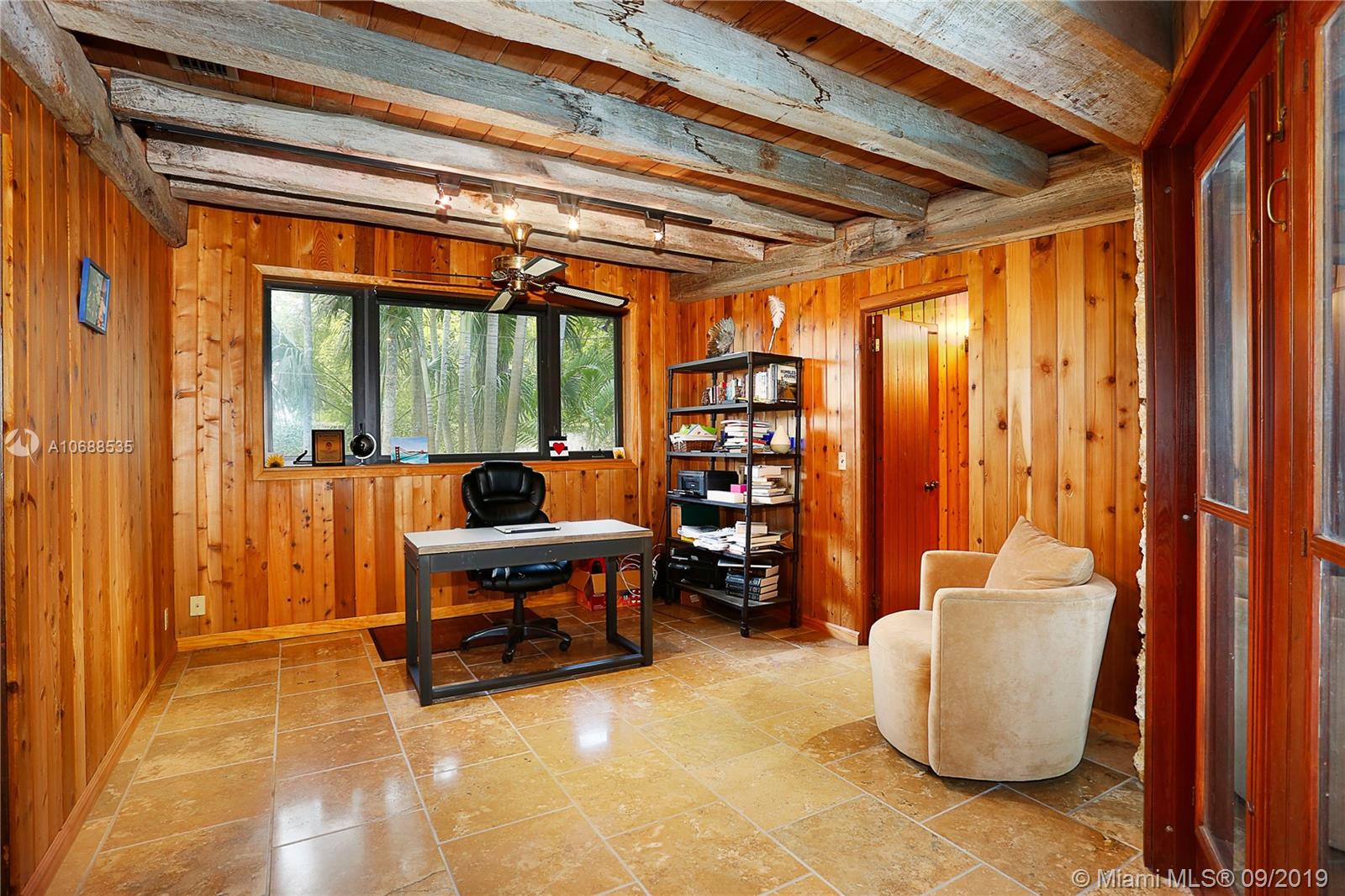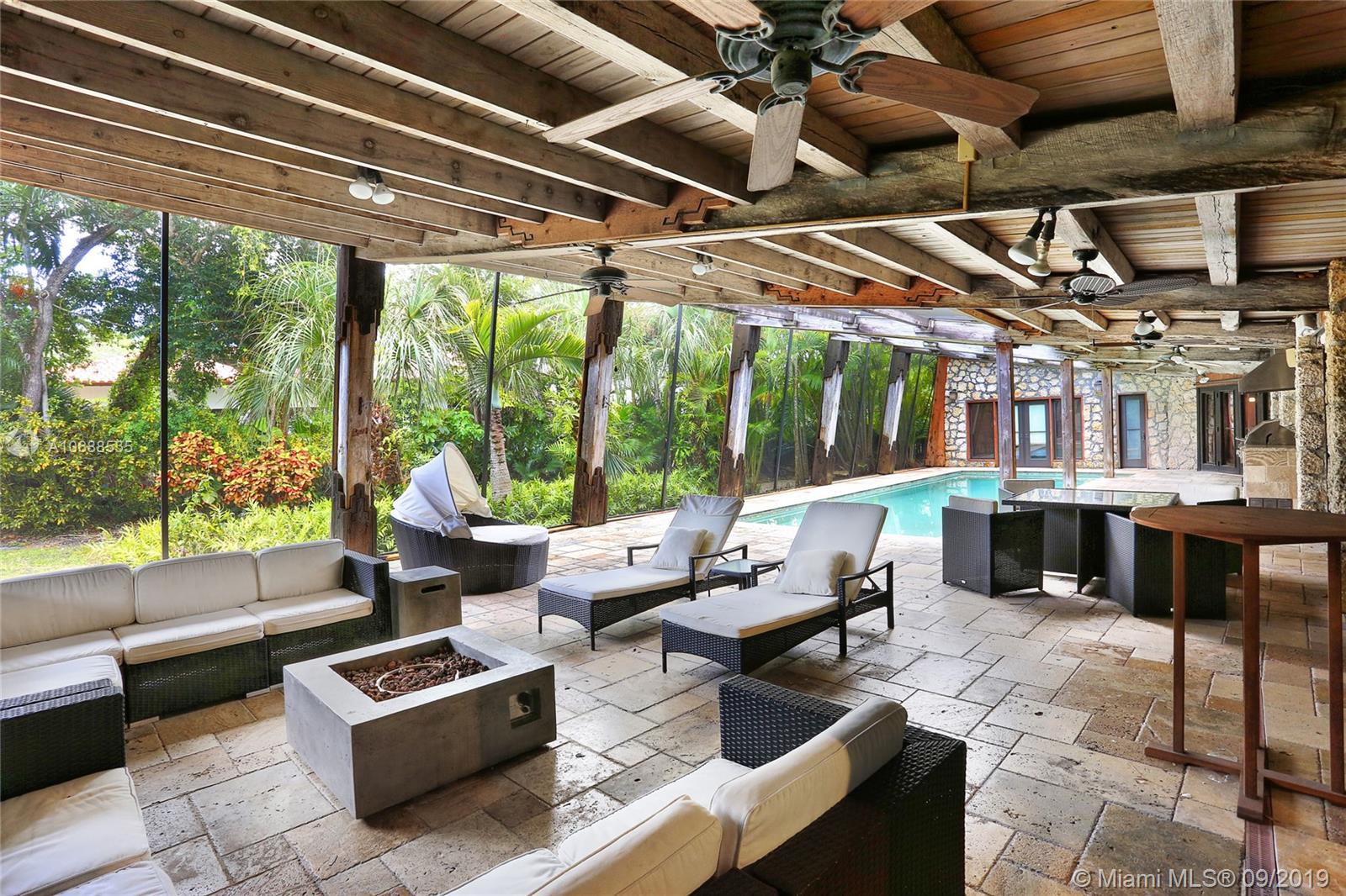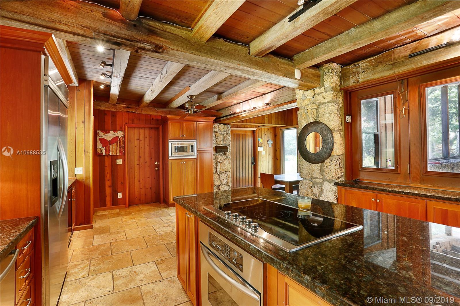 One Acre on excellent block of North Pinecrest near Gulliver!!Walled-in & gated 42,906 SQ FT LOT this 5/4 home offers seclusion & privacy like no other.Features beautiful & comforting wood beam ceilings,coral rock details,travertine marble flooring,impact windows,office/den,2 new A/C's,updated eat-in kitchen w/wood cabinets & s/s appliances, LARGE & oversized screened-in pool & patio w/built in grill that opens up to formal family & dining rooms, excellent for entertaining! Master bedroom offers beautifully & naturally lit up room & bathroom w/own private patio surrounded by coral rock & landscaping, private morning/evening oasis.House was recently tented! Built by world famous architect Alfred Browning Parker this home offers one of a kind features & personalized finishes.Truly a classic!