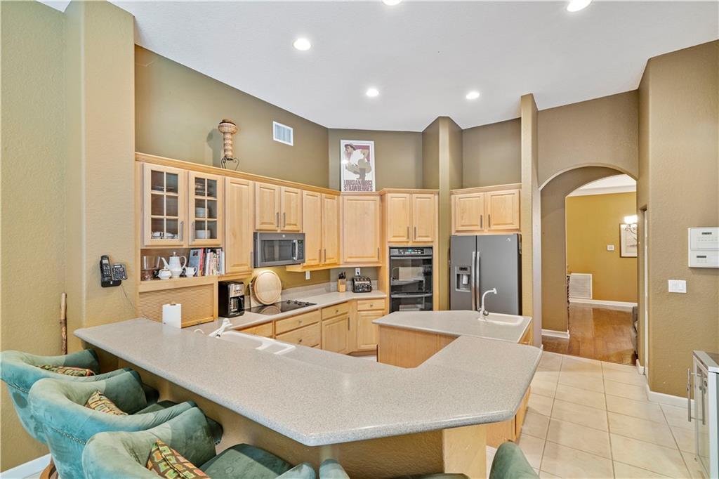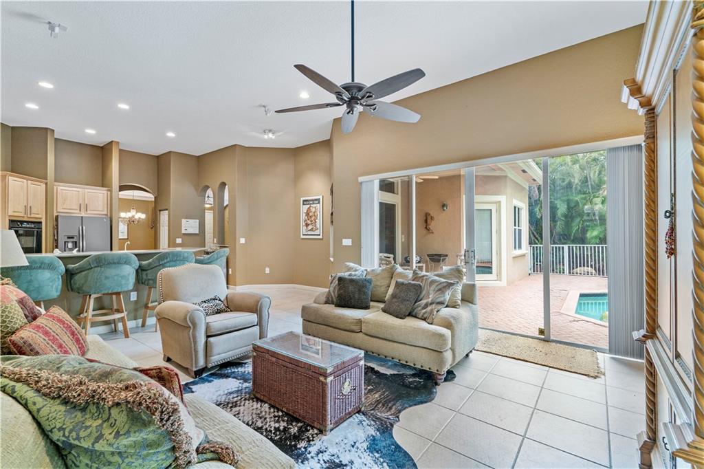 Lovely pool home in the sought after community of Venetian Isles. Dramatic foyer entry featuring beautiful hardwood floors in Living Room and Formal Dining Room. Triple split floorplan with office (5th bedroom) and large, private Master Suite with sitting area, his and hers baths, Bidet and Roman Tub. Kitchen has wood cabinets, double wall ovens and island with second sink. Built in surround sound in the Family Room and dual zone AC. Monthly HOA fee includes Cable, Internet, Alarm, Landscaping, manned Guard Gate and access to Eagle Trace amenities including tennis and golf.