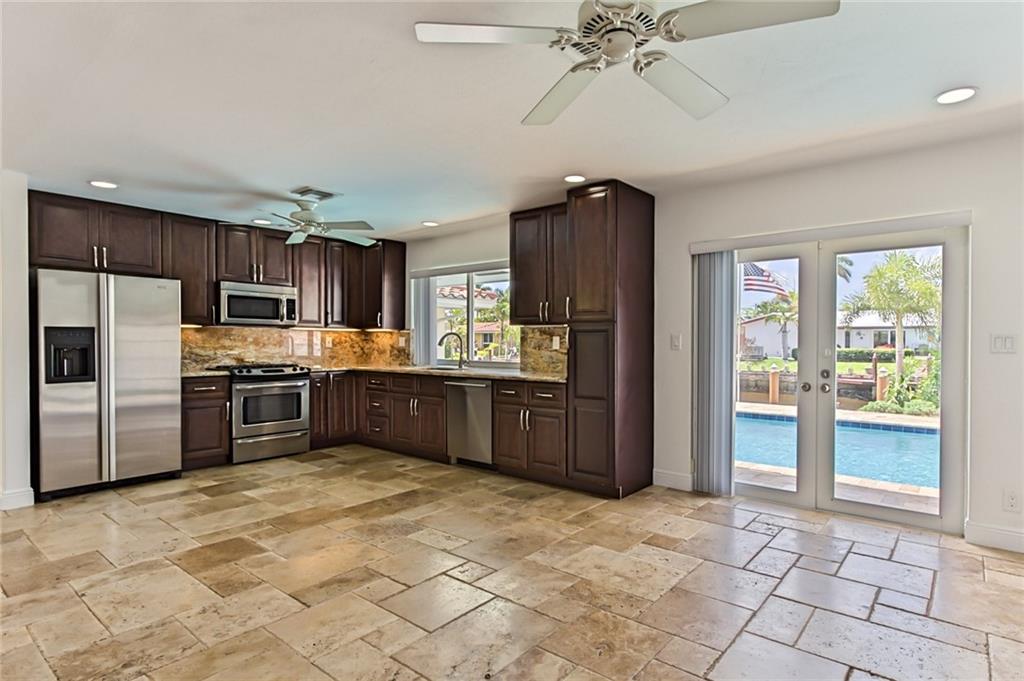 Incredible! Beautiful Waterfront Home in Coral Ridge Isles with Ocean Access! 3 Bedrooms & 3 Full Bathrooms with 2 Car Garage. Travertine Tile throughout with 4 sets of Impact French doors, Large Open Kitchen & Dining Area with Gas Range, Solid Wood Cabinets, & Stainless Steel Appliances. Home also has a Tank-Less Water Heater powered by Natural Gas. Saltwater System Pool with Color Changing LED Light. 75 ft Dock with Power & Lighting. New Roof in 2014. Quiet Cul-de-Sac Street.
