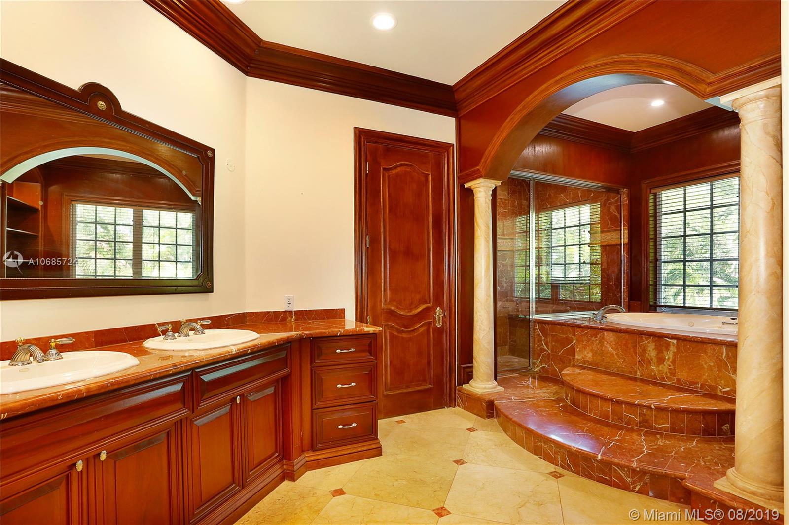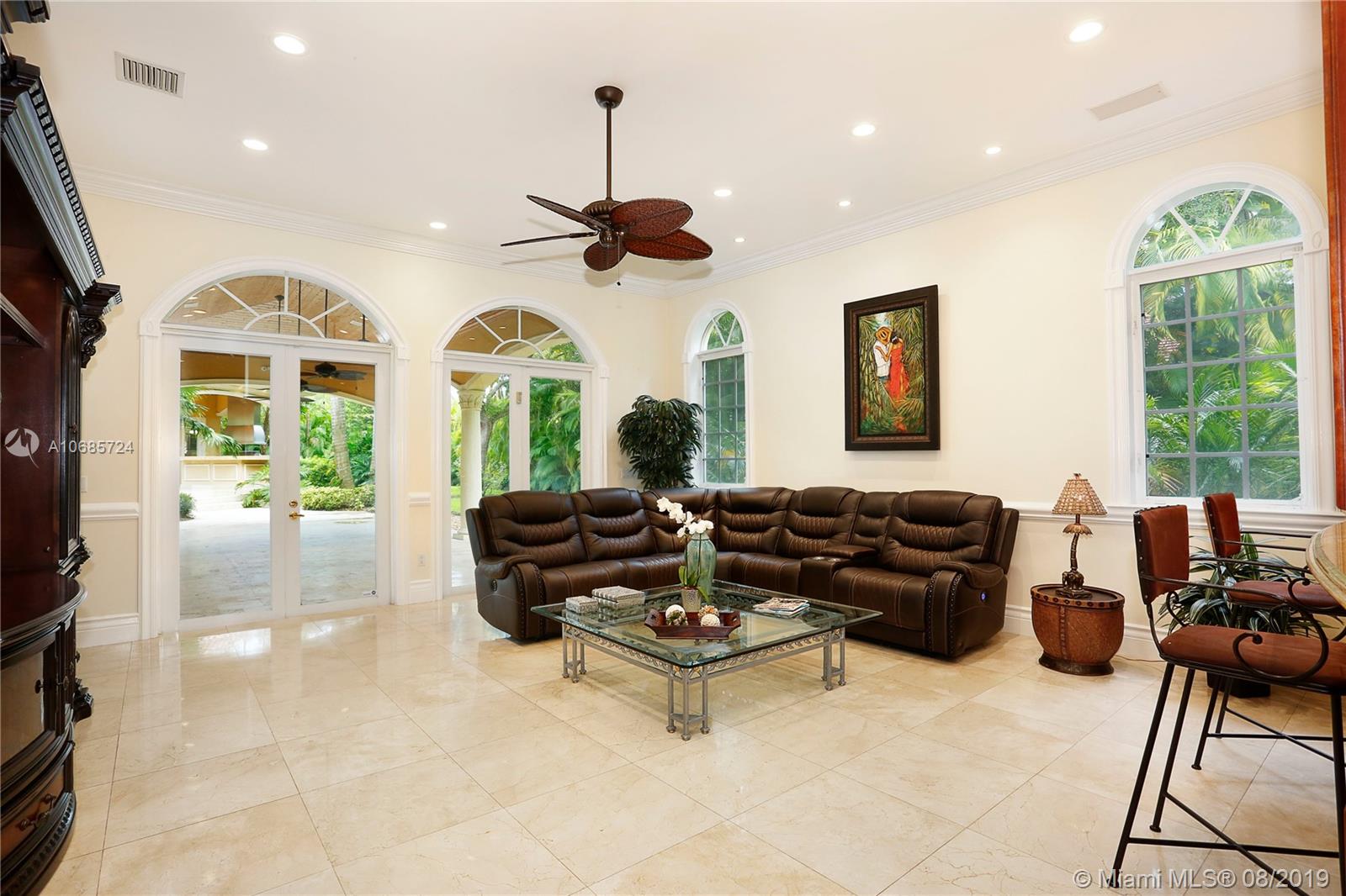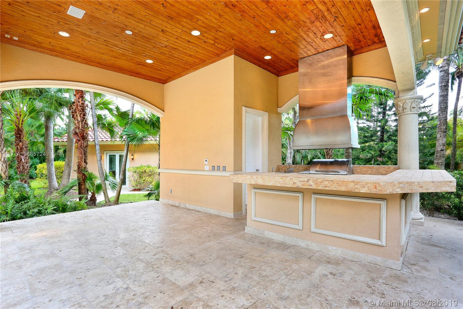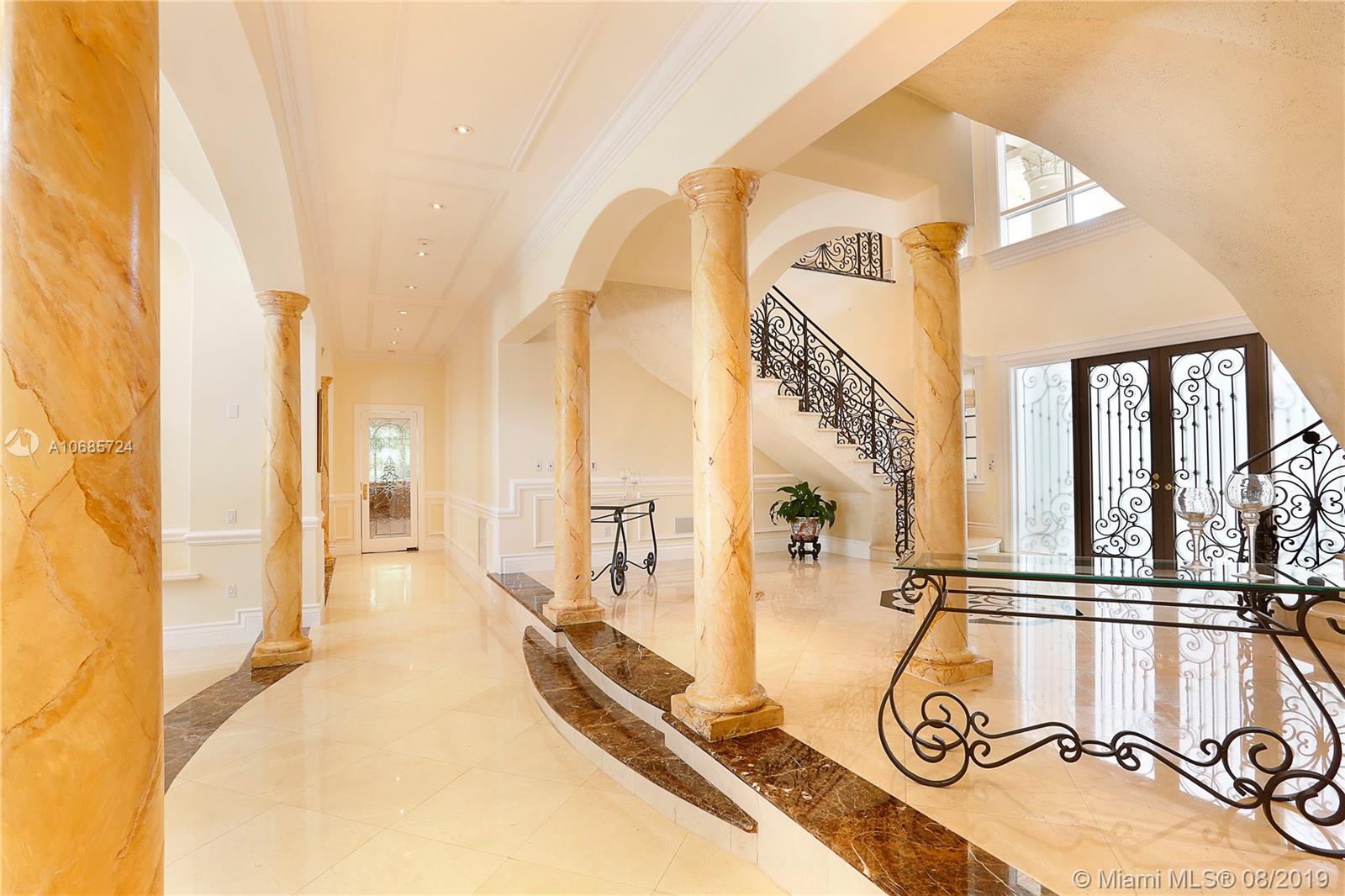 Majestic and Gated 2 Story Estate on Lush Acre Plus! Custom built 9792 sq ft. on 51,400 sq. ft lot! Grand Entrance Foyer with double staircase! Grand Spaces and double volume ceilings with Finest Finishes and Details throughout! Banquet sized formal dining and living room, 6 en-suite bedrooms, Elevator, 13 Seat Home Theater, Billiard/Game room, Cherry Wood Office/Library and separate building on property with Gym and extra storage. Amazing back yard for entertaining featuring oversized covered terraces, Resort Style Pool with a Cascading Waterfall & Second Story Jacuzzi, (pool was featured in Pinecrest Magazine in Aug 2014). Outdoor Kitchen with Cabana Bath and Professionally Manicured Landscaping with Majestic Palm Trees throughout.