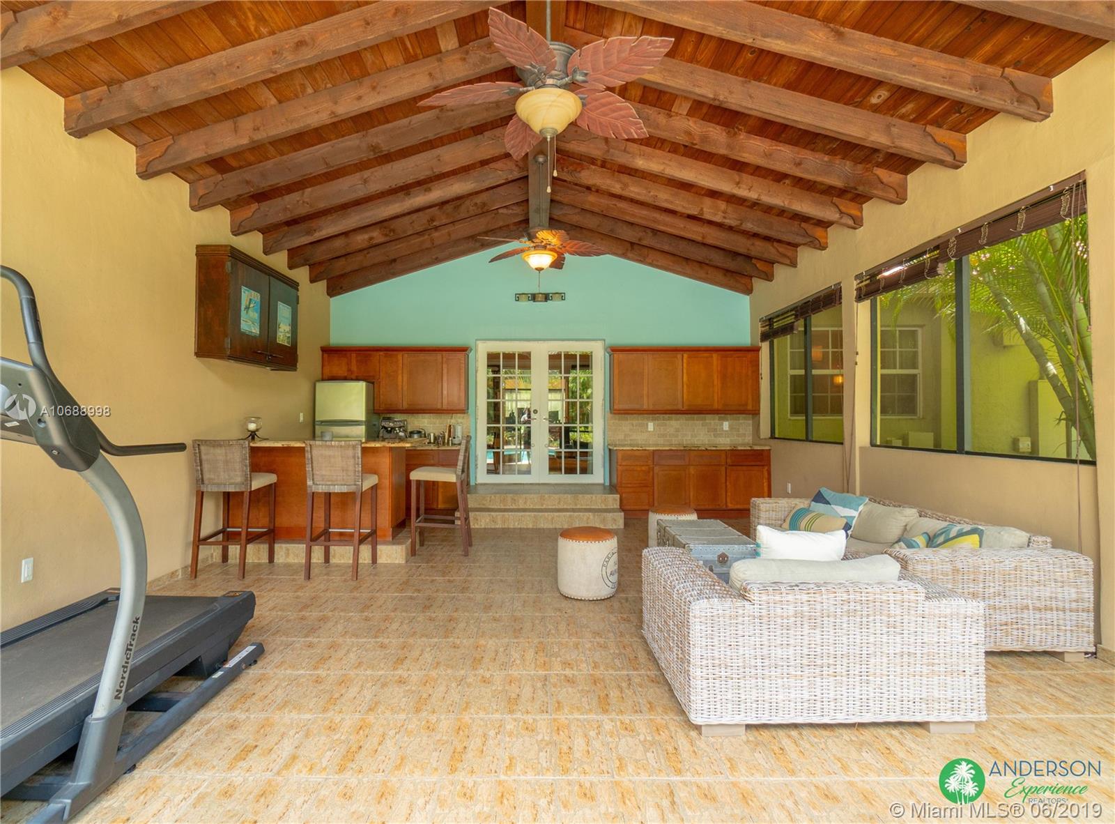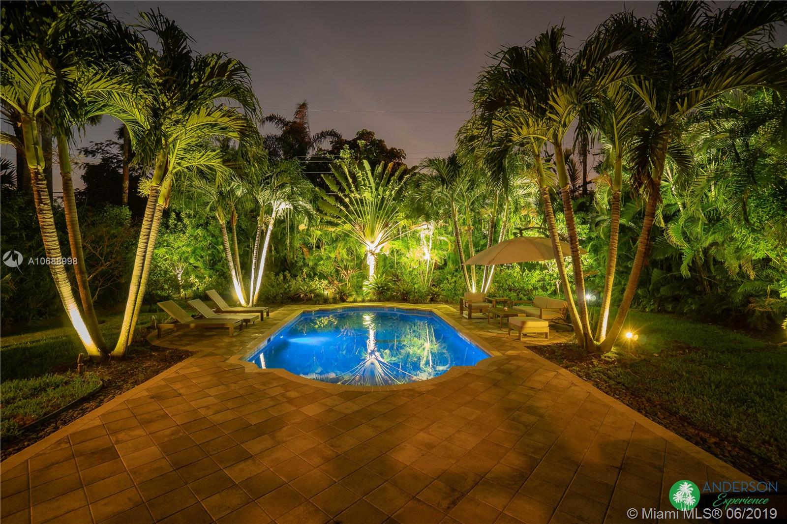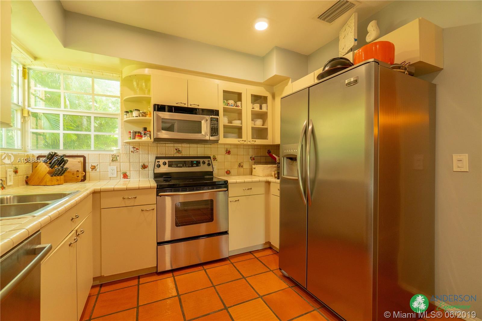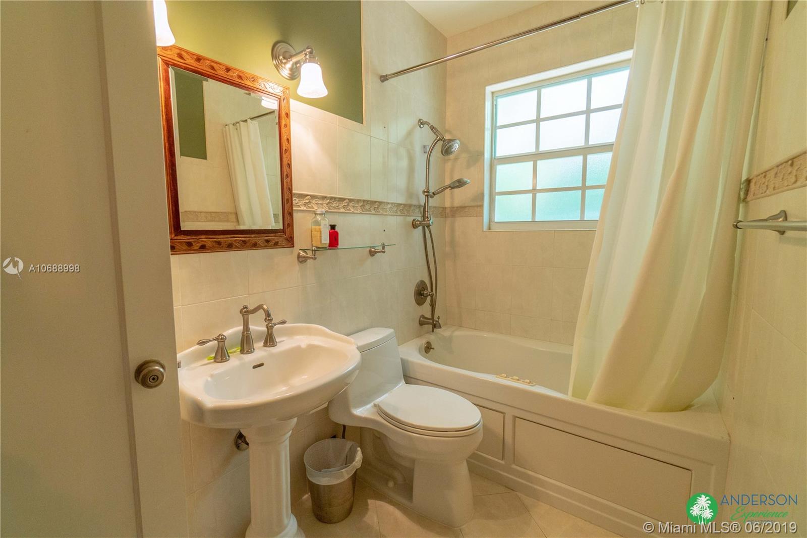 Great house to call home! Located a few blocks from Granada Golf Course and the Coral Gables Country Club. Built in 1944, this charming Art Deco home sits on a beautiful tree lined street w/ a circular driveway and a 1-car garage. The living room has beautiful Art Deco features in the ceiling & mantel of the working fireplace. The home is a split plan 3b/3b. The master bedroom features a walk-in closet & master bath w/ his n’ hers sinks. From the living room, French doors open to a huge screened in patio w/ wood beam vaulted ceiling, wet bar, serving station, and plenty of room for a dining table and seating area. Sparkling salt water pool with brick paved deck area, tropical landscaping, detached gazebo.