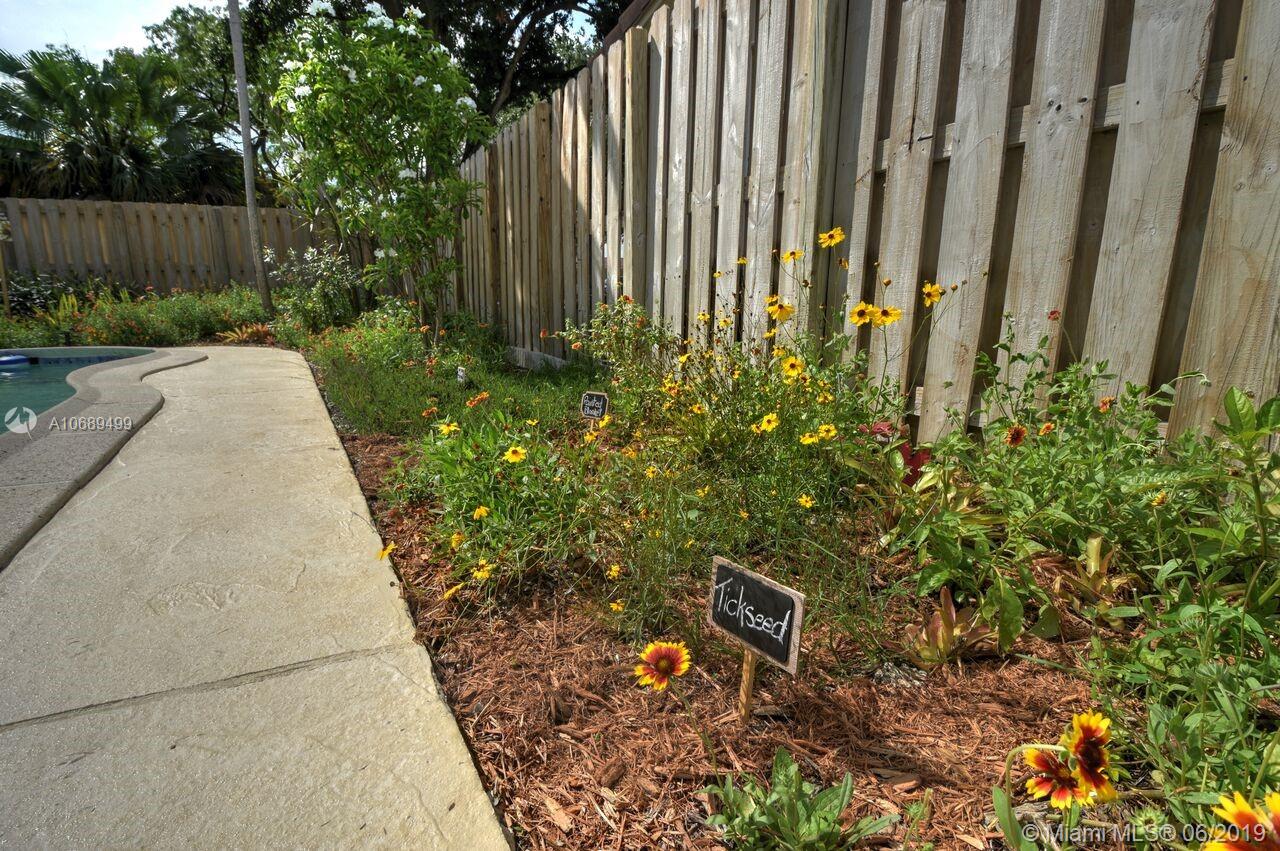 THIS TROPICAL OASIS IS WAITING FOR YOU! FROM THE MOMENT YOU ENTER THIS HOME YOU WILL BE WELCOMED BY AN OPEN CONCEPT LIVING, DINING AND FAMILY ROOM ALL LEADING TO THE SUMPTUOUS POOL/PATIO. SAVOR THE MANY VARIETIES OF WILDFLOWERS AND PLANTS, DESIGNATED BY THE ZERCY SOCIETY AS A "POLLINATOR HABITAT", THAT LINE THE NEW WOOD FENCE. ENJOY ENTERTAINING AND BBQ'S POOLSIDE. THIS HOME IS PERFECT FOR PETS AS WELL WITH AN AMPLE SIDE YARD FOR RUNNING AND PLAYING. THE LARGE, SPA-LIKE GUEST BATH WAS RECENTLY RENOVATED AND SERVES AS A CABANA BATH AS WELL. AND IF YOU MUST MUST HAVE A GARAGE TO KEEP YOUR 2 CARS THIS ONE WILL CERTAINLY PLEASE ! PLUS THERE IS ROOM FOR 4 ADDITIONAL CARS IN THE DRIVEWAY. ALL IMPACT WINDOWS AND DOORS. NEW AC AND DUCTWORK. ALL UPDATED ELECTRIC.