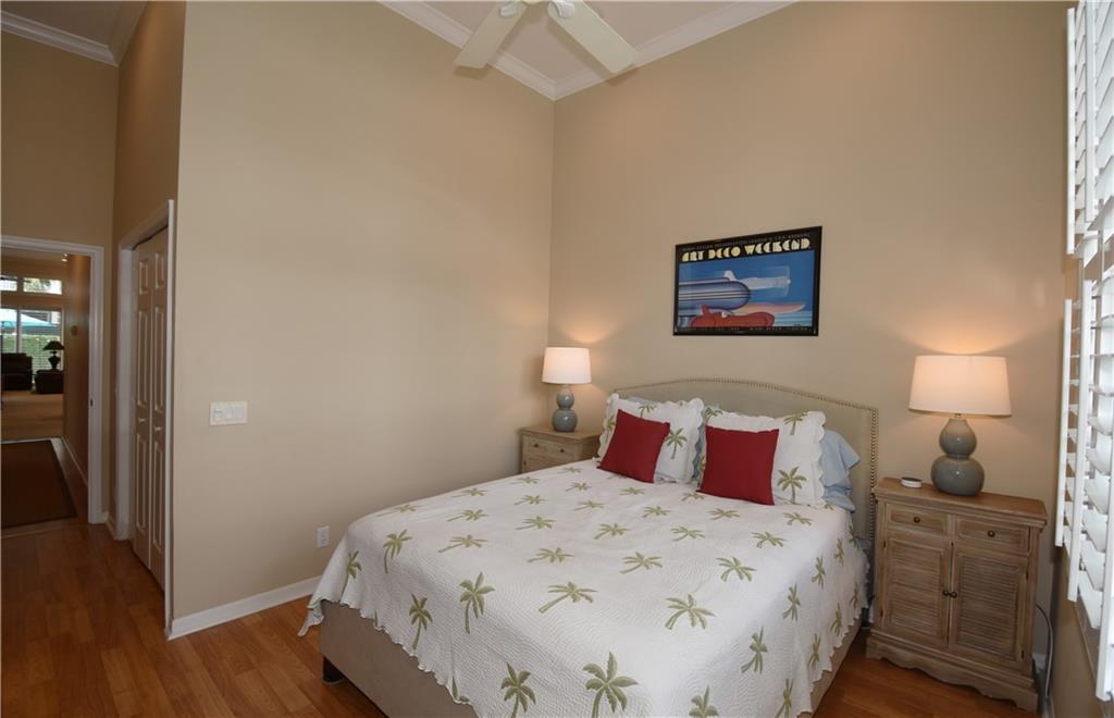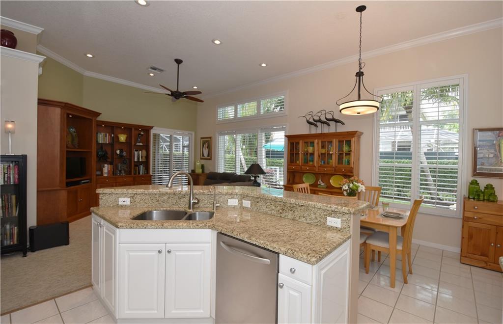 FOUR-BEDROOMS 2-FULL BATHS, ONE-STORY HOME WITH SCREEN ENCLOSED TIKI BAR PATIO, TWO-CAR GARAGE. EAGLE LANDING BALMORAL MODEL DECORATED WITH FRANK LLOYD WRIGHT STYLE APPOINTMENTS, THIS HOME HAS ONE OF THE BEST PRIVATE FENCED YARDS IN THE SUBDIVISION. A SPLIT BEDROOM PLAN, WITH 2-BEDROOMS AT ONE END OF THE HOME ANOTHER BEDROOM IS SET UP AS AN OFFICE. THE HUGE MASTER BEDROOM WITH 2-WALK-IN CLOSETS & CUSTOM MASTER BATH IS AT THE OTHER END OF THE HOUSE, EAT-IN KITCHEN, FORMAL LIVING ROOM & FORMAL DINING ROOM, VERY LARGE FAMILY ROOM, KITCHEN COMES COMPLETE WITH GRANITE COUNTER TOPS & STAINLESS STEEL TOP OF THE LINE APPLIANCES, OTHER UPGRADES INCLUDE, CUSTOM BUILT-INS, LUSH LANDSCAPING, TILE, CARPET & WOOD FLOORS, GENERATOR READY ELECTRICAL PANEL, ACCORDION HURRICANE SHUTTERS & PULL-OUT SHELVING.
