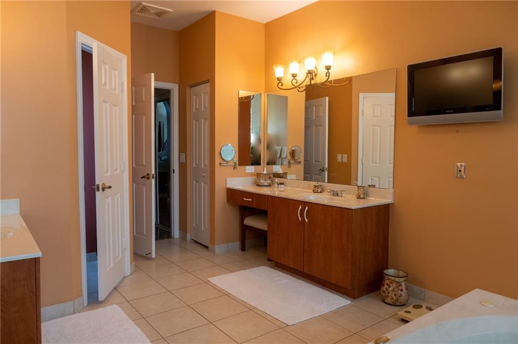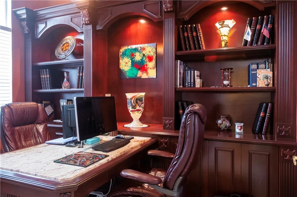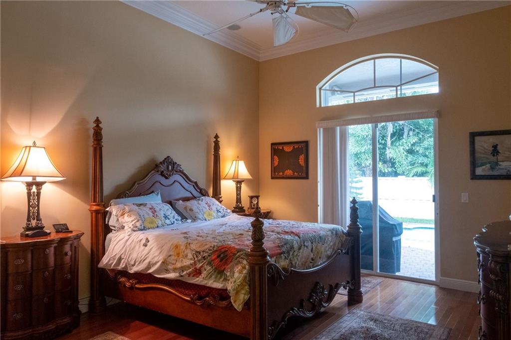 Absolutely gorgeous and exquisitely upgraded split plan Monterey in prestigious Pembroke Falls. This 4 bedroom, 3 bath plus den boasts magnificent custom built-in entertainment center in family room. Den with custom glass door and custom built office. Theater room, speakers throughout. Features Italian porcelain tile with custom designs, hardwood floors in the bedrooms, custom closets throughout, crown molding.Beautiful private yard to entertain with oversized pool. Accordion shutters on all windows. Stainless steel appliances, upgraded kitchen. Fiber to the home,internet TV,alarm included in HOA. Heated Resort pool, Gym, Tennis, Basketball, Party Room with many HOA activities. A+ schools. Close to shopping and access to major highways.