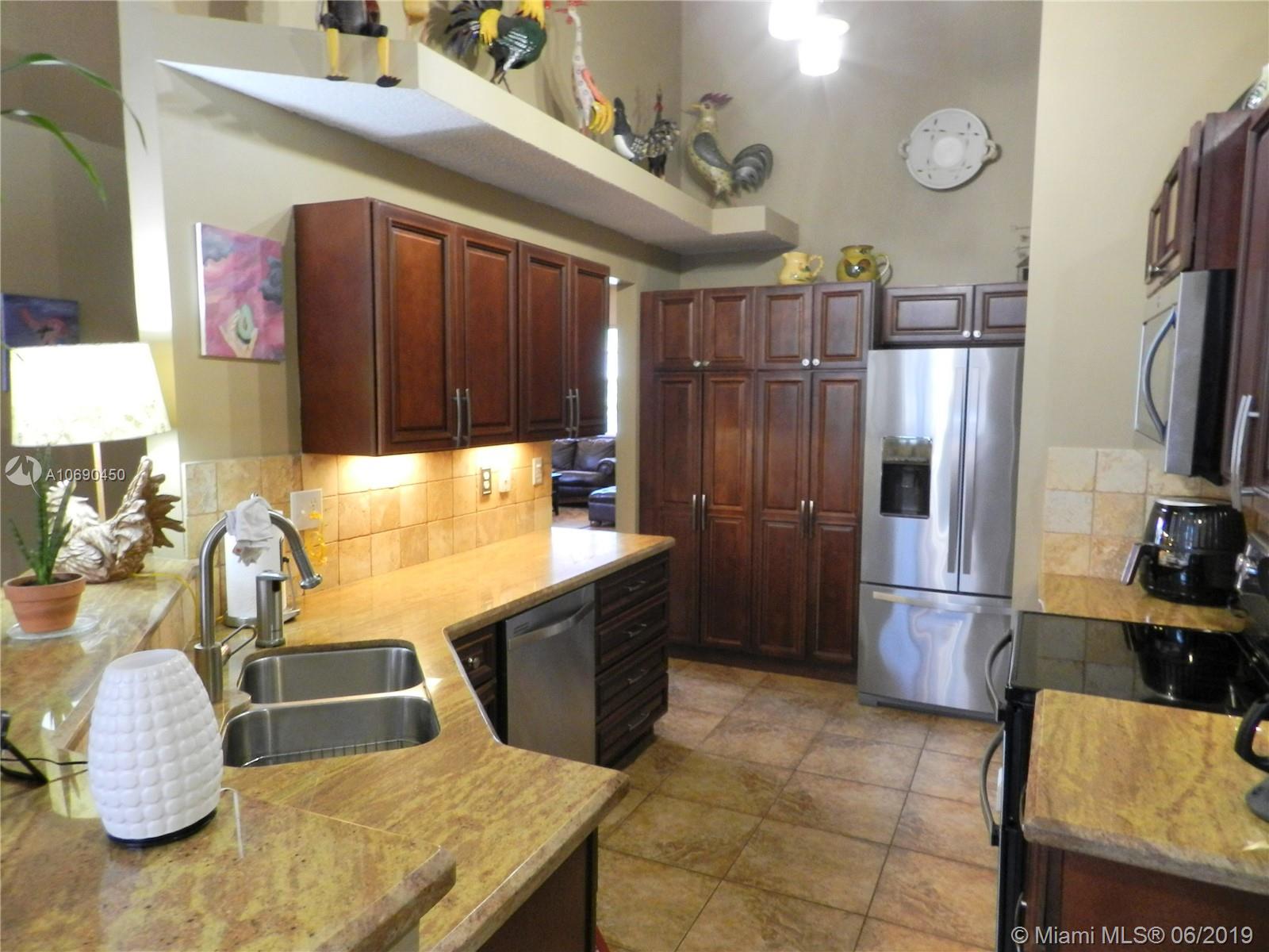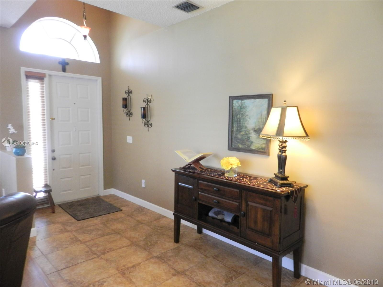 This is the one! Warm! Inviting! Impeccably clean! And COMPLETELY REMODELED!!! *Tile and wood laminate flooring throughout (no carpeting) *Stunning solid wood kitchen cabinets with granite counters *Under cabinet accent lighting *Huge built-in kitchen pantry *Kitchen open to family room *Snack bar *Vaulted ceilings throughout *Sophisticated European master bathroom remodel with dual sinks, huge shower with dual showerheads, and bidet *2nd bathroom remodeled *AC replaced December 2018 *Exterior repainted 2019 *Fenced yard *Accordian shutters *Interior laundry room *Split bedroom plan *Guard gated community in central Pembroke Pines location - close to highways, shopping, parks, and schools