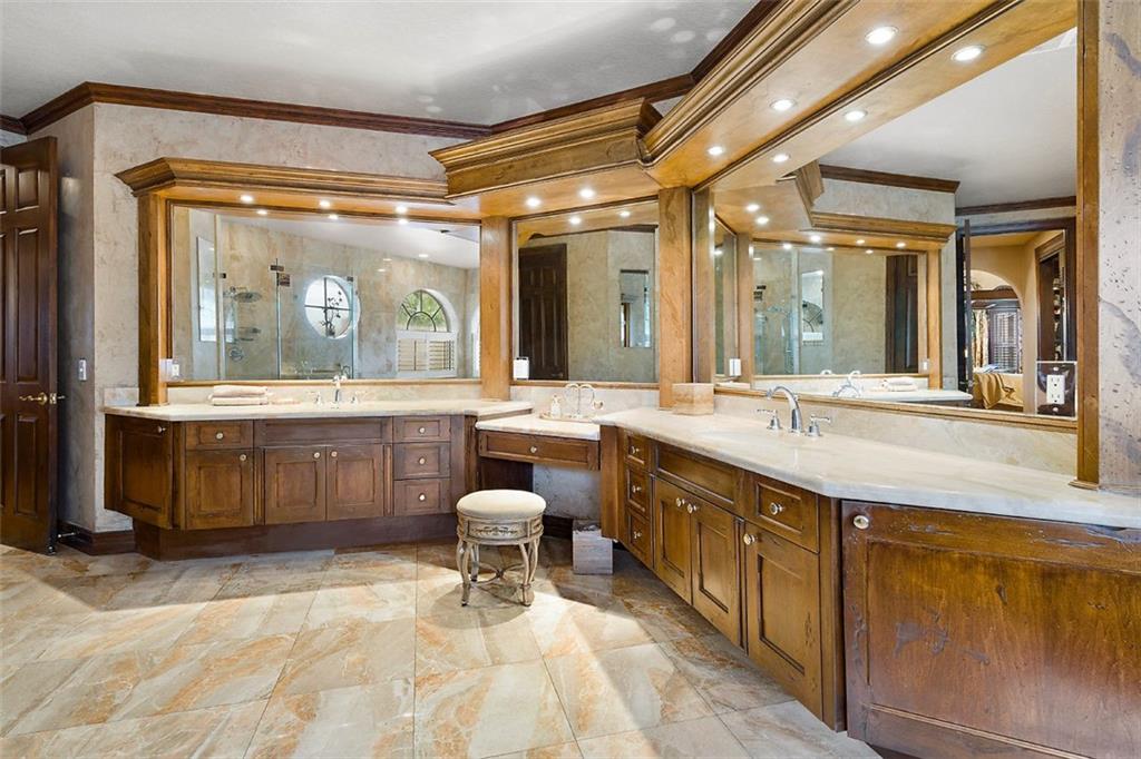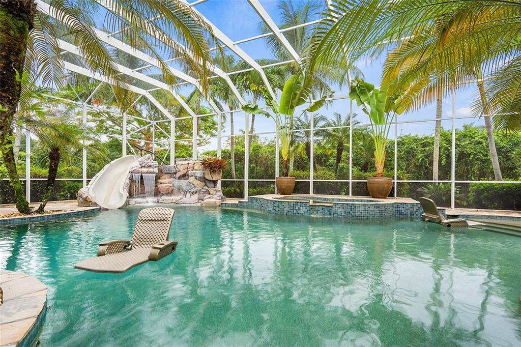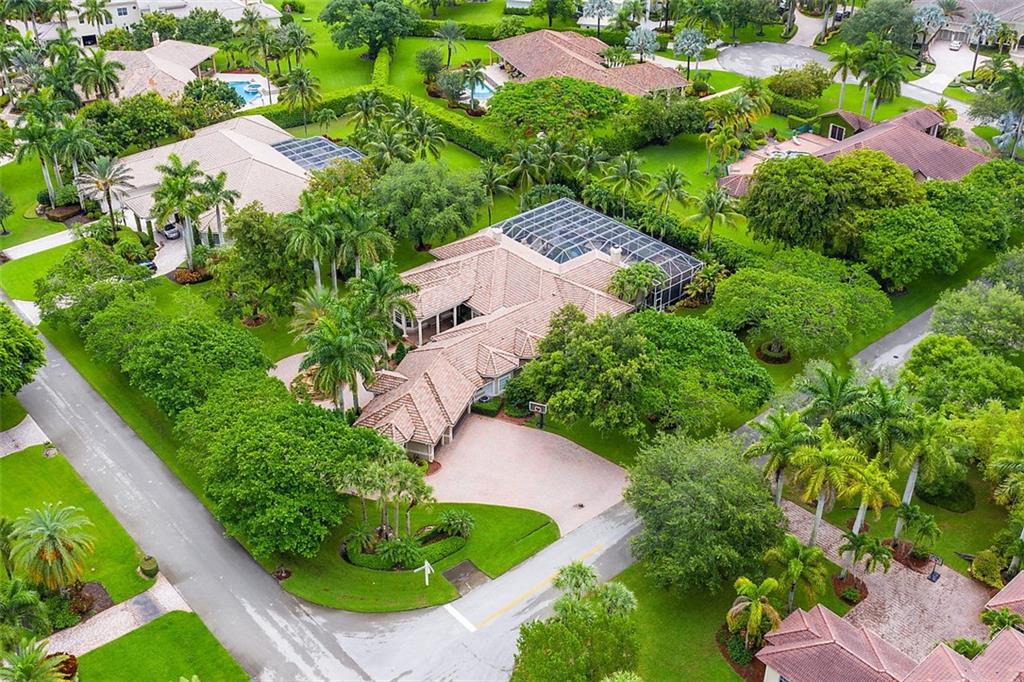 Nestled in one of south Florida's most sought after communities & on a magnificent corner lot is this beautiful estate! Upon entry via dramatic double glass doors, grand living areas are revealed! Floor to ceiling glass doors & windows, soaring ceilings, marble floors & an indoor/outdoor living design! Large island kitchen with beautiful cabinetry & clear glass subzero refrigerator! Large family room with fireplace! Beautifully appointed master suite with sitting area & fireplace, Jaw dropping closets with cabinetry, marble top vanities & shoe carousel! Splendid master bath with water closets, his & her vanity, spa tub & large shower. Children's wing with bonus room! Expansive screened porch with a huge tropical pool, spa, waterfalls, water features, slide & tiki bar! Perfectly maintained!
