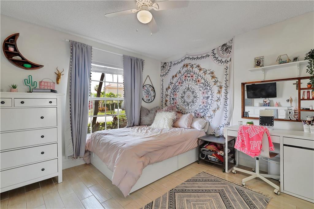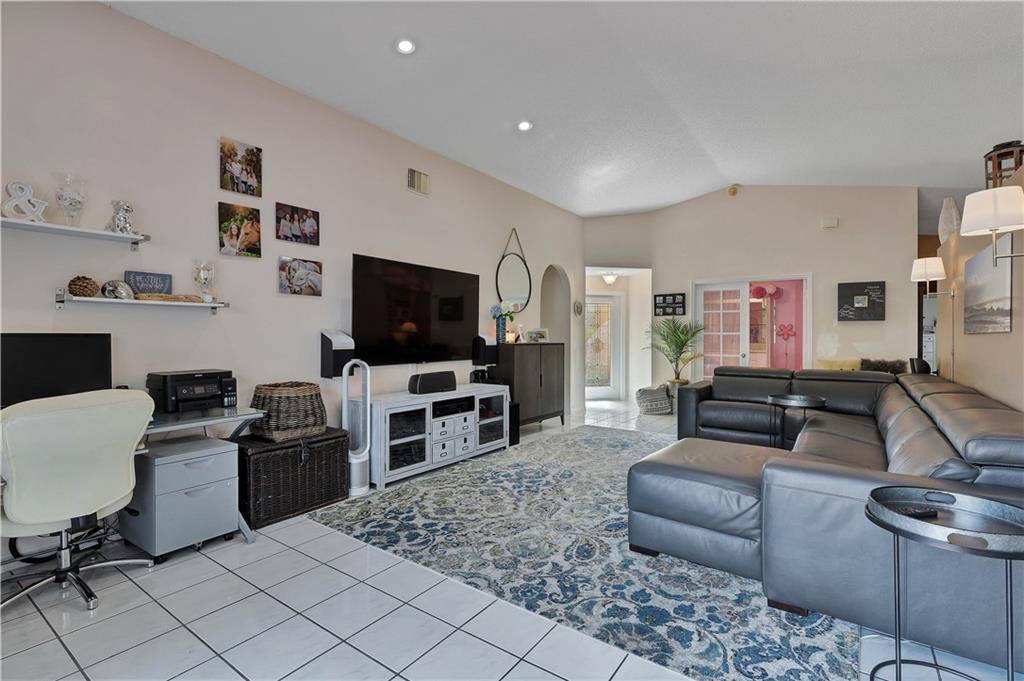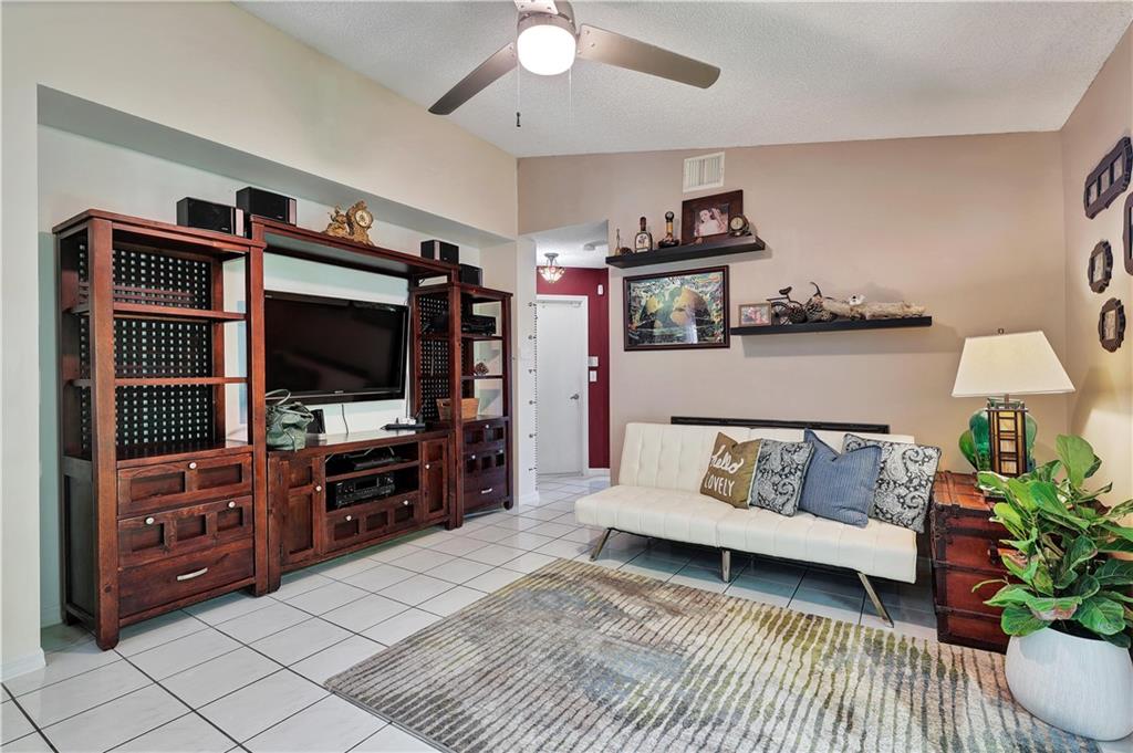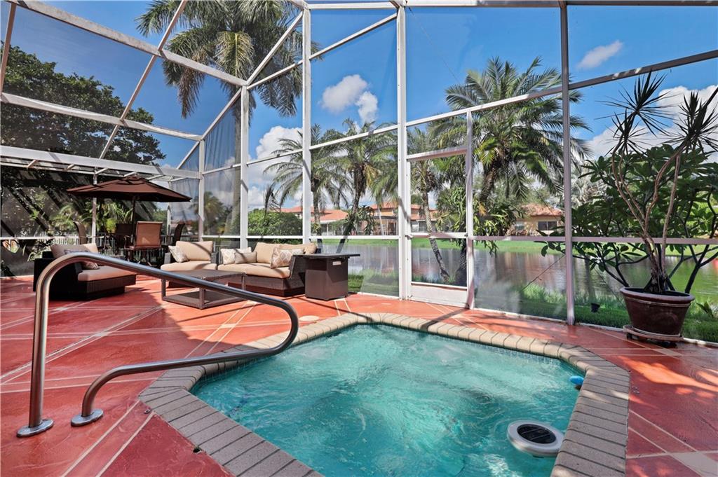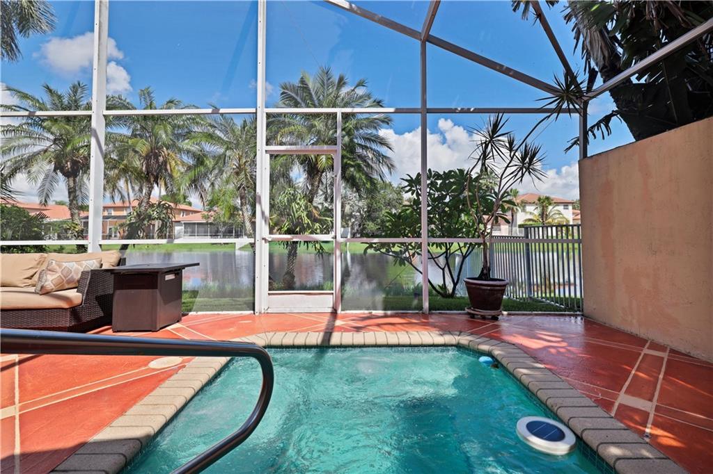 This meticulously maintained home offers 3 bedrooms, 2 bathrooms and sits on a lakefront lot. Walk through the front door and you are greeted with a great open concept and vaulted ceilings. The updated kitchen is equipped with white cabinets and granite counter tops / backsplash. Bathrooms have also been updated. This Abbey Road model is great for entertaining guests. The outdoor oasis features an oversized screened patio with a built in hot tub, gorgeous landscaping and exterior lighting. In-ground sprinkler system is lake fed. New A/C system. There are stamped concrete pavers on the driveway, walkway and back patio. Internet & extended cable w/HBO is included in the HOA. Conveniently located to shops and restaurants & community pool. This is a must see home you will not want to miss!