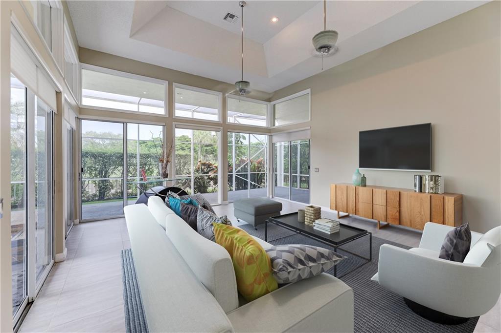 This incredible home features floor to ceiling windows, vaulted ceilings, enclosed lanai & an in ground pool. When the sellers walked into this home for the 1st time it was the high ceilings & the view of the heated pool that made them instantly know that this was home & you are sure to feel the same. In addition to the open spaces this home offers 2 covered screened in patios. One of which is the master's private outdoor space. The home is equipped w/a water filtration system w/kitchen installed instahot water system.The kitchen is also equipped w/top of the line appliances w/the induction stove top being the crown jewel. If you don't like golf then this Club is ideal, yet, if you would enjoy a social membership instead this is one of the only homes available with that option. Lucky You!