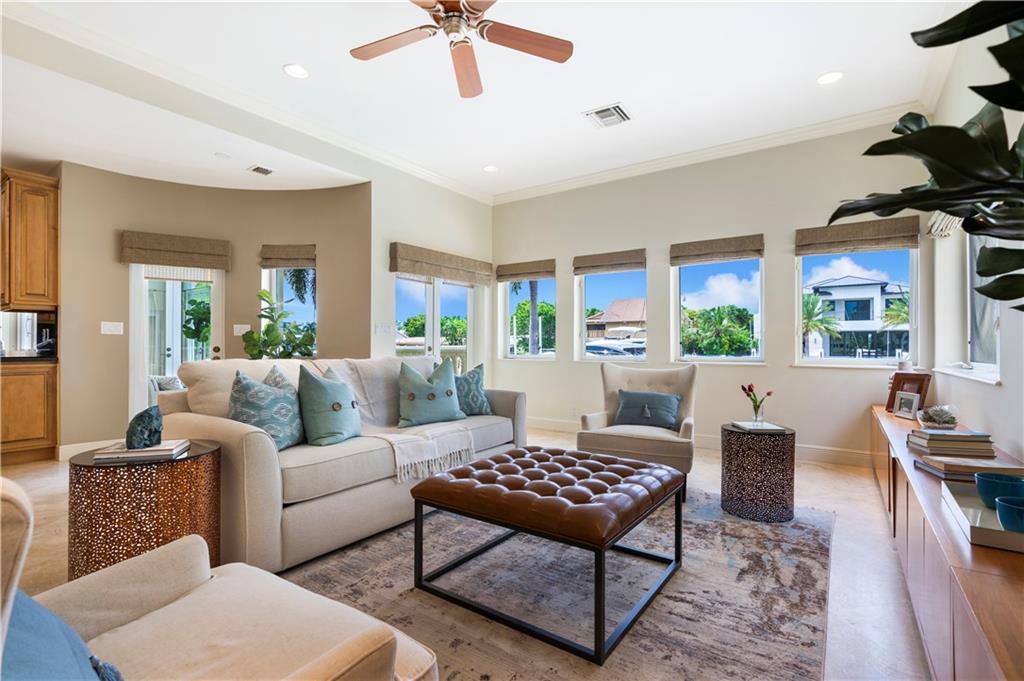 MAJOR PRICE REDUCTION! 80’ waterfront home boater’s and entertainer's paradise with open views of the intracoastal a few homes away from the point. 5 BR, 4.5 BA including en suite 1st floor BR w/separate access perfect for guest, nanny, in-laws or private office. Spacious 1st floor overlooks marble terrace and pool with 80' of dock just minutes to the inlet and ocean access. Huge master suite w/sitting room, balcony, custom closets. Dual staircase leads to separate wing of bedrooms upstairs. Marble floors on first floor which is bright and sunny. Impact windows, high ceilings, ceiling fans throughout. High end kitchen appliances. Perfectly maintained home. Close to downtown, restaurants, shopping, quick drive to FLL airport, a block from Lauderdale Yacht Club. Bring all reasonable offers!