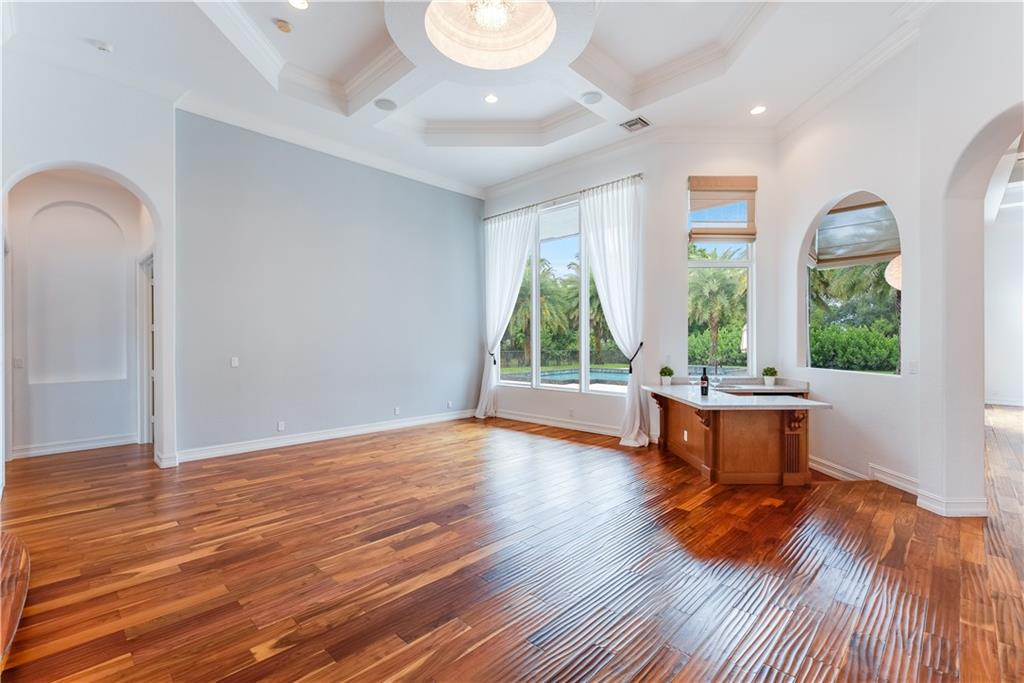 Repriced for a quick sale! Be inspired everyday in this SPECTACULAR 5 Br/5.5 Ba home with an office and bonus room!! This estate is located within an exclusive gated community with only 42 homes! The open living areas have stunning teak wood flooring & soaring coffered or tray ceilings! The home offers a living room with wet bar, dining room, open gourmet kitchen, great room & spacious master with a spa inspired en suite bath. Huge backyard has a resort style custom tiled pool, kid’s playground area, and screened-in patio. Additional features include: impact glass windows/doors, 20 kilo generator, 3 A/C units (2 w/ air purifiers), laundry room with sink, 3 car garage, central vacuum & LED landscape lighting. Walk to U-Pick farm, close to Weston, fabulous restaurants & the Sawgrass Mall.