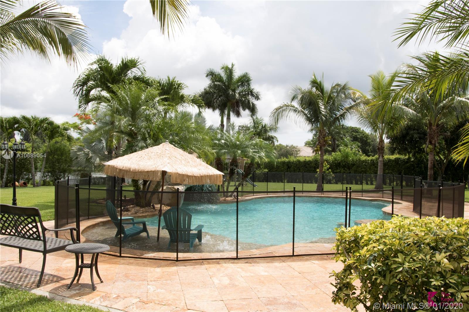 Come to relax looking over this beautiful backyard, an unique experience, allow yourself to feel like home! This is the only lake view property available for sale in Saddlebrook Community. Plus this over 35K sqft lot, outdoor kitchen, fruit tree, salt pool and spa. This one story house w/ 6 beds+a den, 1 extra suit (@ 2nd floor) for guests with a private entrance, master bed w/ sitting room/office w/overlooking view to the lake/pool and spacious bathroom, kitchen with maple cabinets, double oven, cooking island and butler/wine station, 3 cars garage plus long driveway for extra parking, garage cabinets will stay , pool table may stay, NO Carpet, high ceiling throughout the house. GENERATOR professionally installed included