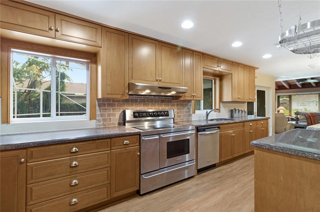 Beautiful Three Bedroom Pool Home in desirable Palm Aire Village! As soon as you walk through the door, the home boasts vaulted ceilings, wide open layout, complete with spacious living & family rooms. Stunning open updated kitchen & custom cabinets, with Island! Three large bedrooms & Custom Closets!! Master Bedroom overlooks pool & has plenty of closet space & custom shoe rack! Large Garage with plenty of room for storage! Enclosed Screened Pool perfect for entertaining, along with side yard, has room for an RV or Boat! Great neighborhood minutes to restaurants, shopping, schools and major highways! Won't Last!
