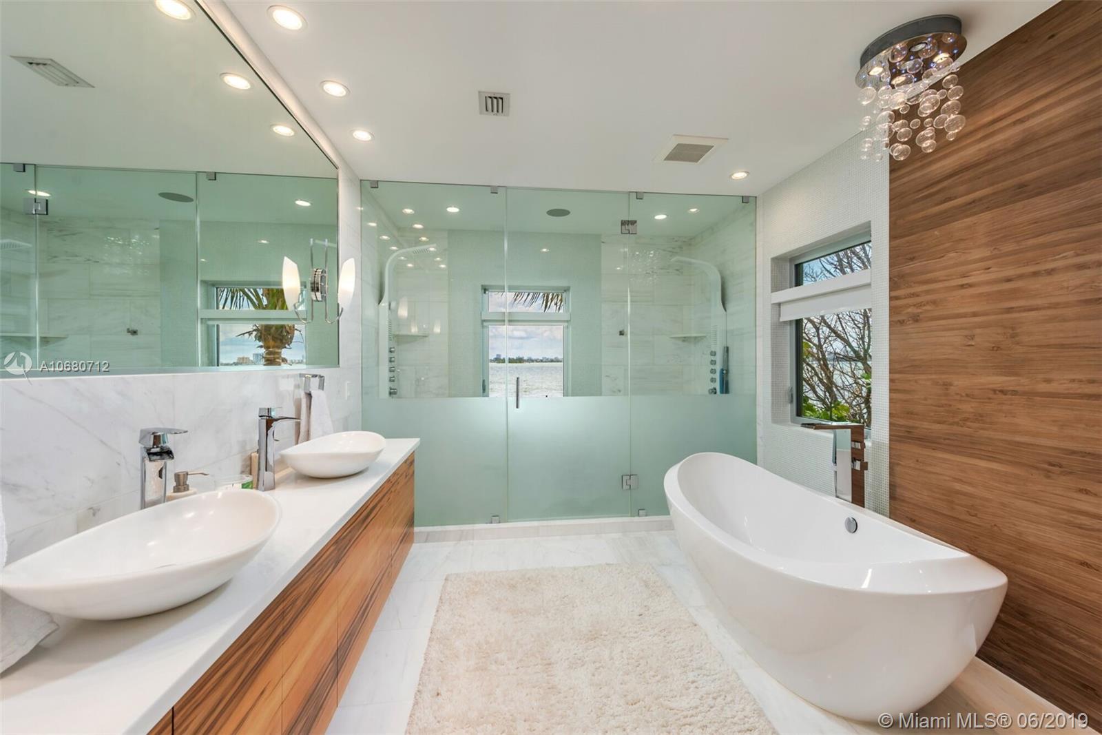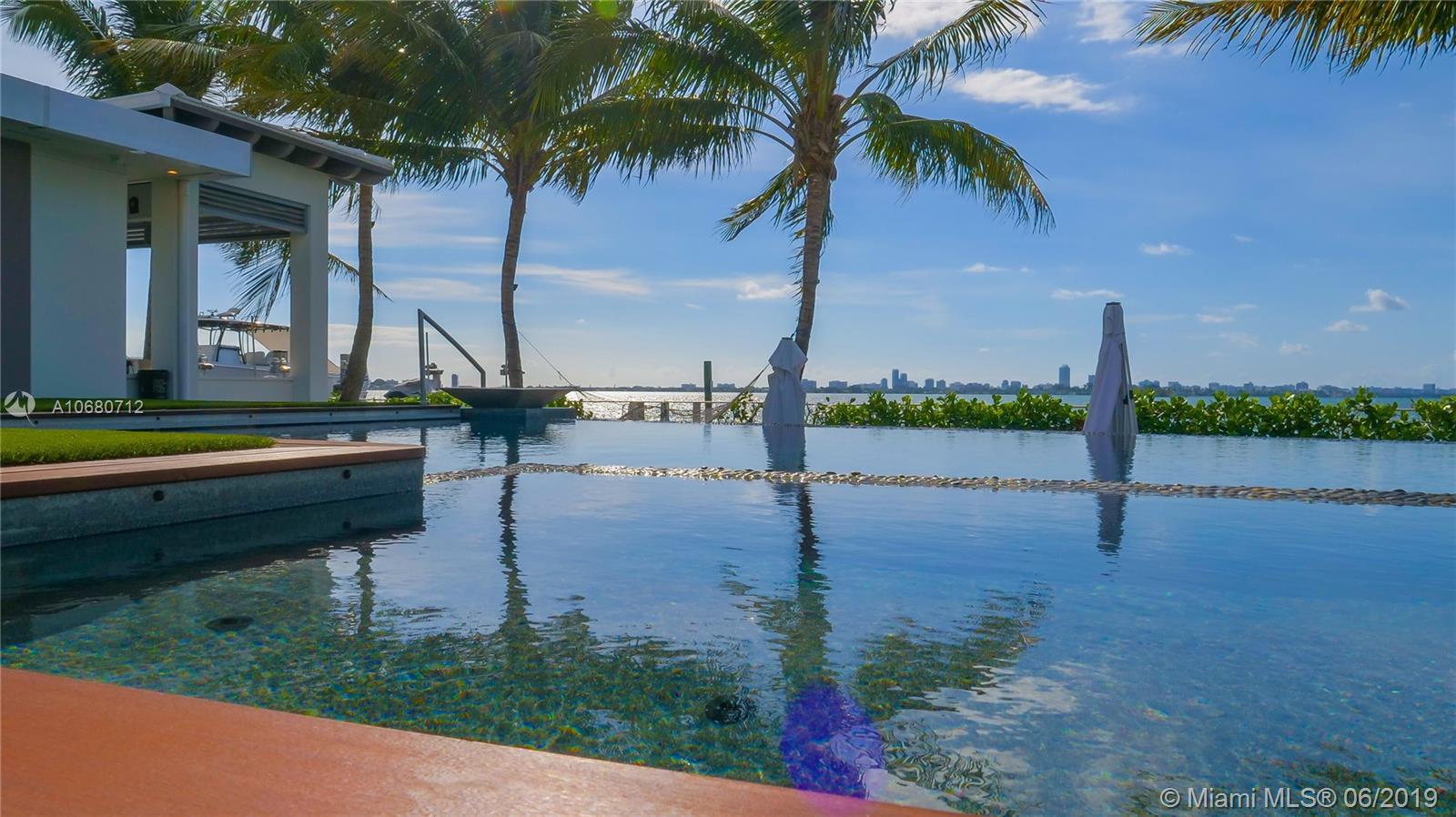 Amazing Water Front One Story Home with Unobstructed Wide Bay Panorama Views of Indian Creek Island and the Beautiful Miami Downtown Skyline. House has been fully remodeled. It features: 4 Bed/6 Baths, New Modern custom kitchen with Bosch appliances (2018) & wet bar. Roof-2014. Impact windows/doors, telescoping doors going out to pool. Salt system infinity pool 35’x15’ + lower pool 30’x7’, Jandi pool equipment. Master suite with very large custom made walk-in closet & spa-like bathroom. All bedrooms have full baths. Two A/C Units. Nutron light system. Generator (Guardian 48KW – Natural Gas). 170 ft of water-frontage on 15,269 SF Lot in Miami Shores. Private Dock with 40’ fingerpier dock with 20K lb boatlift plus 21’ fingerpier dock with 7K lb boatlift, can accommodate up to 100’ ft boat