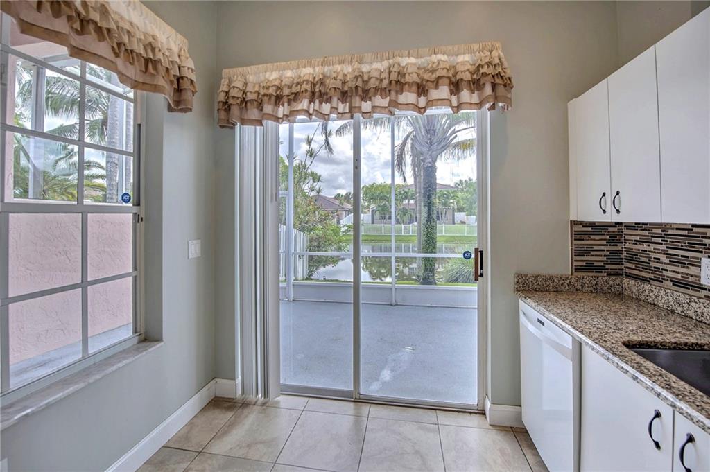 Beautiful 3 bedroom 2 bath, 2 car garage, lakefront home in prestigious Sawgrass Plantation. Home boasts granite kitchen counter tops with beautiful decorative tile back splash. Ceramic tile throughout living areas and bamboo wood in all three bedrooms, volume ceilings in living areas make this home light and bright. Master suite, kitchen and family room all overlook beautiful lake vistas. Grand dome screen patio is great for BBQ's or just relaxing outdoors and enjoying the water view. Lushly landscaped front and back. Central location, minutes to I-595, I-75, Sawgrass Mills Mall, BB&T Center, Restaurants and so much more! No Association Approval, can close quickly!