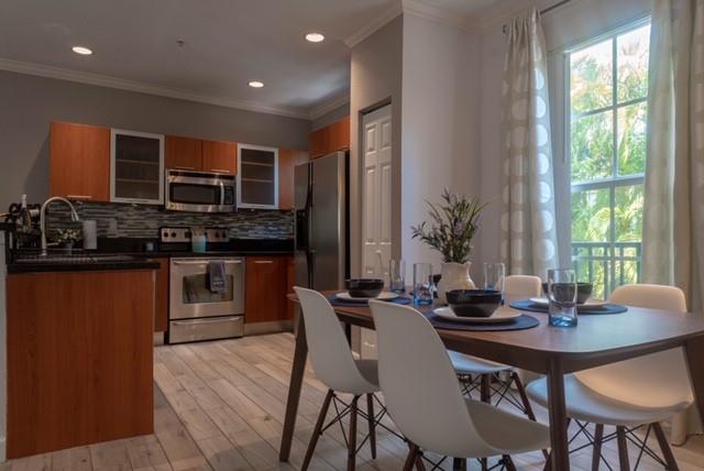 Tastefully updated Tri-Level, two full car garage, split master two bedroom, two on suite bath, & one half bath townhouse in a private 62 unit complex conveniently located just East of I-95 on Marina Mile. All furniture within unit is negotiable. The two car garage offers lots of storage, full size laundry machines, and enclosed back patio perfect for entertaining. Private and secure gated community with perfect location near the beach, downtown, airport, and all major highways. All updated stainless steel appliances and new wood tile flooring throughout the second floor. Bedrooms are located on the 3rd floor. Master offers a stand up shower and extra large walk in closet. Second bedroom has on suite bath with tub and large closet. Pet friendly neighborhood and easy application process!