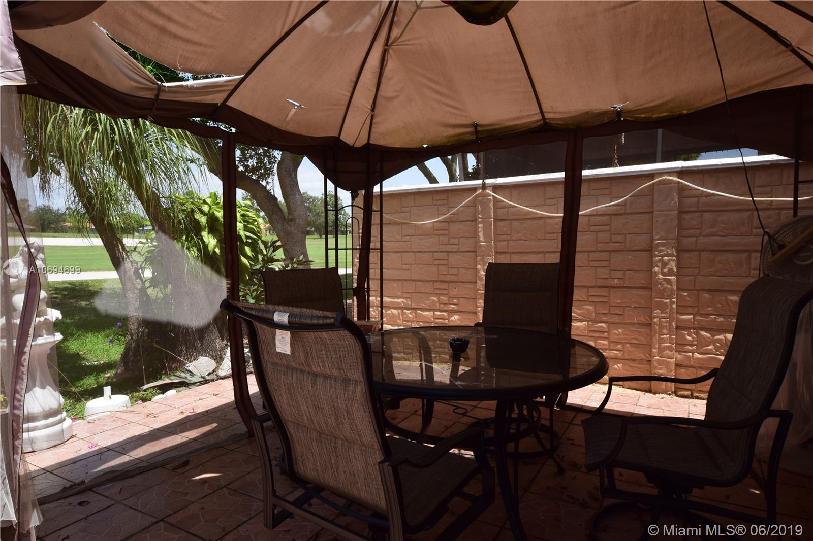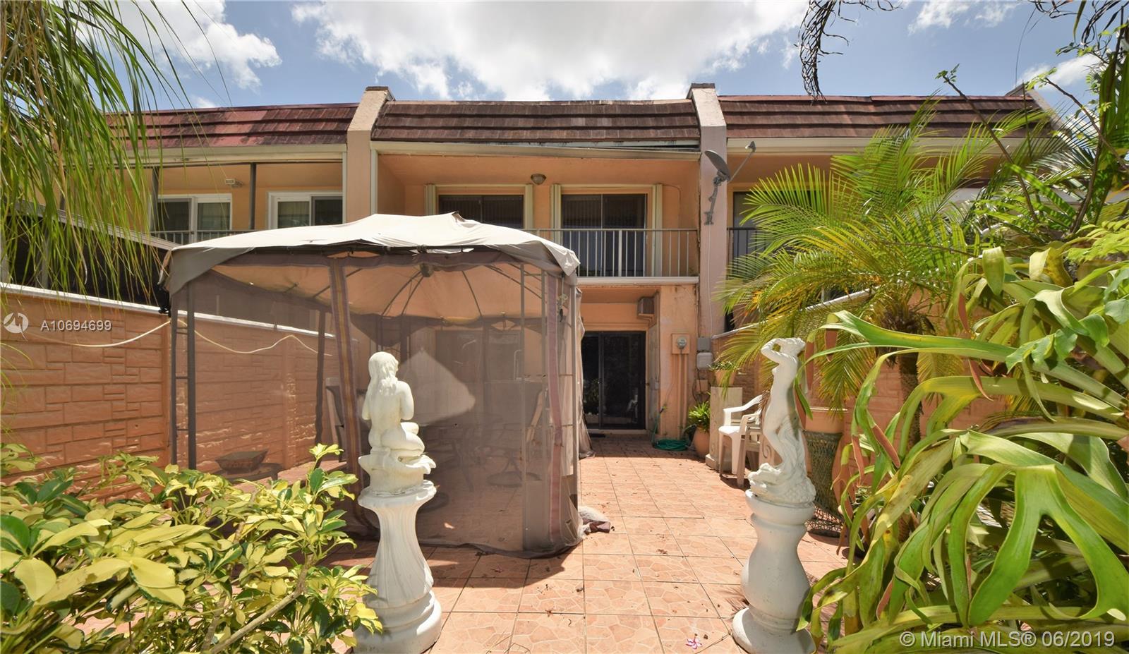 Fantastic 2-2.5, garage townhouse with a golf view in Country Club of Miami and low HOA fee of $80/month! This home offers a partially renovated kitchen with granite counters, impact sliding glass doors in 1st floor, accordian shutters for the glass doors on 2nd floor, electric stair mover(included with sale of the home), atrium, 2 assigned parking spaces, plenty of storage space, tiled patio with bar(patio furniture and gazebo w/canopy included with sale of the home), large master suite with 2 closets and open balcony with golf view,spacious guest bedroom has 2 closets and a private bathroom.** Furniture, wall unit, large mirror and statues in the patio are negotiable.** Centrally located with great schools nearby, restaurants, shopping and highways. Seller motivated!!!