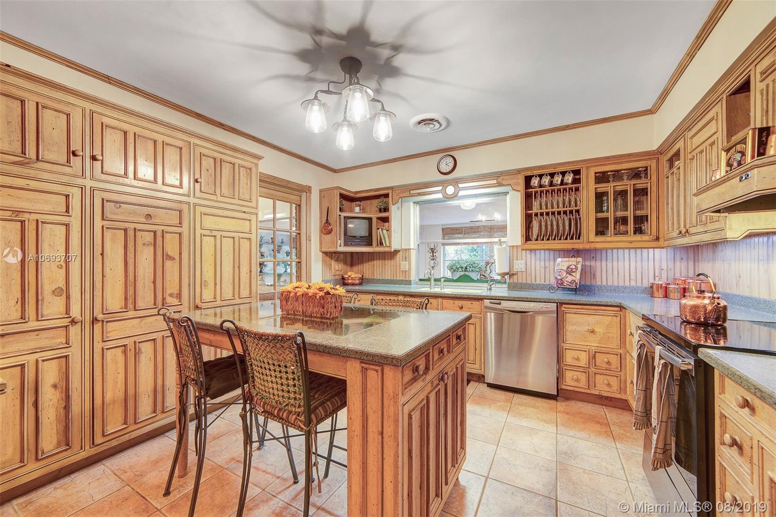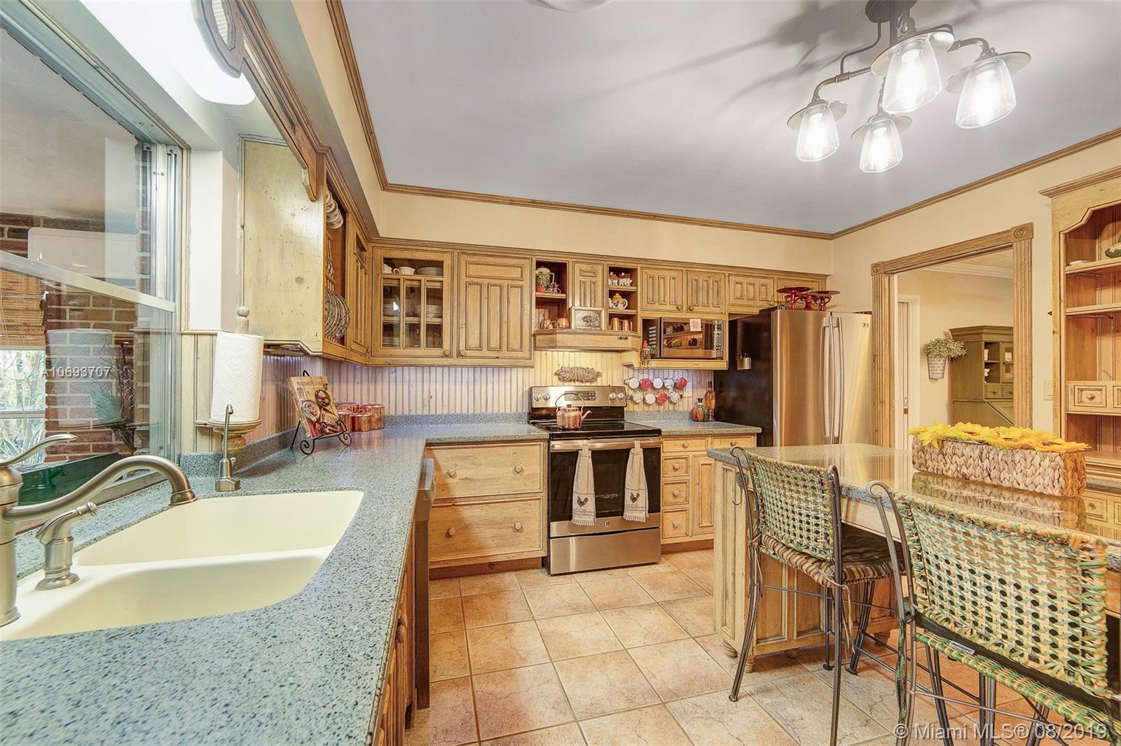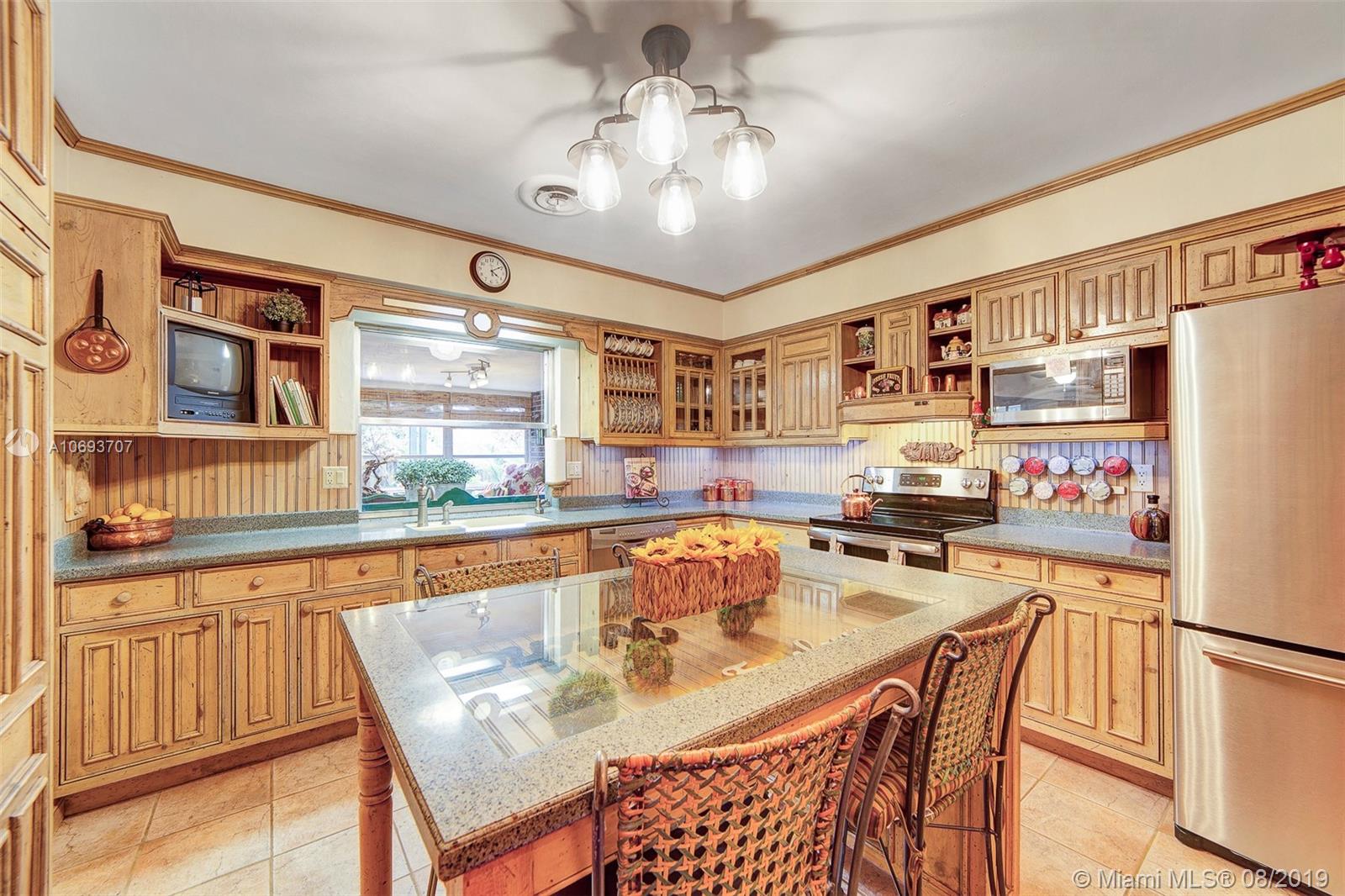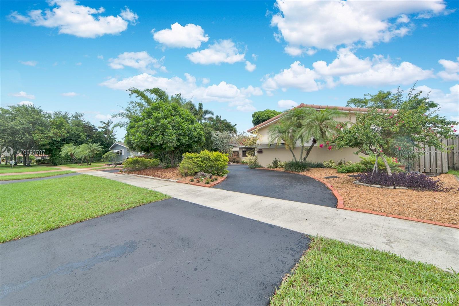 Beautiful, spacious and updated - this turnkey, one-of-a-kind home in Hollywood Hills has it all. The remodeled eat-in kitchen has solid wood Farmhouse style cabinets, SS appliances and opens into a large family room, designed for entertaining. Split bedroom plan with 3 bedrooms + office + 2 remodeled bathrooms. 2 car garage + large circular driveway. Lovely curb appeal. Master suite has walk-in closet, bathroom + office. The fenced backyard is a private tropical retreat with large patio + pergola, great for relaxing or parties. Many custom built-in details throughout this home. Lots of storage. Separate laundry room. Termite warranty. Located close to 95 & Turnpike, beach, airport, Hard Rock Casino, hospital, walking distance to schools and places of worship.