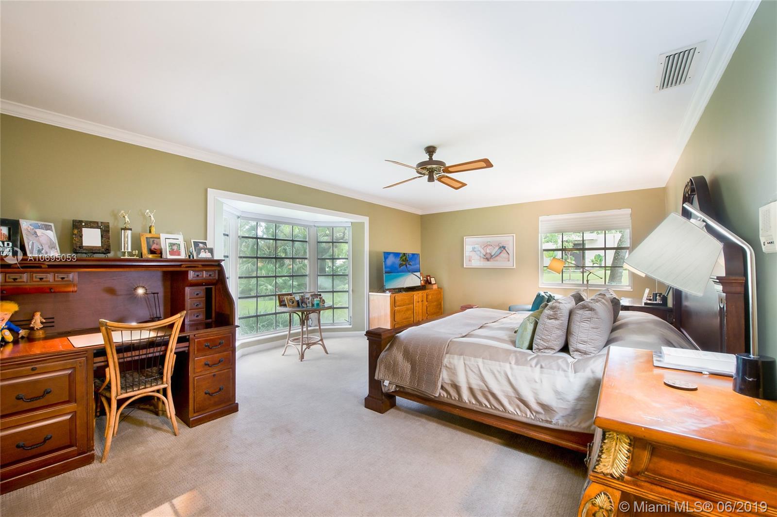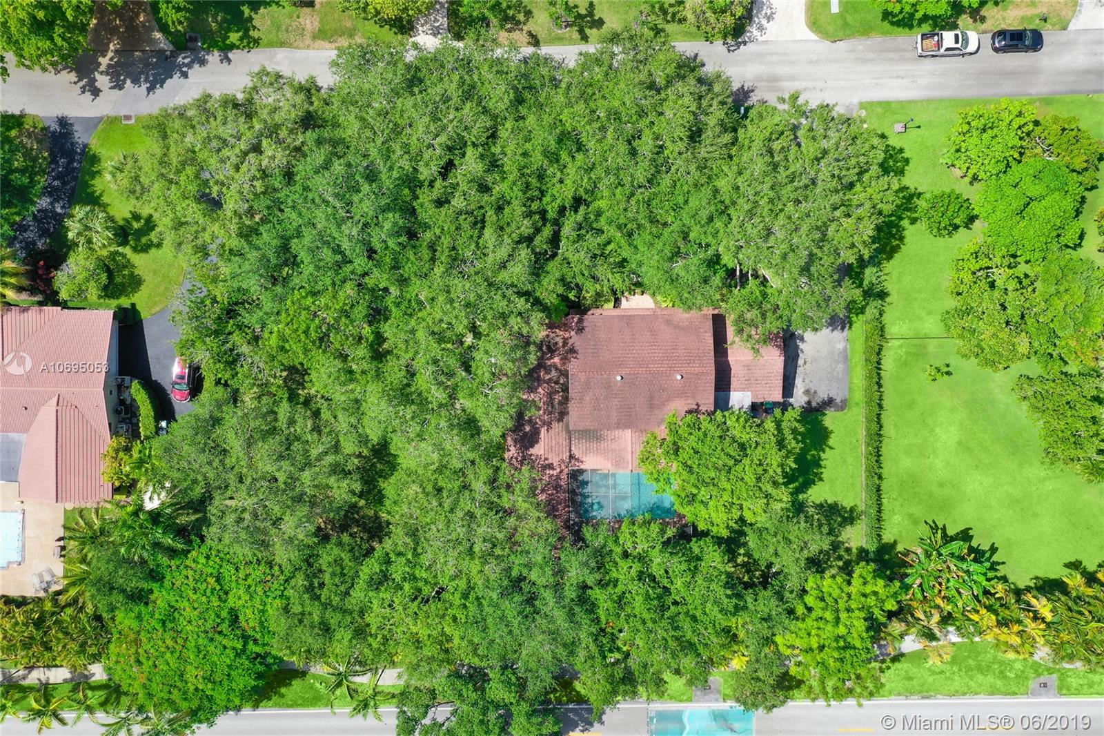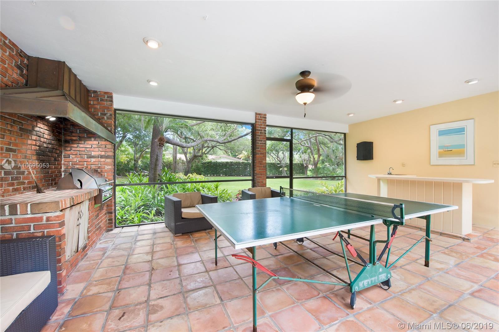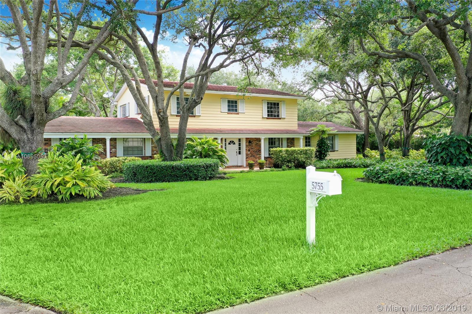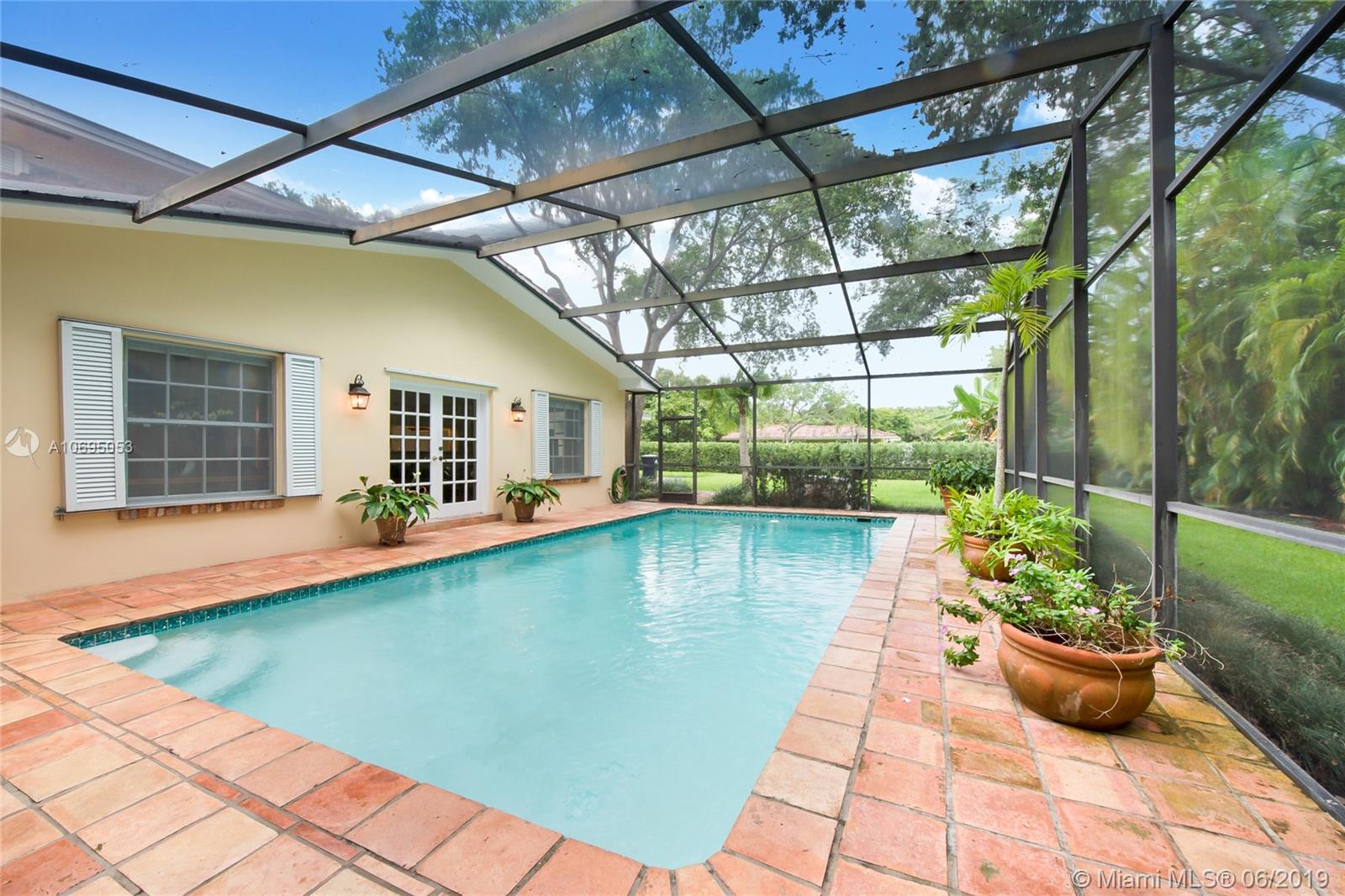 Located in Pinecrest's family-friendly walled community, The Elysium. This 6 bed / 4 full, 1 half bath residence is nestled on a lush manicured substantial 30,993 sf lot. This 2-story charming home is comprised of 3,598 sf and includes formal living and dining room, kitchen with breakfast nook, and family room overlooking the screened patio complete with covered terrace, pool, built-in barbecue and wet bar. Master Suite is located on the first floor and features a large walk-in closet, roman tub and separate shower. Double Jack and Jill floor plan upstairs. Laundry room off of the 2 car garage. Ideal for a developer interested in an opportunity in a great neighborhood. Dining Room chandelier excluded from sale. Minutes from A+ rated schools, shops and restaurants.