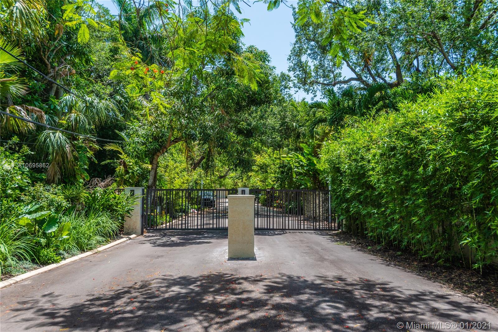 Spectacular High & Dry half acre tropical paradise in Ye Little Wood, South Coconut Grove’s quintessential, private, gated enclave of 31 homes. Beautiful sited home has excellent floor plan with solid hardwd floors, open beamed ceilings, walls of windows, new roof and lots of natural light throughout. Lovely covered veranda and elegant center foyer entry, wide open formal living & family rooms, fireplace, formal dining room, butler’s pantry and large eat-in kitchen. Huge covered terrace with terrazzo patio and summer kitchen provide living al fresco. Wide hallways access the Master BR suite, bath, dressing area, large closets +2 additional bedrooms & bath. 4th BR +separate bath are located off the kitchen, over-sized 2 car garage and utility areas. Plenty of room for pool and expansion.