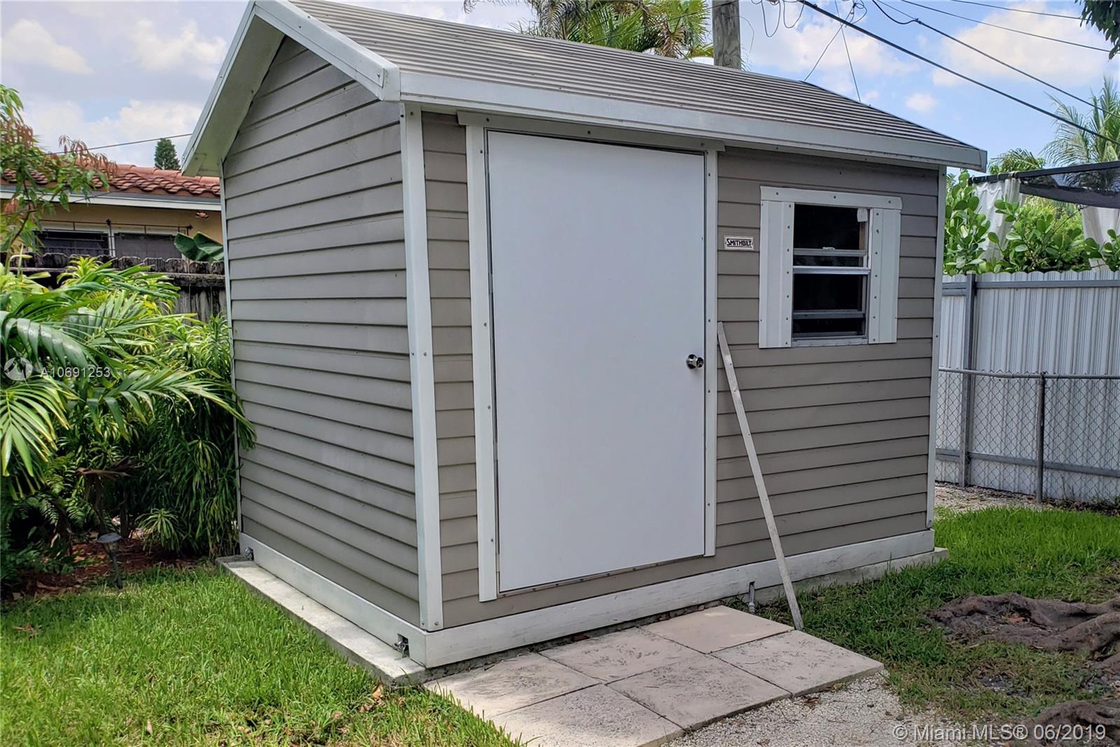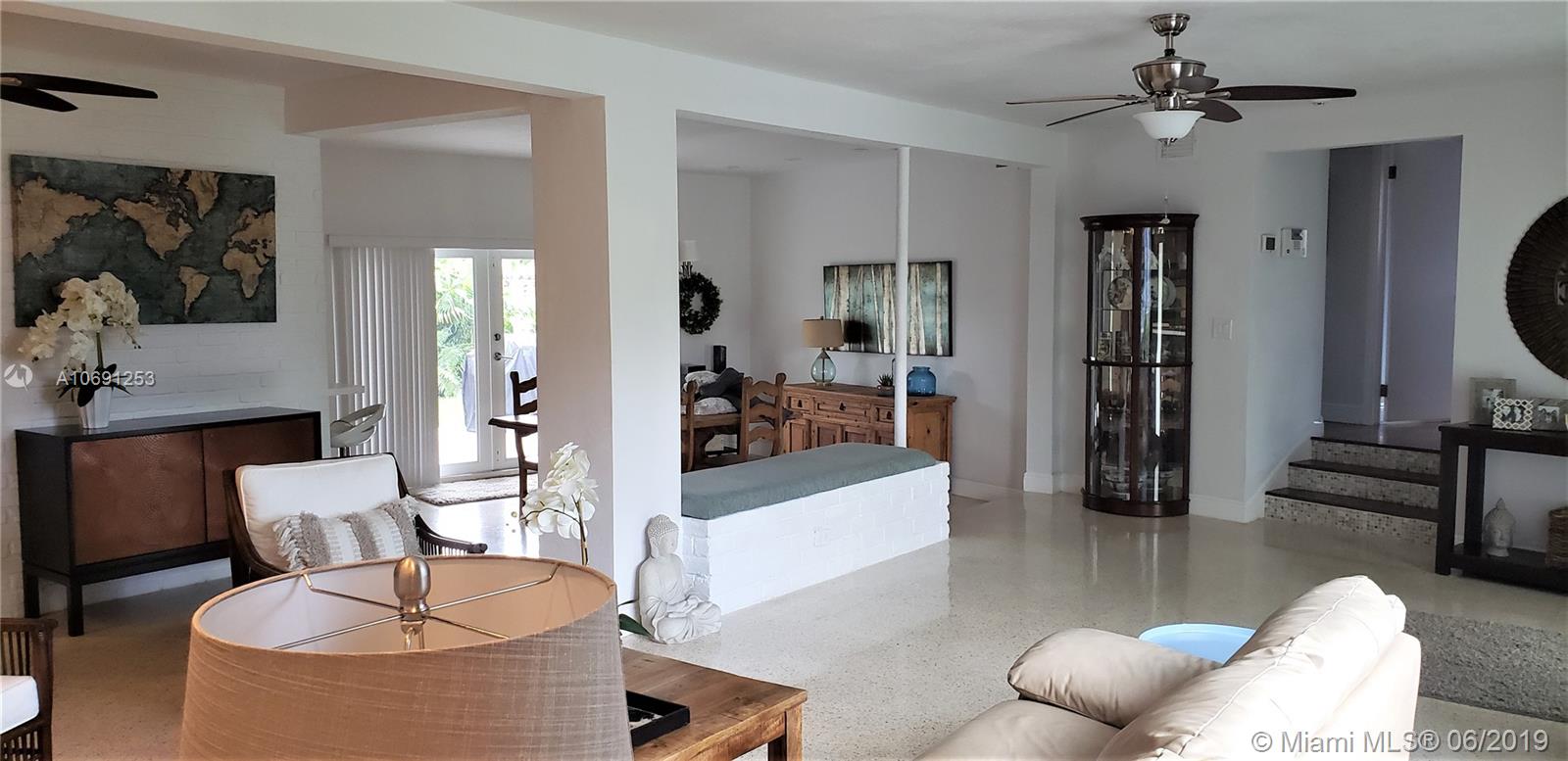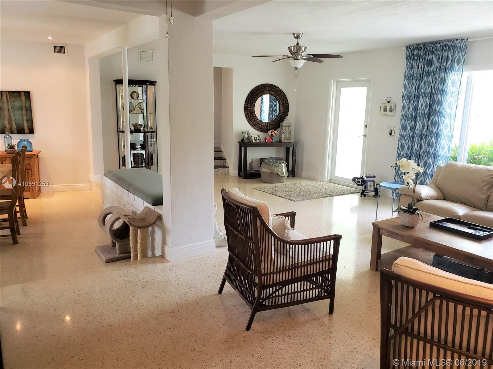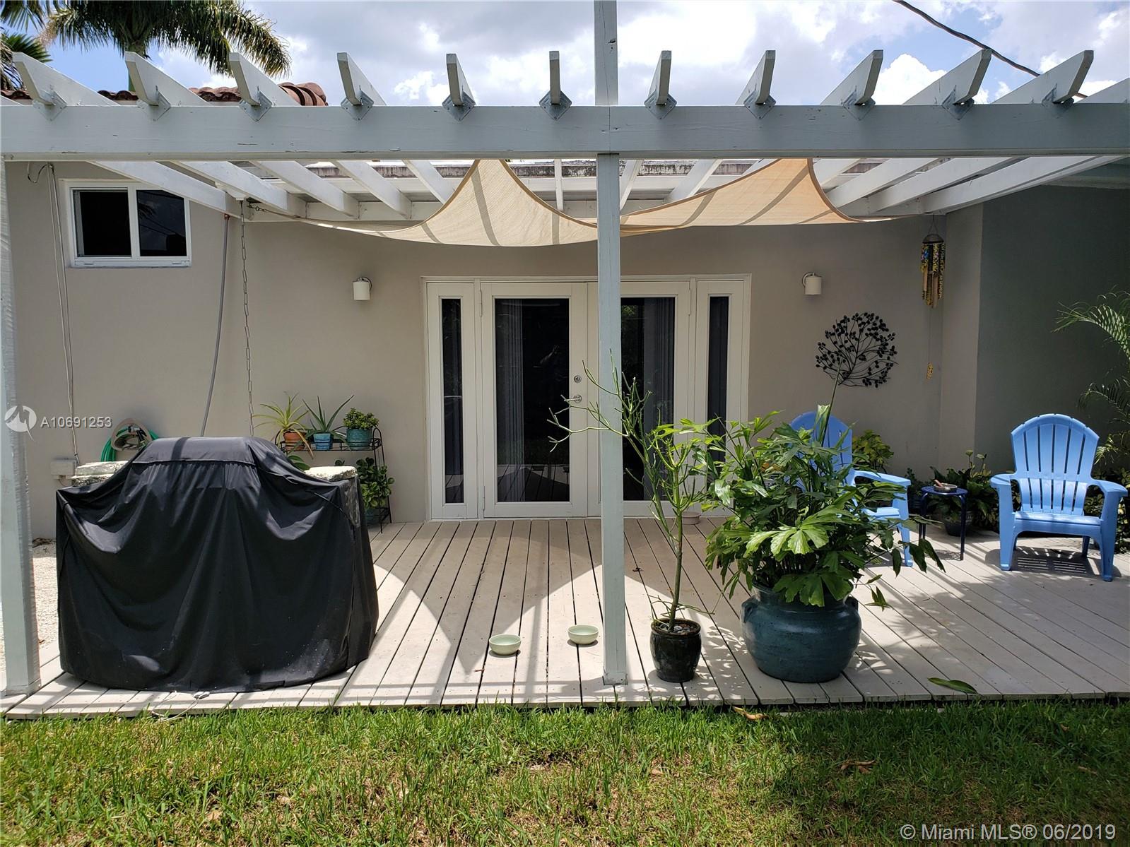 Charming Mid-Century 3/2 with beautiful garden view and wonderful landscaping. Bright and Spacious Living area with updated kitchen, stainless steel appliances, and Quartz counter-tops. Terrazzo and oak wood floors throughout Hurricane impact doors and windows CAT 5 rated. French doors lead to the back yard with wood deck and canopy for relaxing.