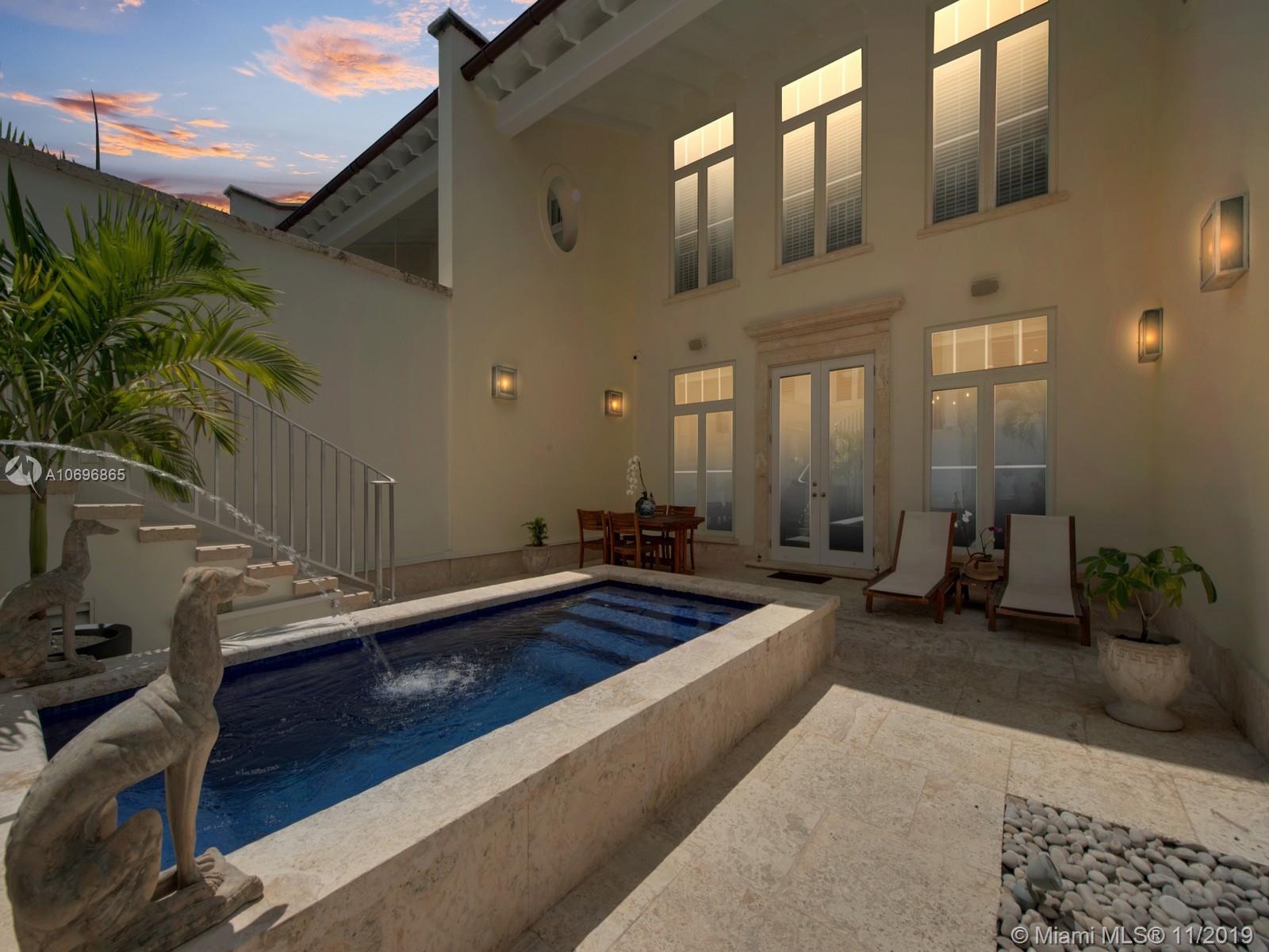 Ceremoniously crafted, Almeria Row No. 645 enjoys spacious living areas with volume ceilings, custom built-ins, skylight, Smart Lutron system, transom windows, 17-ft vaulted ceiling in master, sweeping staircase, walled-in courtyard with a European bath pool and fountain. Its distinct floor plan consists of 2 bedrooms, 2.5 baths in the main house plus separate 2 bedrooms and 2 baths beyond the courtyard and above the 2-car garage. The home is elevator-ready for those preferring this option.