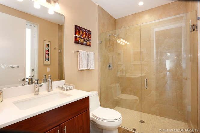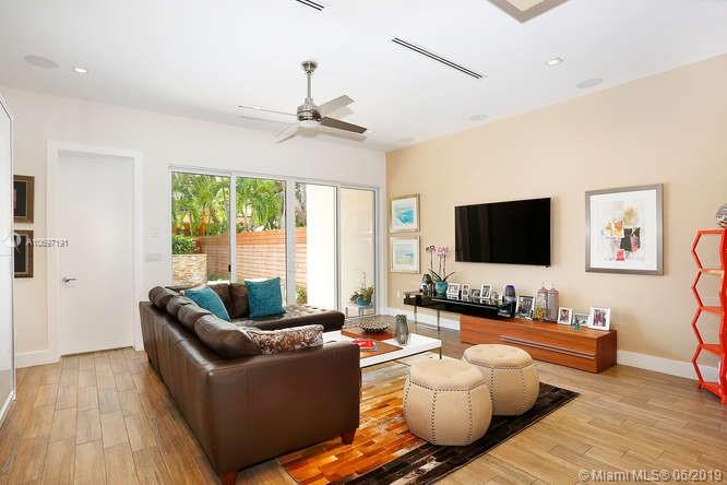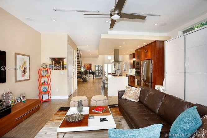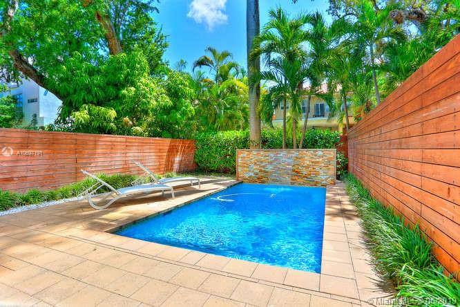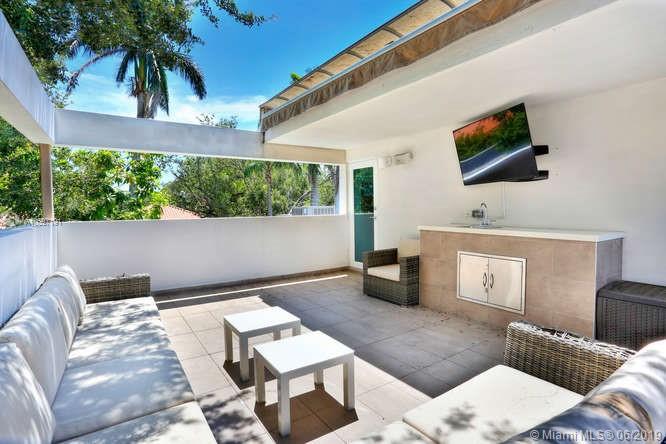 Luxury town home offered for sale by the first owners. Coconut Grove urban living at its best. Tile floors through out. Three spacious bedrooms with their private baths. Full bath on the first floor. Top of the line kitchen and bathroom cabinets. Upgraded kitchen with double oven, additional cabinet/pantry space, gas cook top and large island with eating area. High ceilings in the foyer and living room. Large family room overlooking the salt water pool & covered patio. Expansive master suite with large walk-in closet with built ins. Spa style master bath has a free standing tub, spacious shower with rain shower, double vanity and additional storage space. Two more nice size bedrooms with decent closet space. Private roof top terrace with electric retractable awning, wet bar and outdoor TV