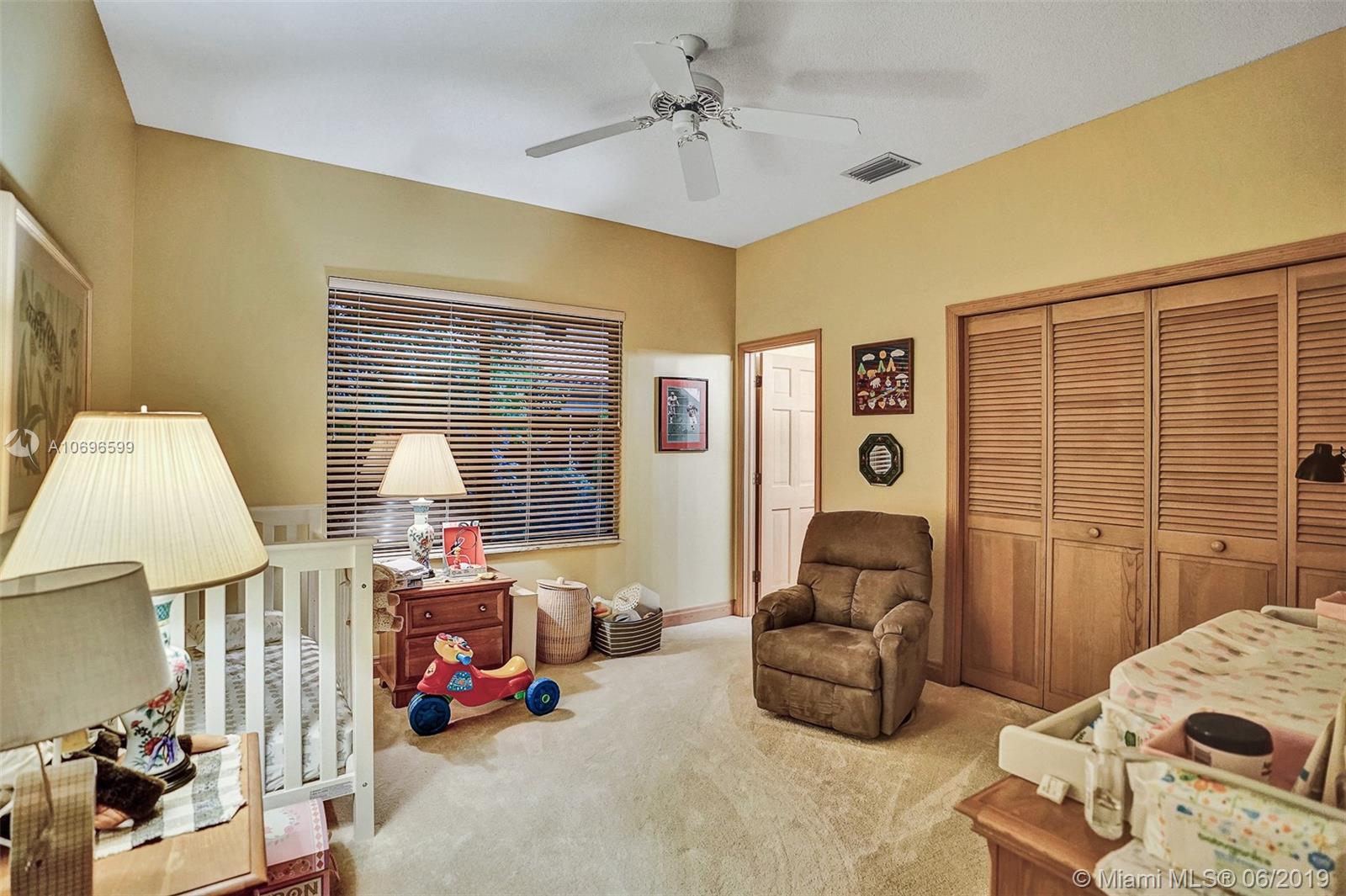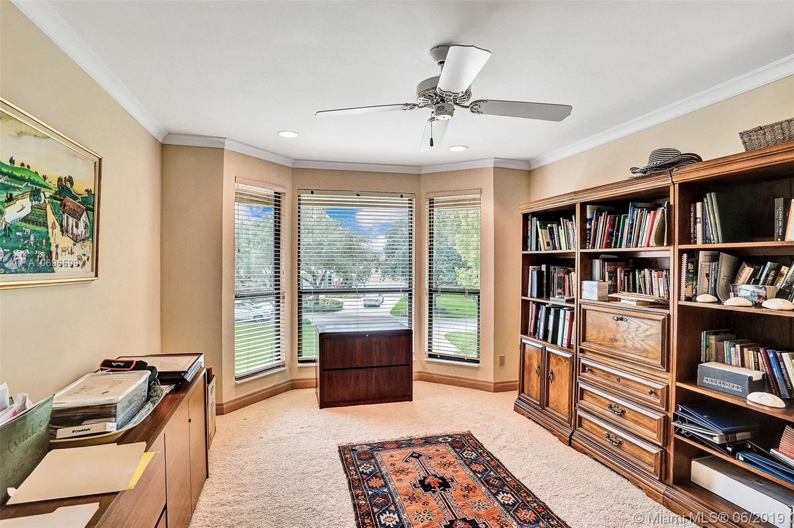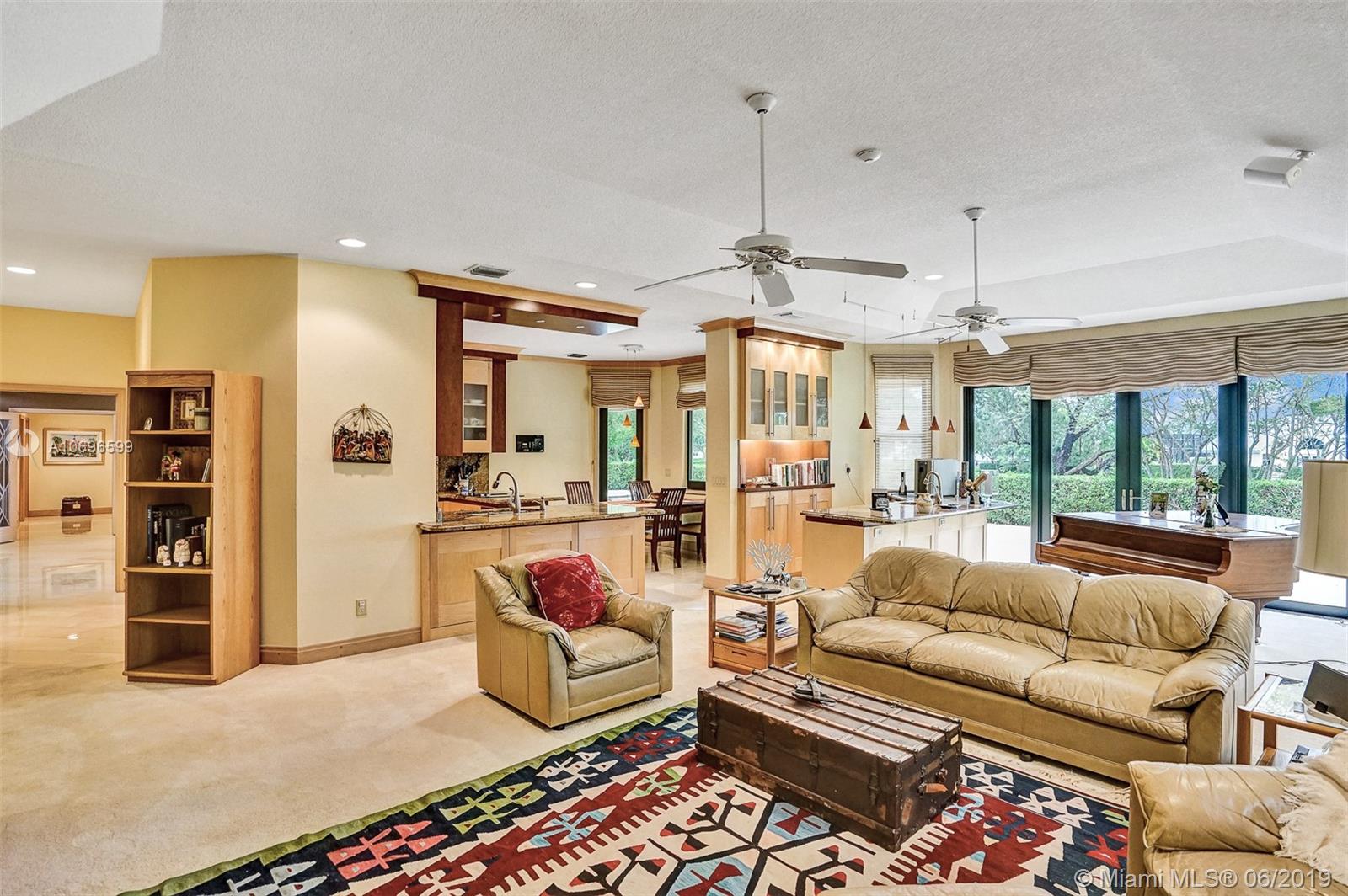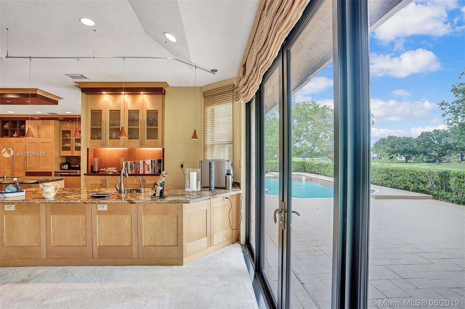 Walk through the front door to a spacious, bright room excellent for entertaining family & friends while overlooking the pool & golf course through beautiful french doors. This is a turn-key home in the private gated community of Eagle Trace. Large, open split plan with Wet Bar, Custom kitchen with granite countertops/backsplash, top of the line appliances, lots of storage, coral fireplace, giant master suite with custom Jacuzzi, bidet, adjacent office/library and separate sitting area. Dramatic ceilings with serene pool area overlooking the 12th hole, & 3- car garage with auto openers, hurricane impact doors/windows and accordian shutters throughout. Great school system, and one of Floridas safest cities. Don't pass this one up! Owner spared no expense!
