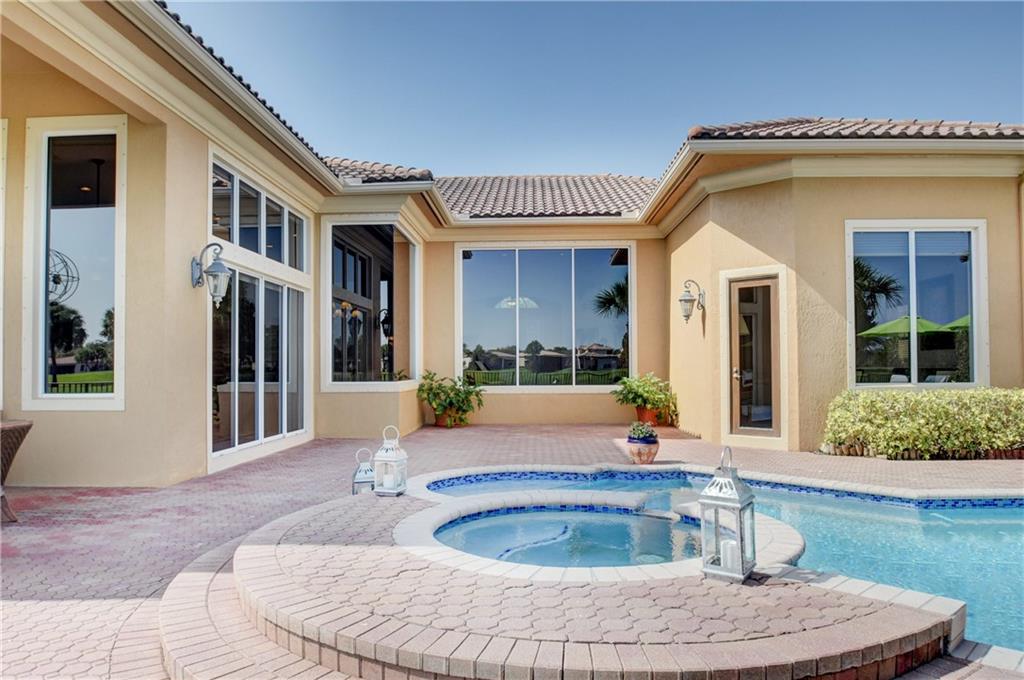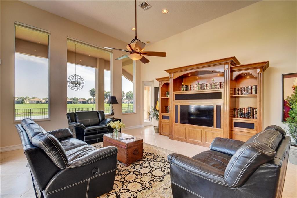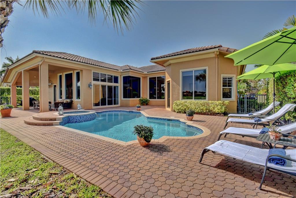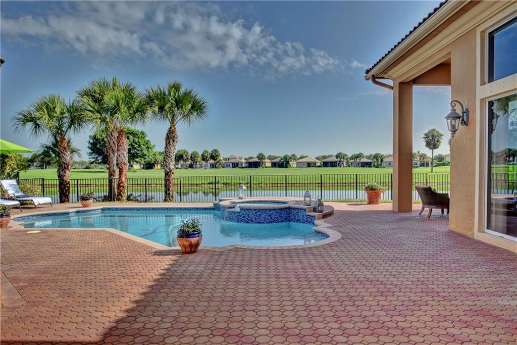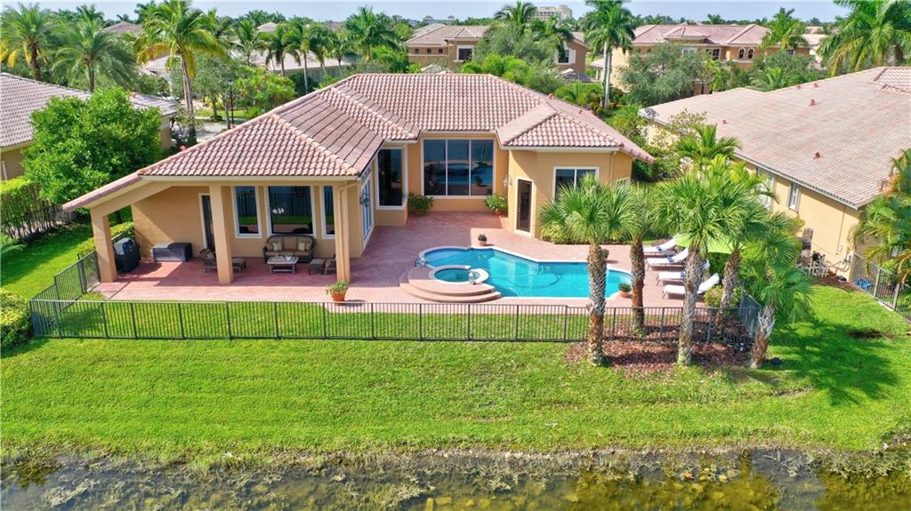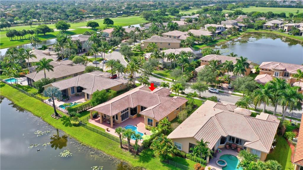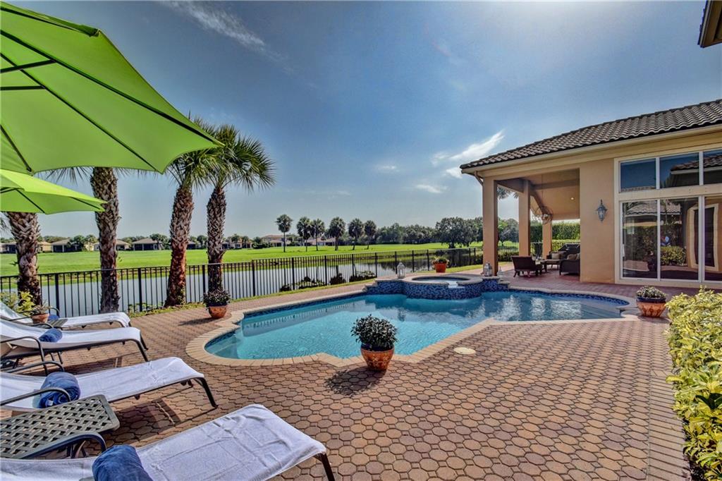 Amazing Waterfront Golf Views In This Popular Tri-Split 5 Bedroom, 4 Bathroom Pool Home w/3-Car Garage! Newer A/C Units, New Laminate Floors In All Beds, High Ceilings w/Crown Molding. Entertain In Style In The Spacious Covered Patio Area w/Resurfaced 2018 Glass Tile Salt Water Pool & Spa Overlooking Golf Course & Lake. Custom Kitchen w/Granite Counters & Island & Newer Stainless Steel Appliances. 5th Bed Converted To Full 7-Seat Movie Theater w/Authentic Built-In Seating, Commercial Grade Theater Carpeting, & Illuminated Candy Counter - Can Easily Be Converted Back to 5th Bedroom or Office. Master Suite w/Sitting Area & Crown Molding, Wainscoting, Built-In Closets, Separate Shower & Jetted Tub! Enjoy Resort-Style Amenities, 24-Guard Gated Community, & A-Rated Schools, Must See!
