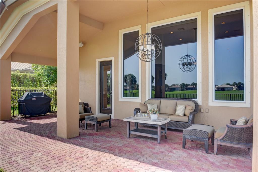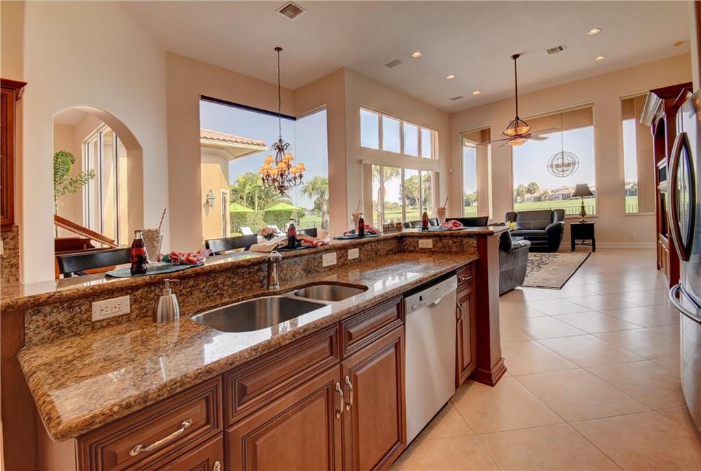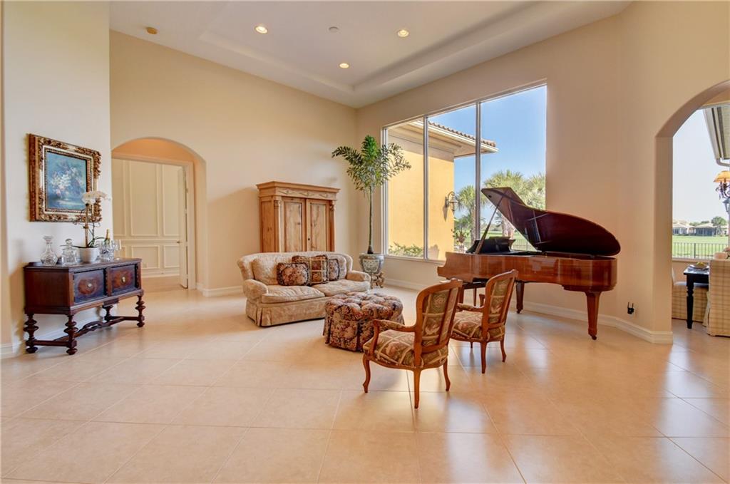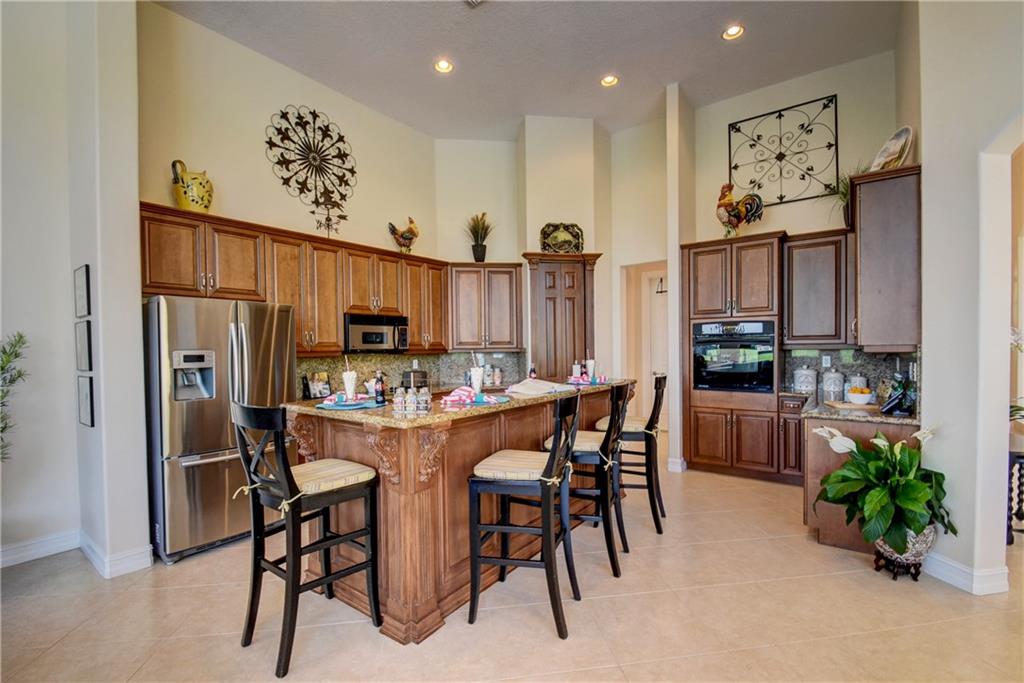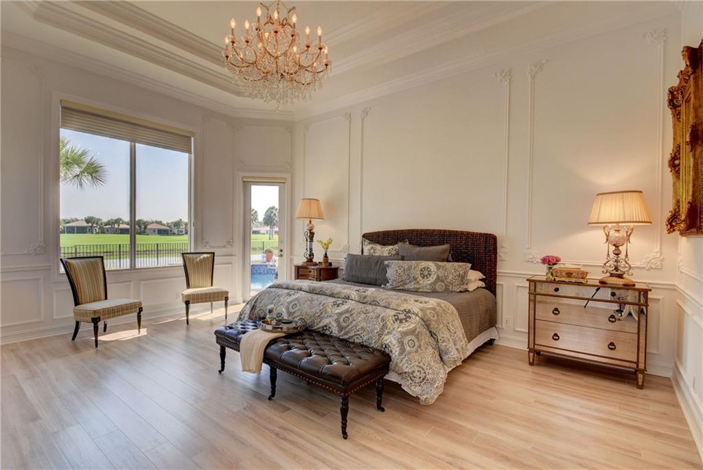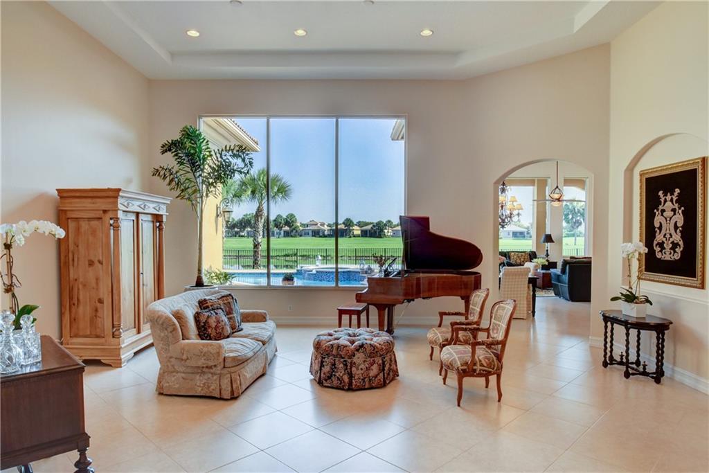 Amazing Waterfront Golf Views In This Popular Tri-Split 5 Bedroom, 4 Bathroom Pool Home w/3-Car Garage! Newer A/C Units, New Laminate Floors In All Beds, High Ceilings w/Crown Molding. Entertain In Style In The Spacious Covered Patio Area w/Resurfaced 2018 Glass Tile Salt Water Pool & Spa Overlooking Golf Course & Lake. Custom Kitchen w/Granite Counters & Island & Newer Stainless Steel Appliances. 5th Bed Converted To Full 7-Seat Movie Theater w/Authentic Built-In Seating, Commercial Grade Theater Carpeting, & Illuminated Candy Counter - Can Easily Be Converted Back to 5th Bedroom or Office. Master Suite w/Sitting Area & Crown Molding, Wainscoting, Built-In Closets, Separate Shower & Jetted Tub! Enjoy Resort-Style Amenities, 24-Guard Gated Community, & A-Rated Schools, Must See!